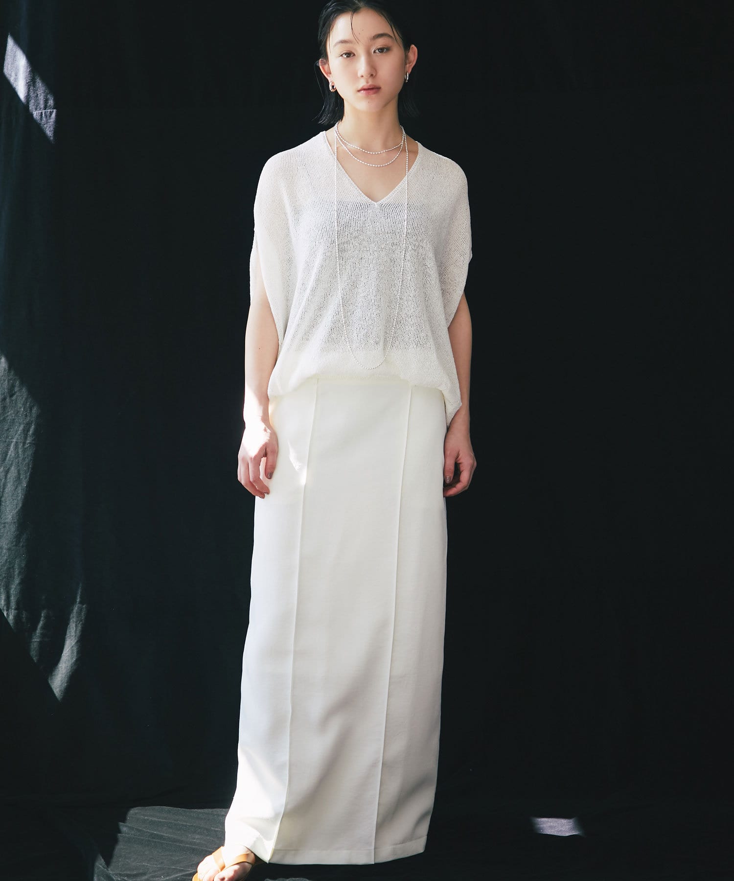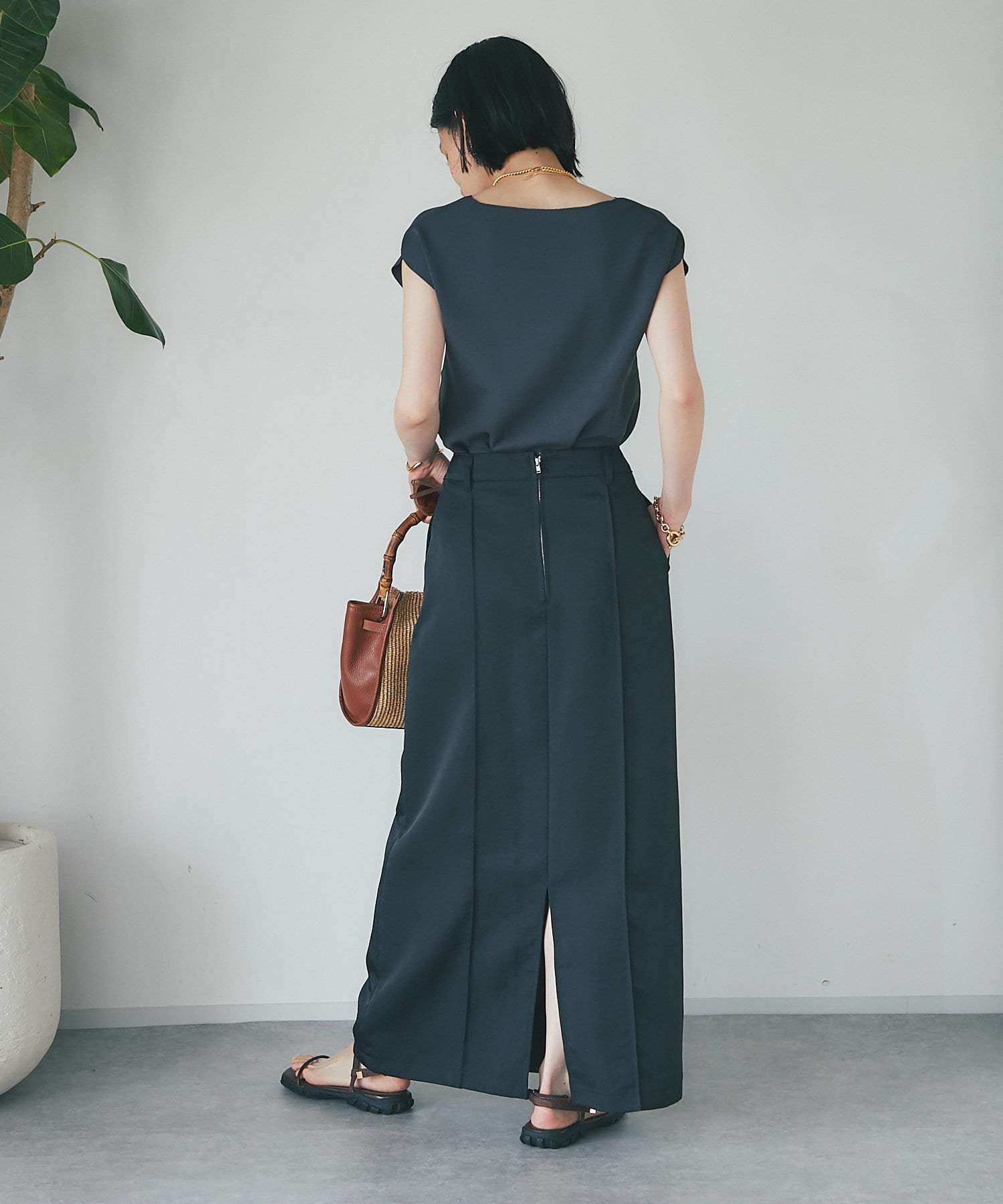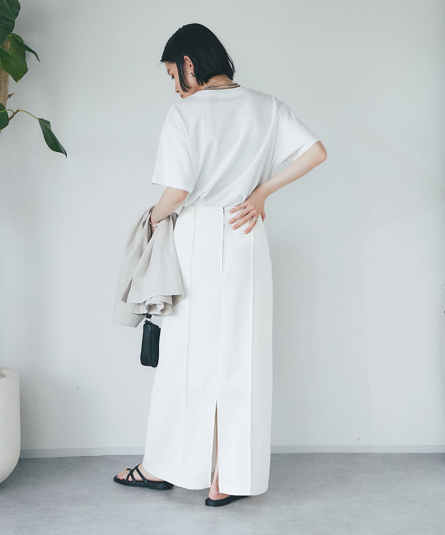 シンプルでミニマルなデザインのIラインマキシスカート。