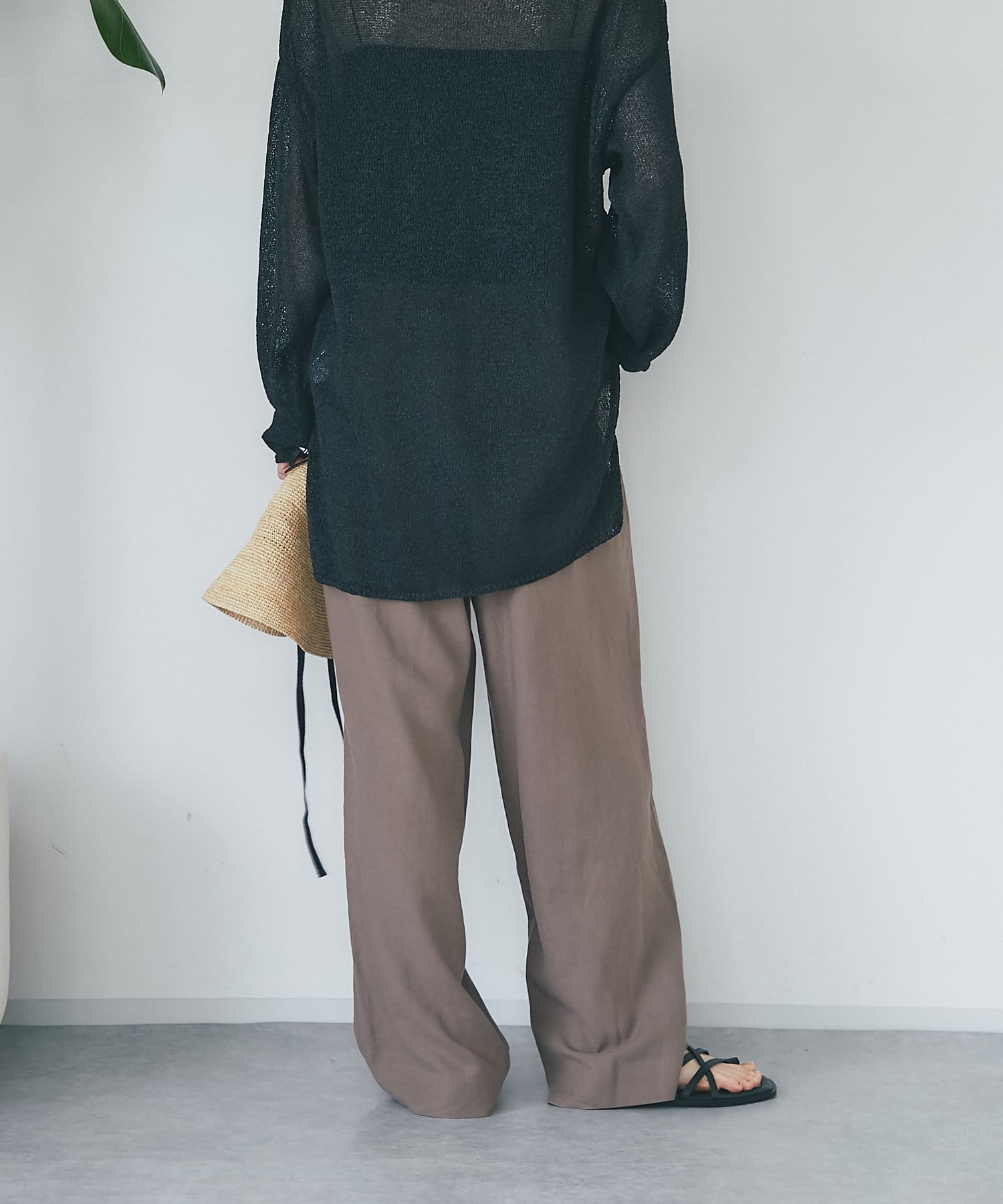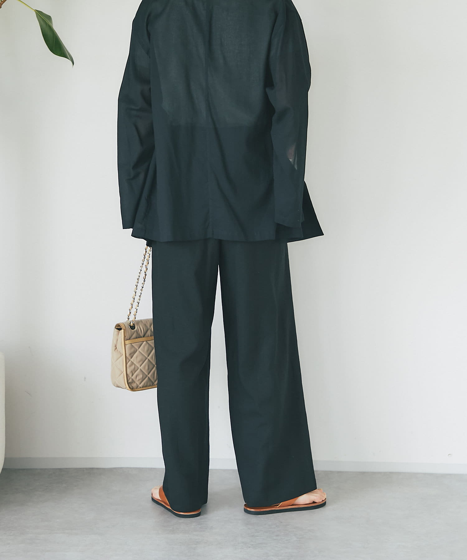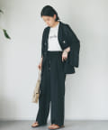 落ち感のある生地でボリューム感が出すぎないのでロング丈のニットやシャツなども好相性です。