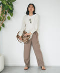綺麗めのブラウスで合わせてもきちんとした印象で着用できるので、オンオフ兼用でお使いいただけます。