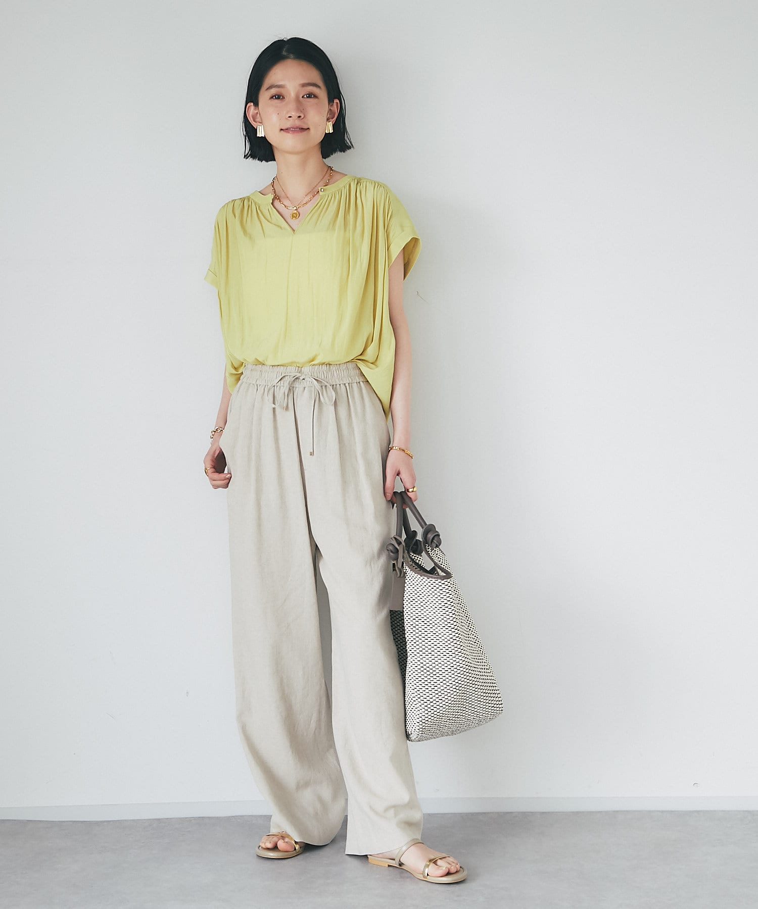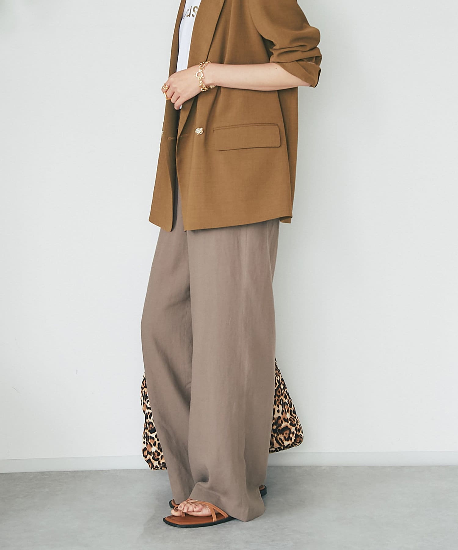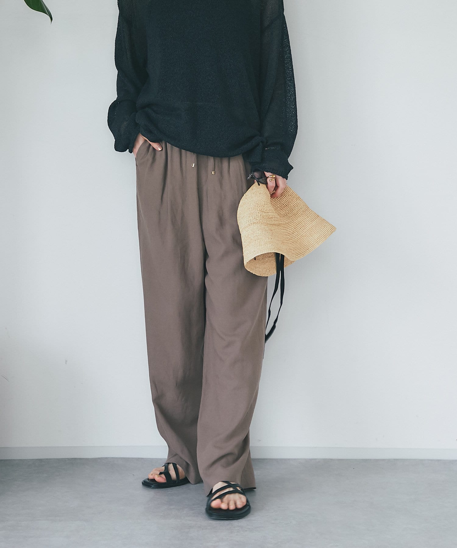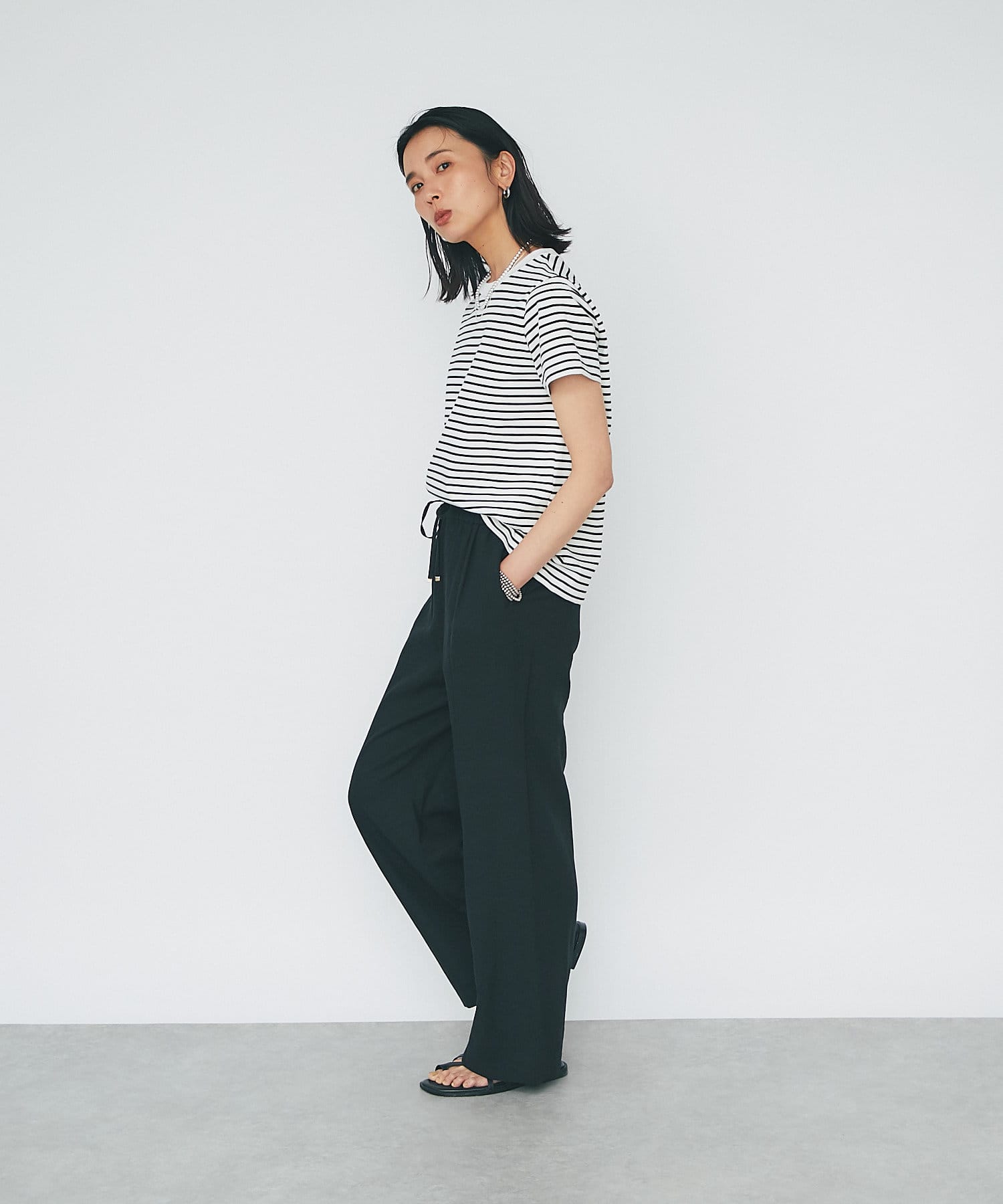 ワイド目のシルエットなのですっきりしたトップスや短め丈のトップスと合わせると今年らしい印象に。