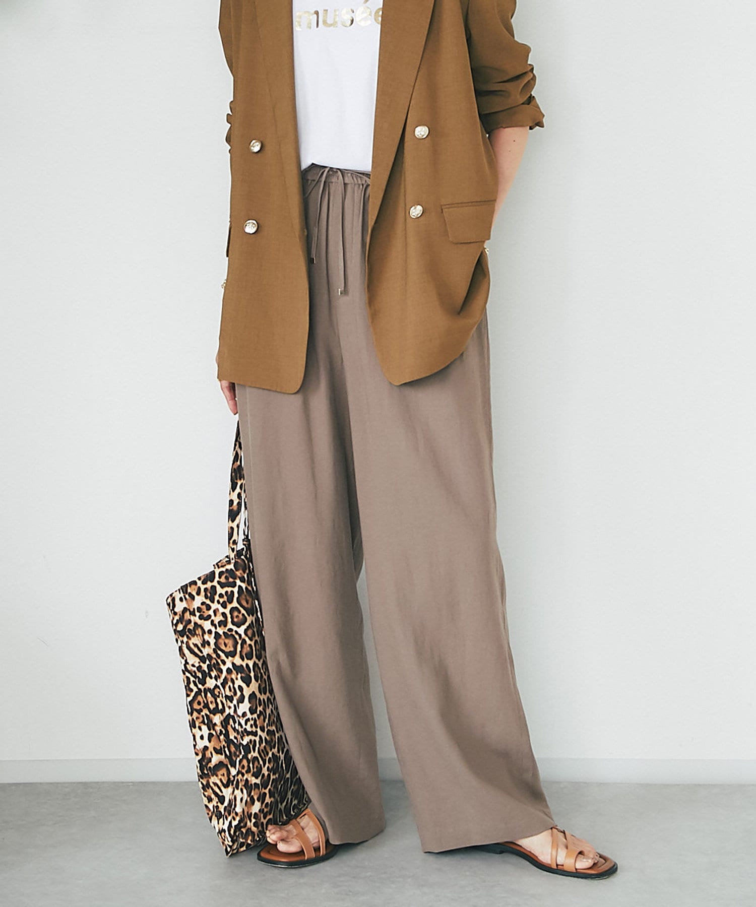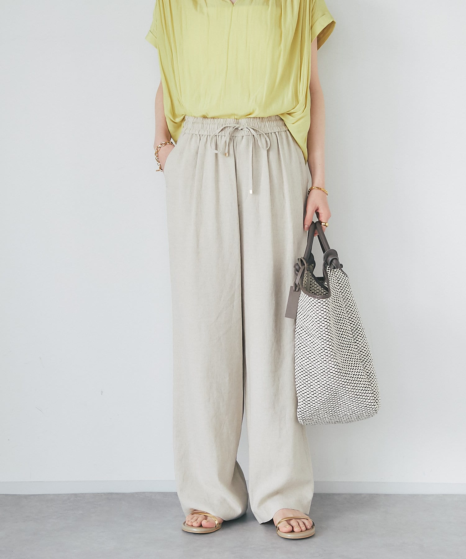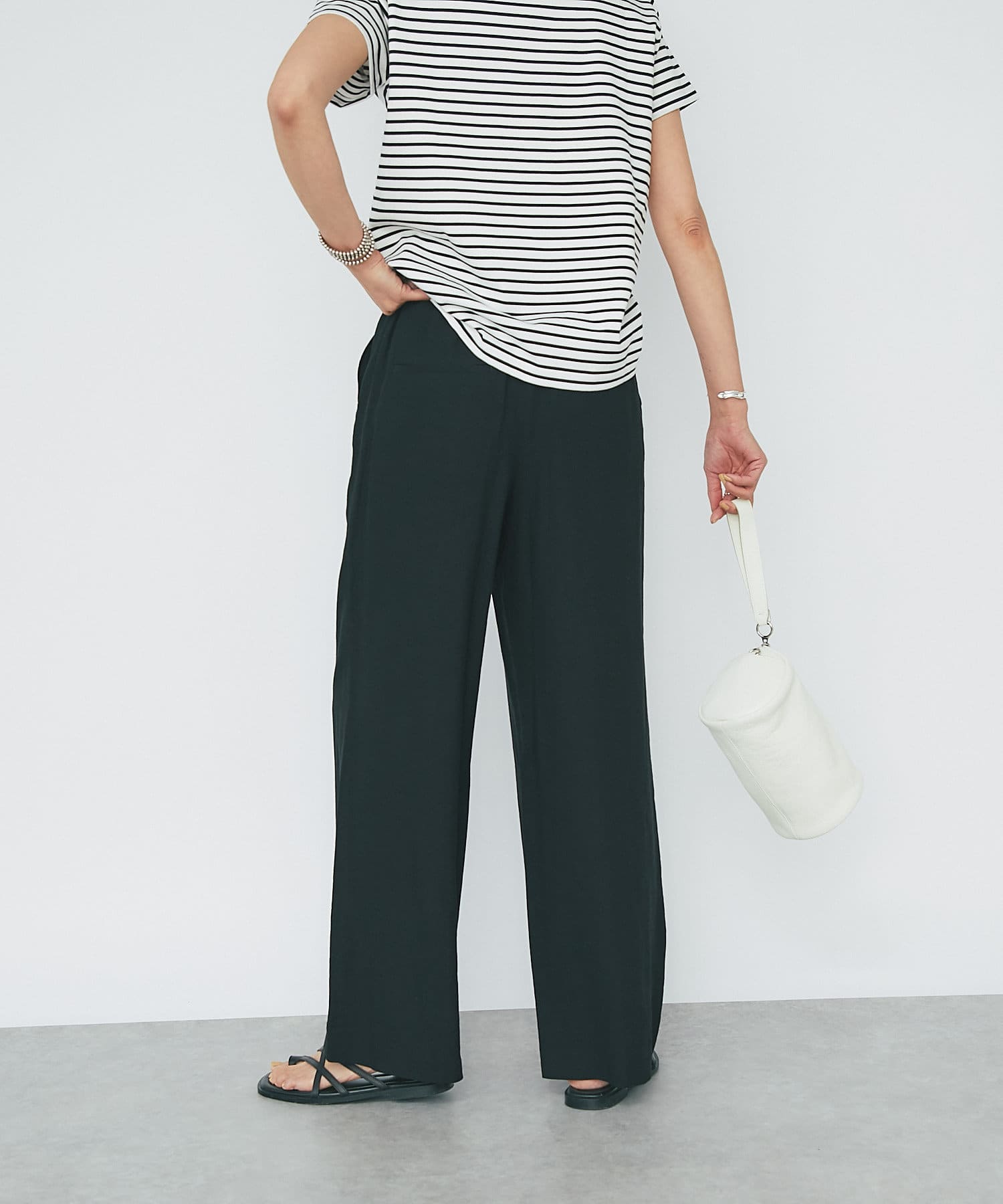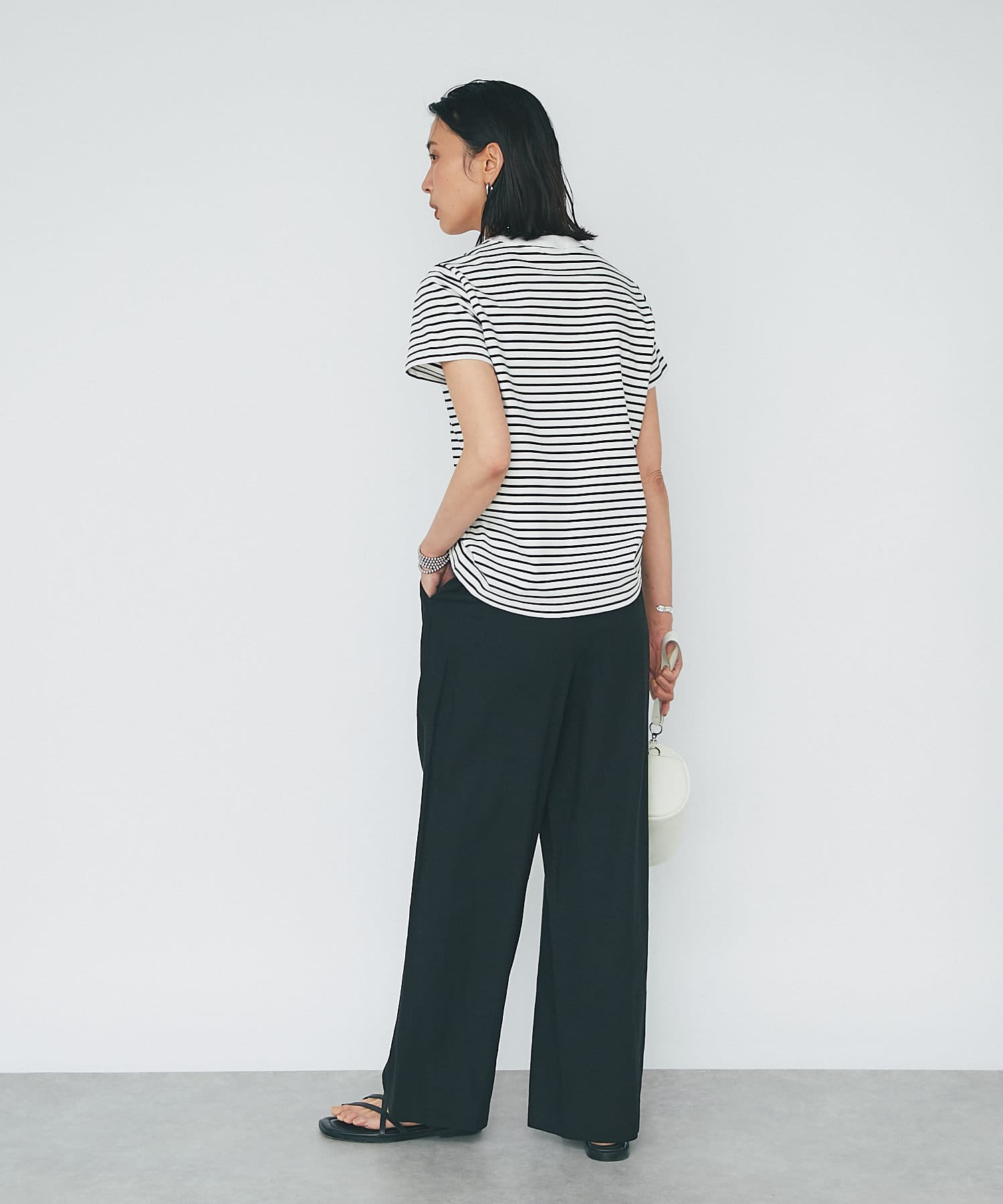 ワイド目のシルエットなのですっきりしたトップスや短め丈のトップスと合わせると今年らしい印象に。