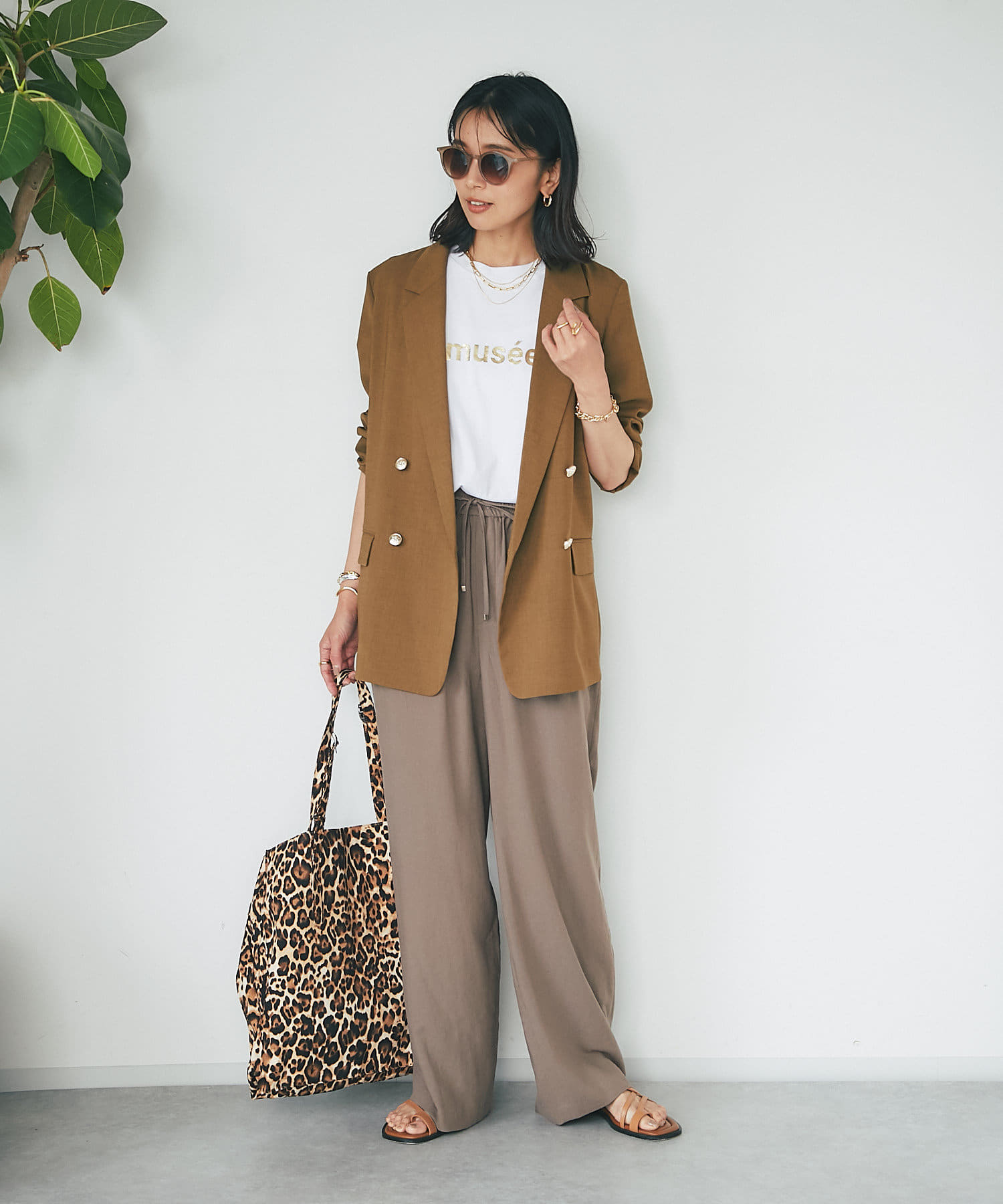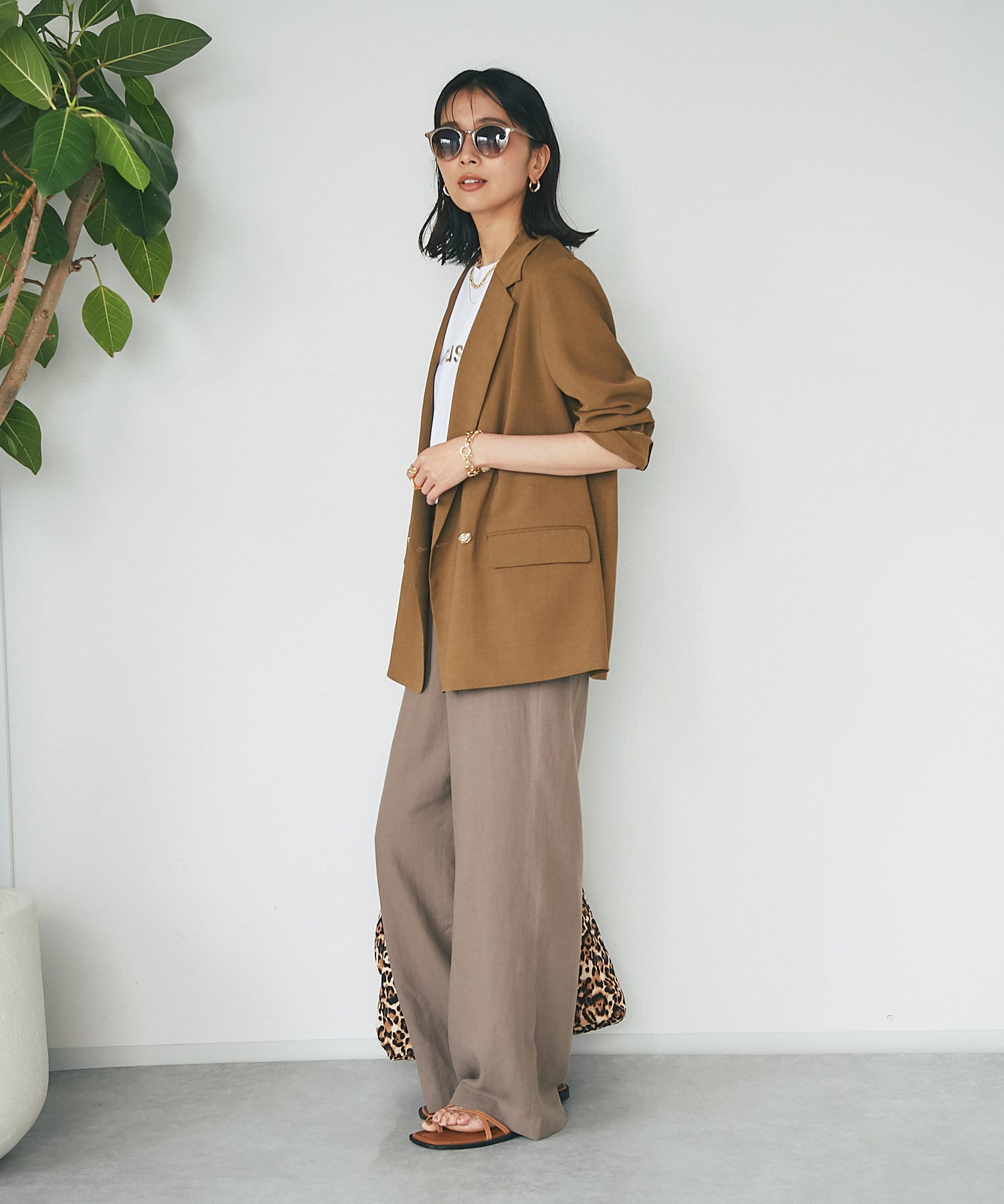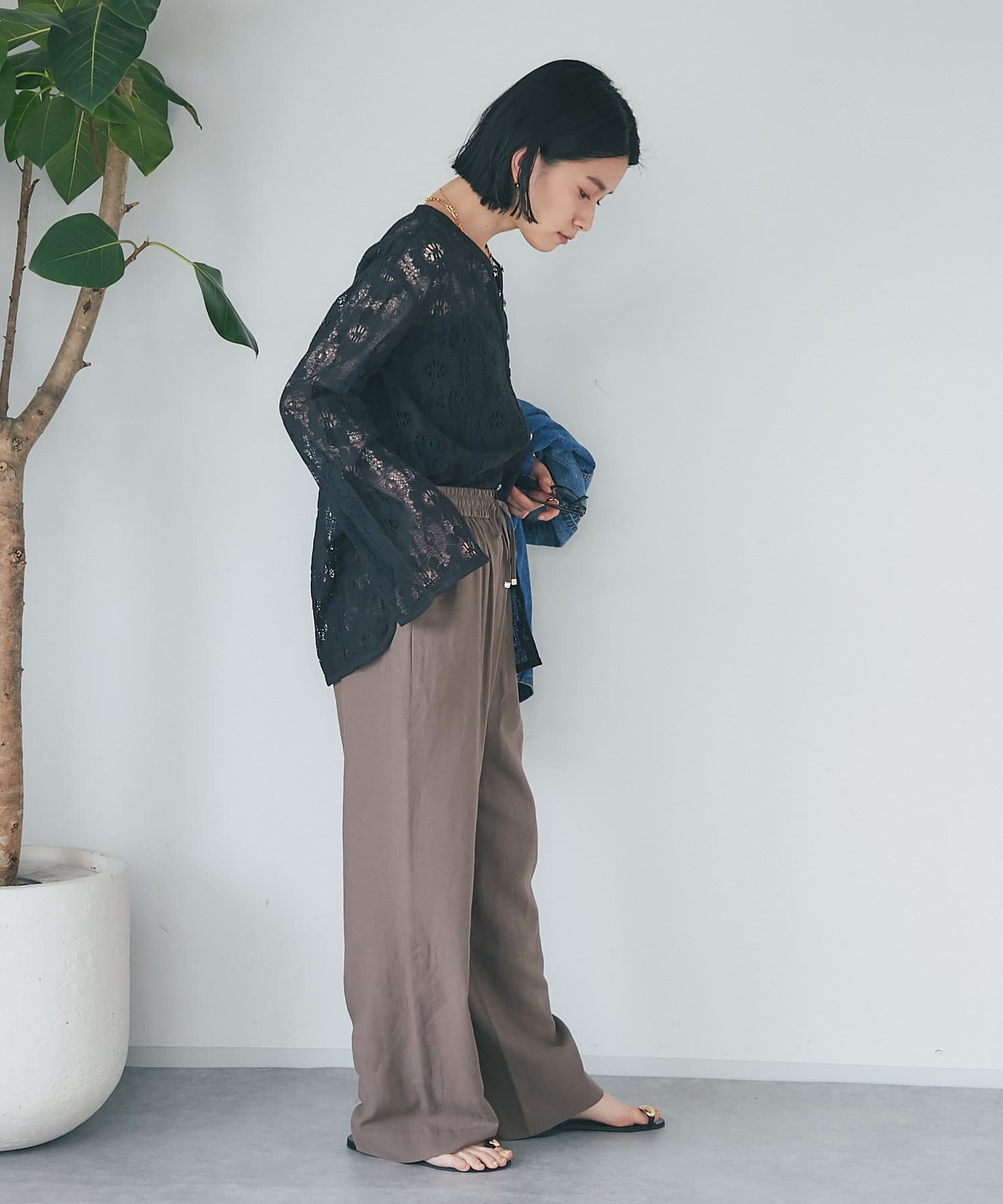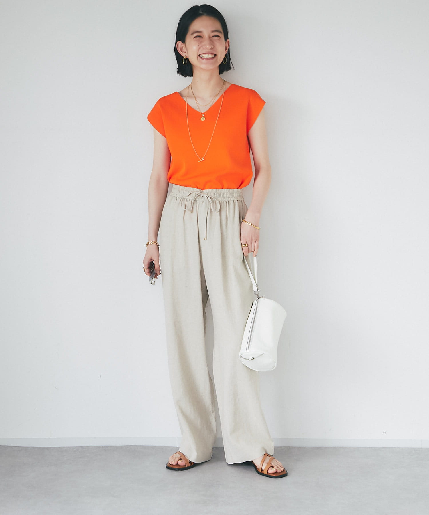 ワイド目のシルエットなのですっきりしたトップスや短め丈のトップスと合わせると今年らしい印象に。