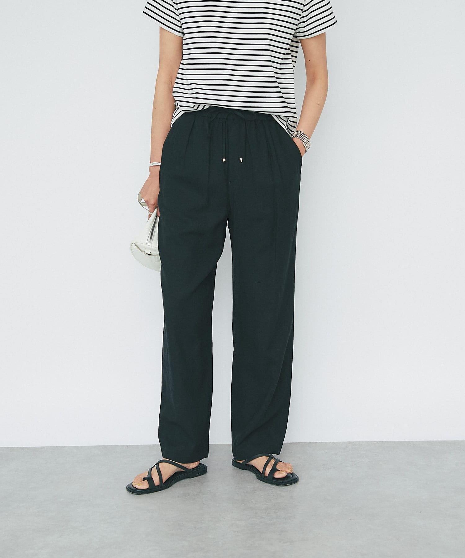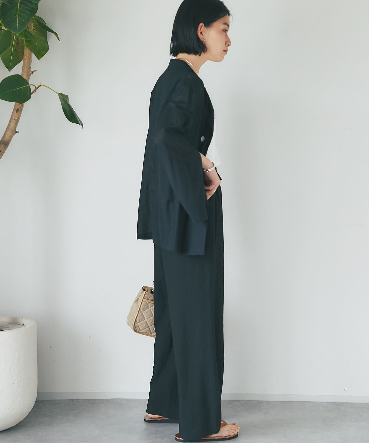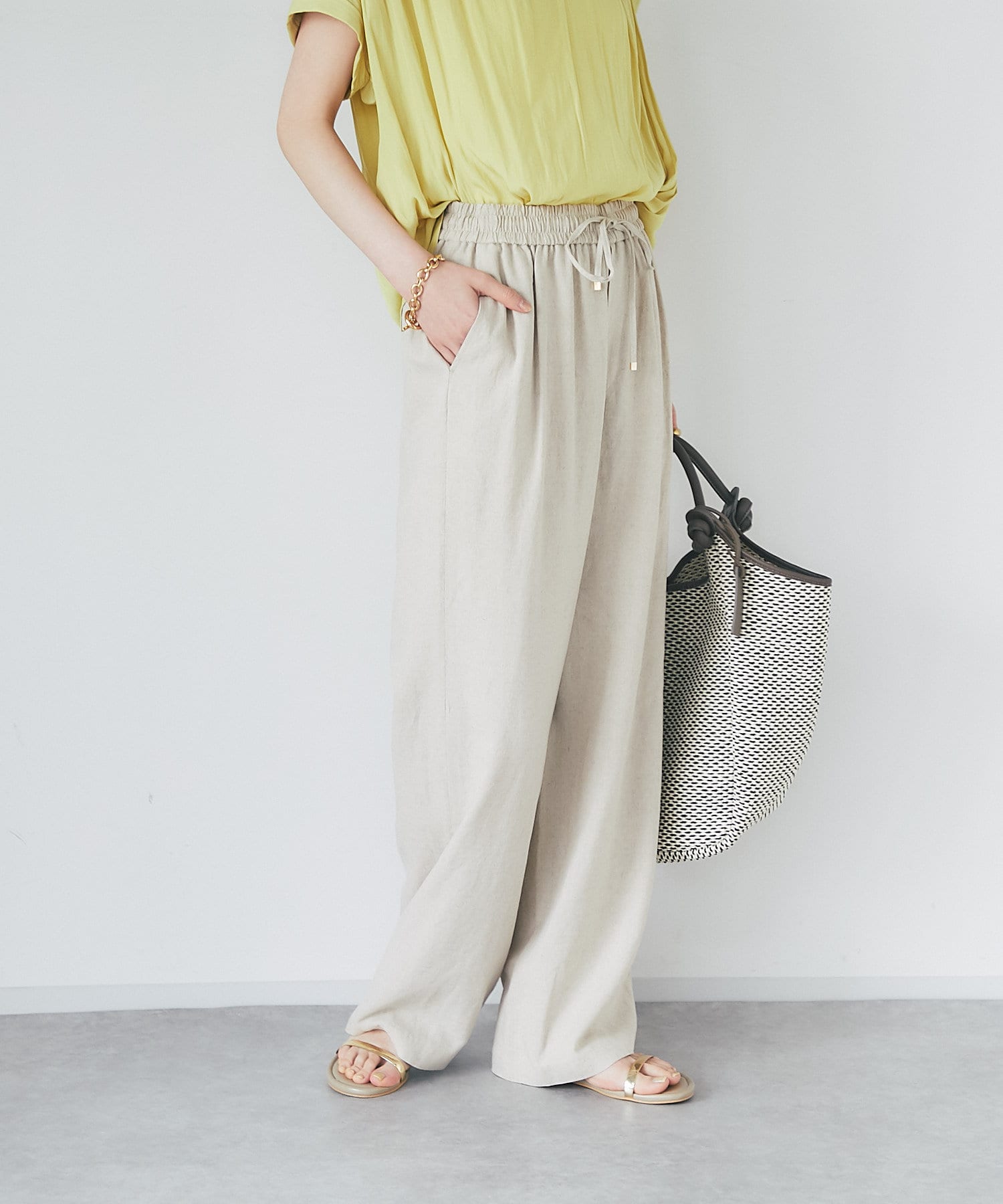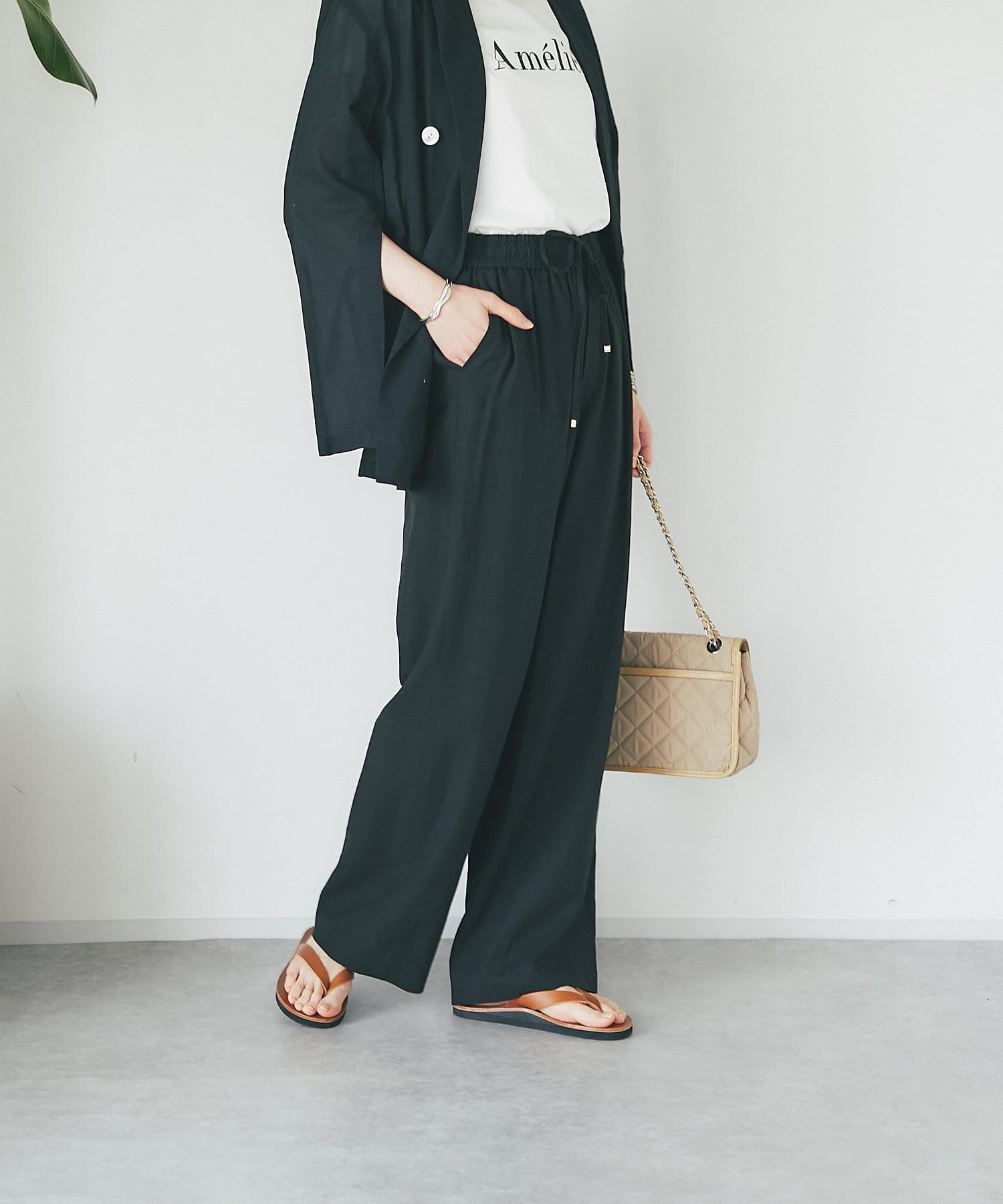 ワイド目のシルエットなのですっきりしたトップスや短め丈のトップスと合わせると今年らしい印象に。