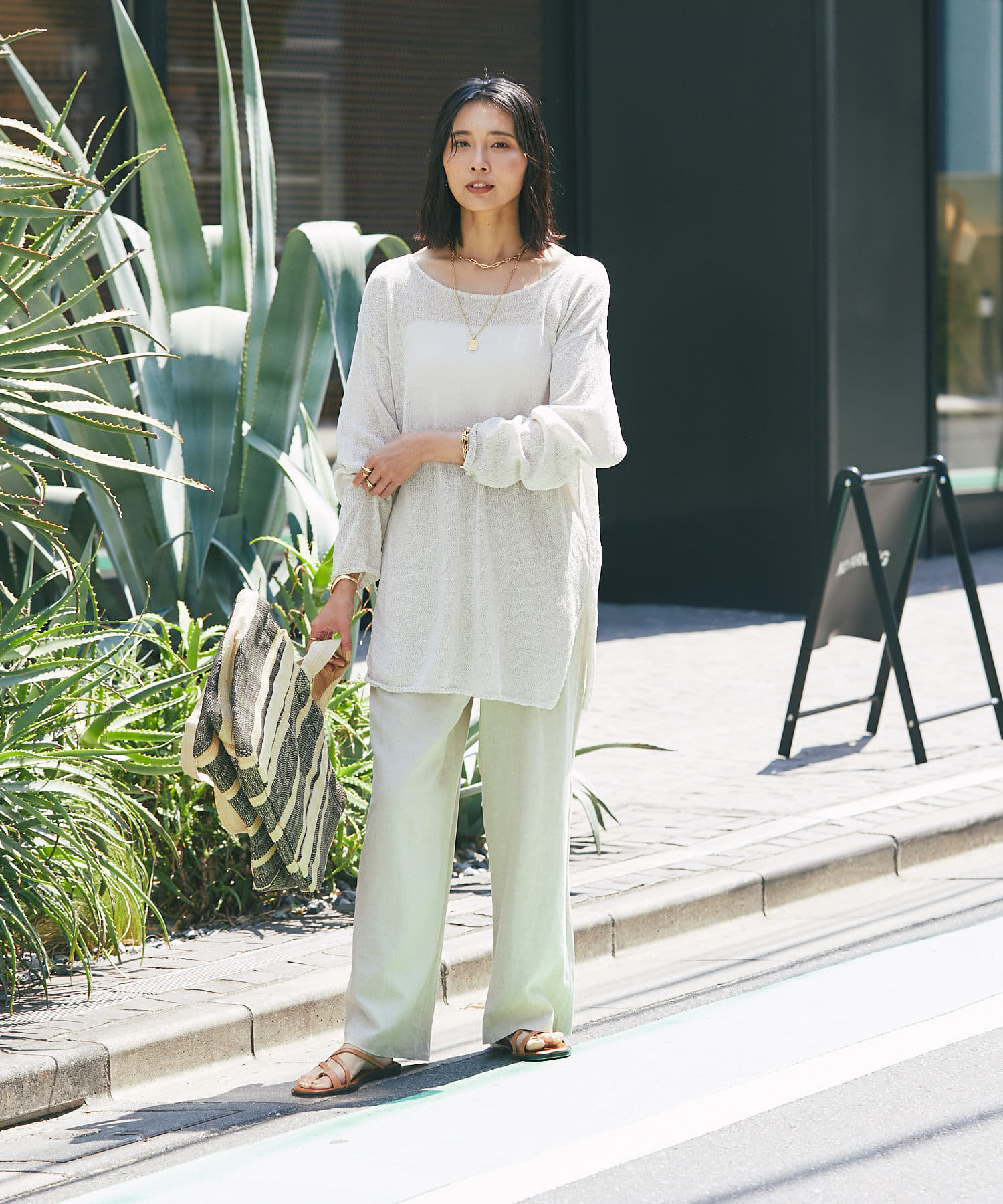 ゆったりとしたリラックス感のあるシルエットがポイントです。