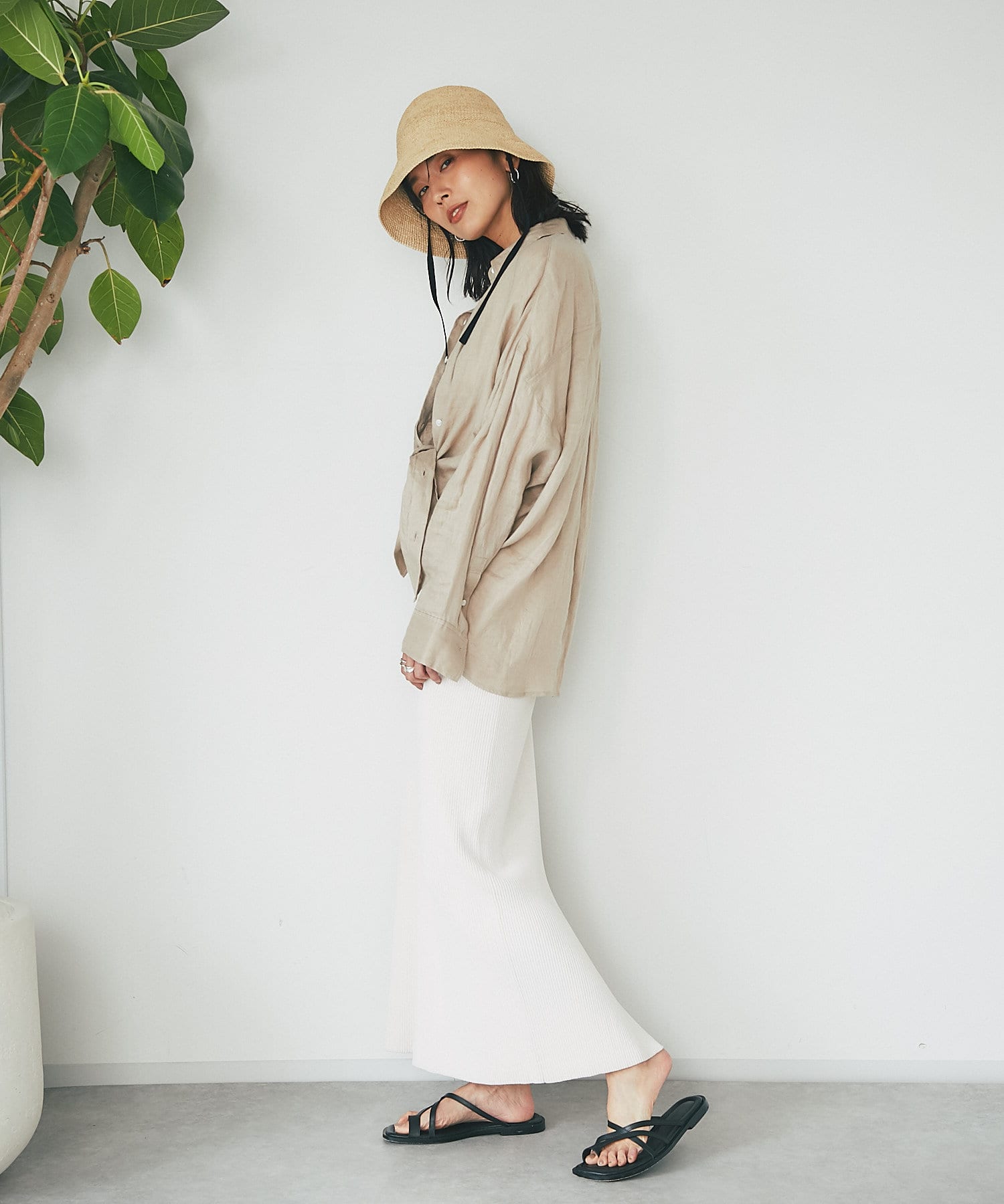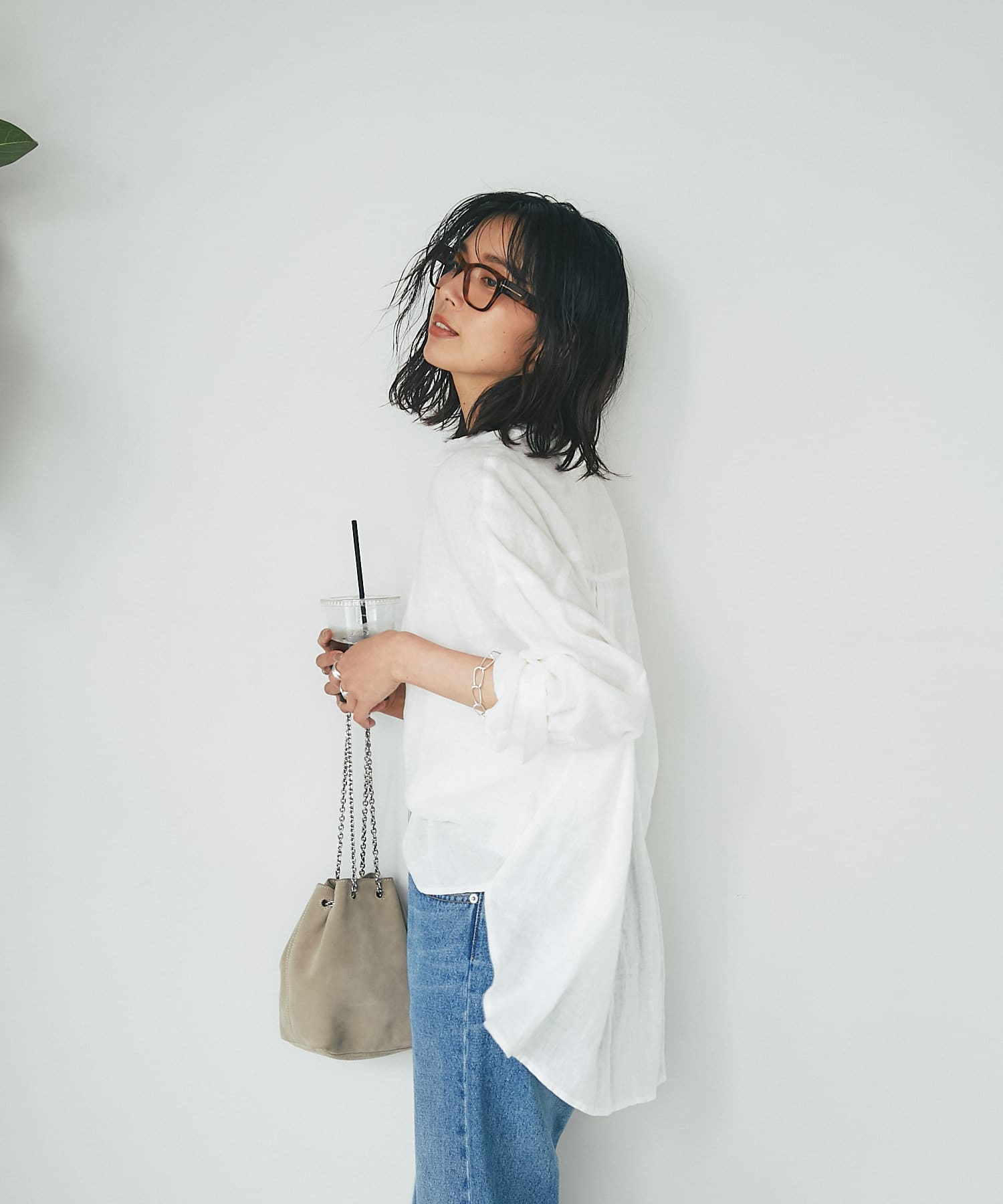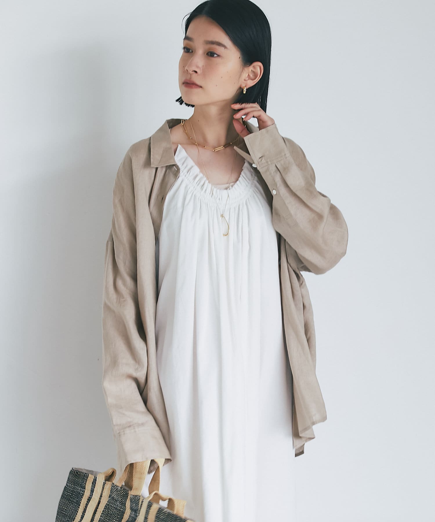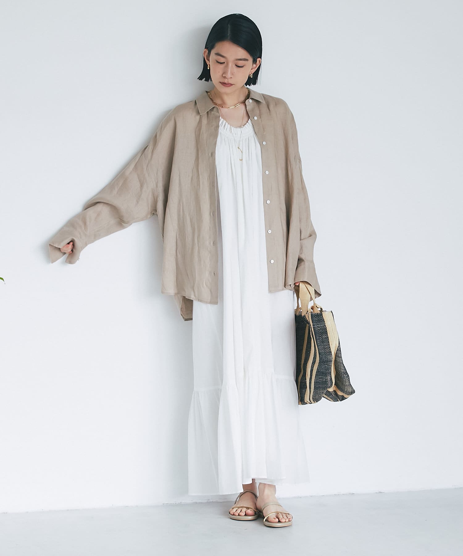 トップスとしてさらりとタイトスカートやデニムと合わせるだけでなく、Tシャツやキャミソール・ワンピースの上からバサッと羽織るのもおすすめです。