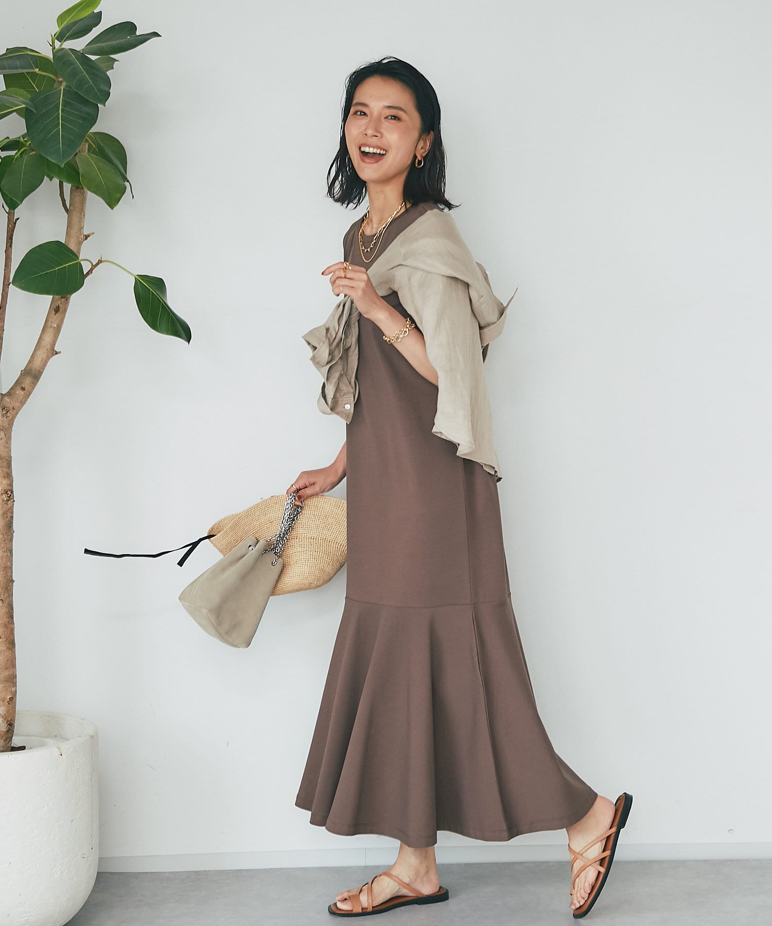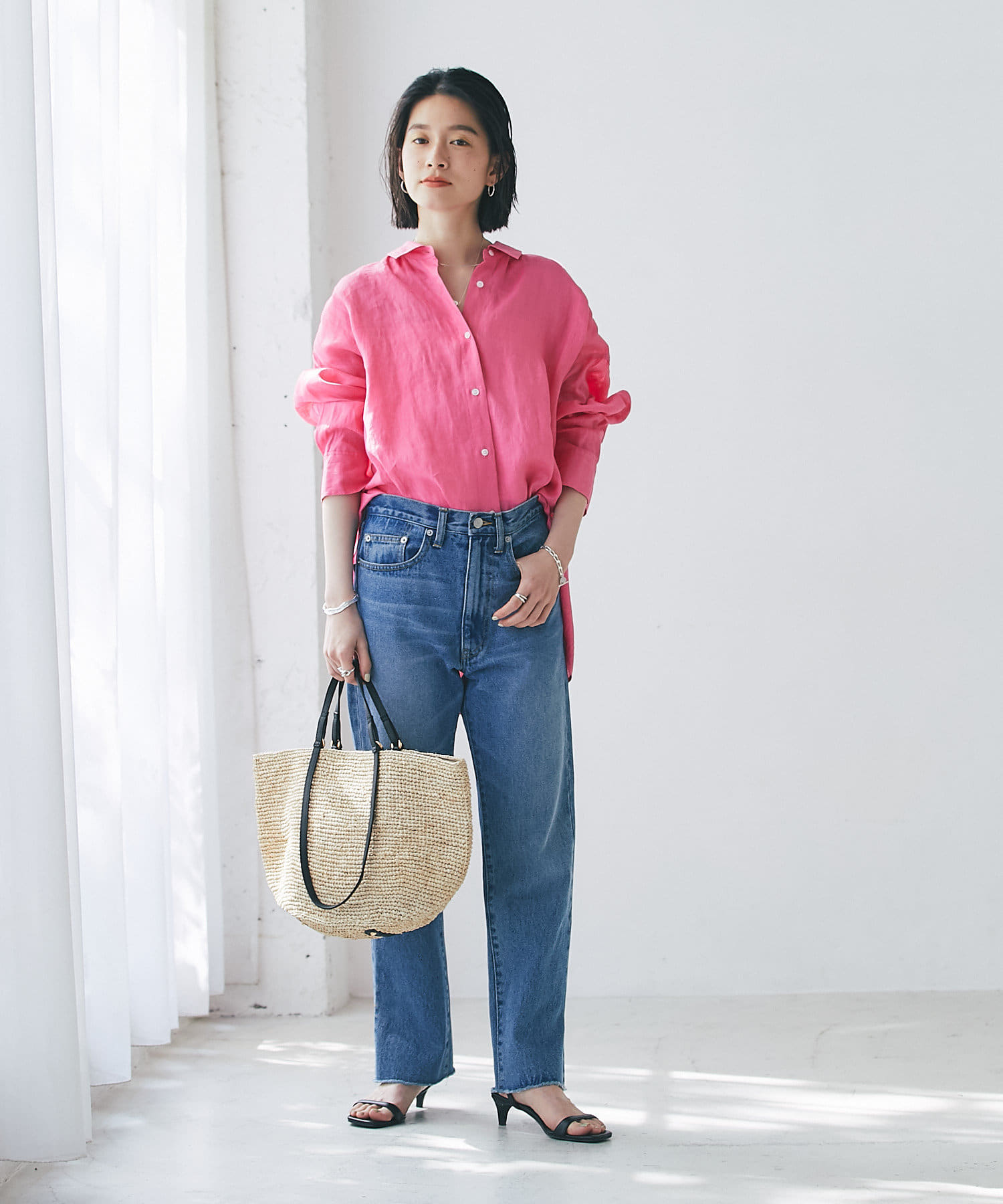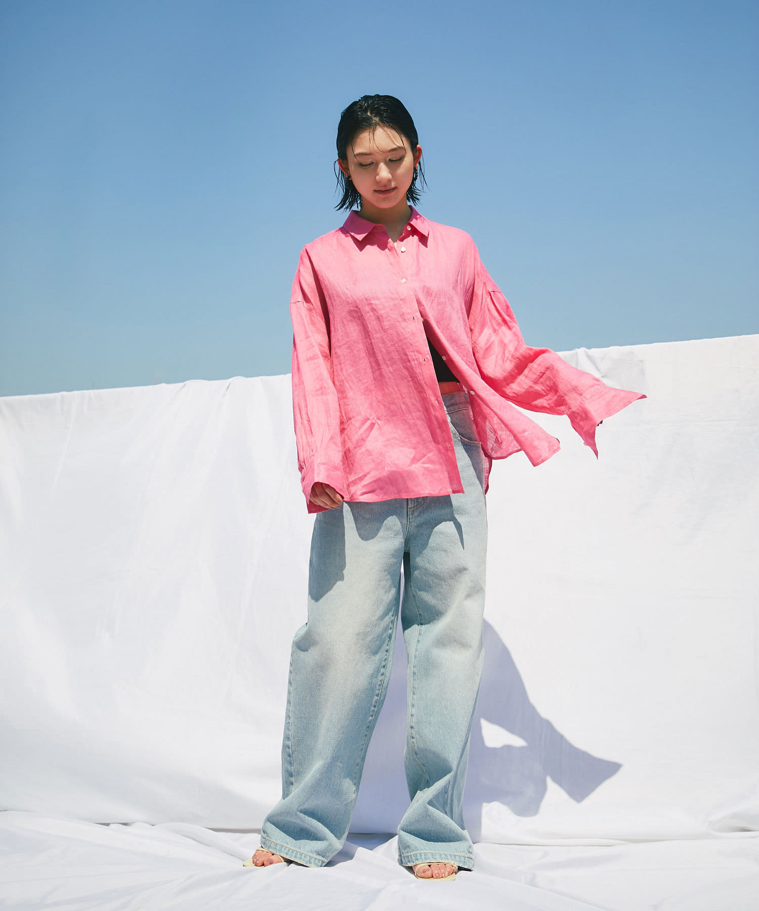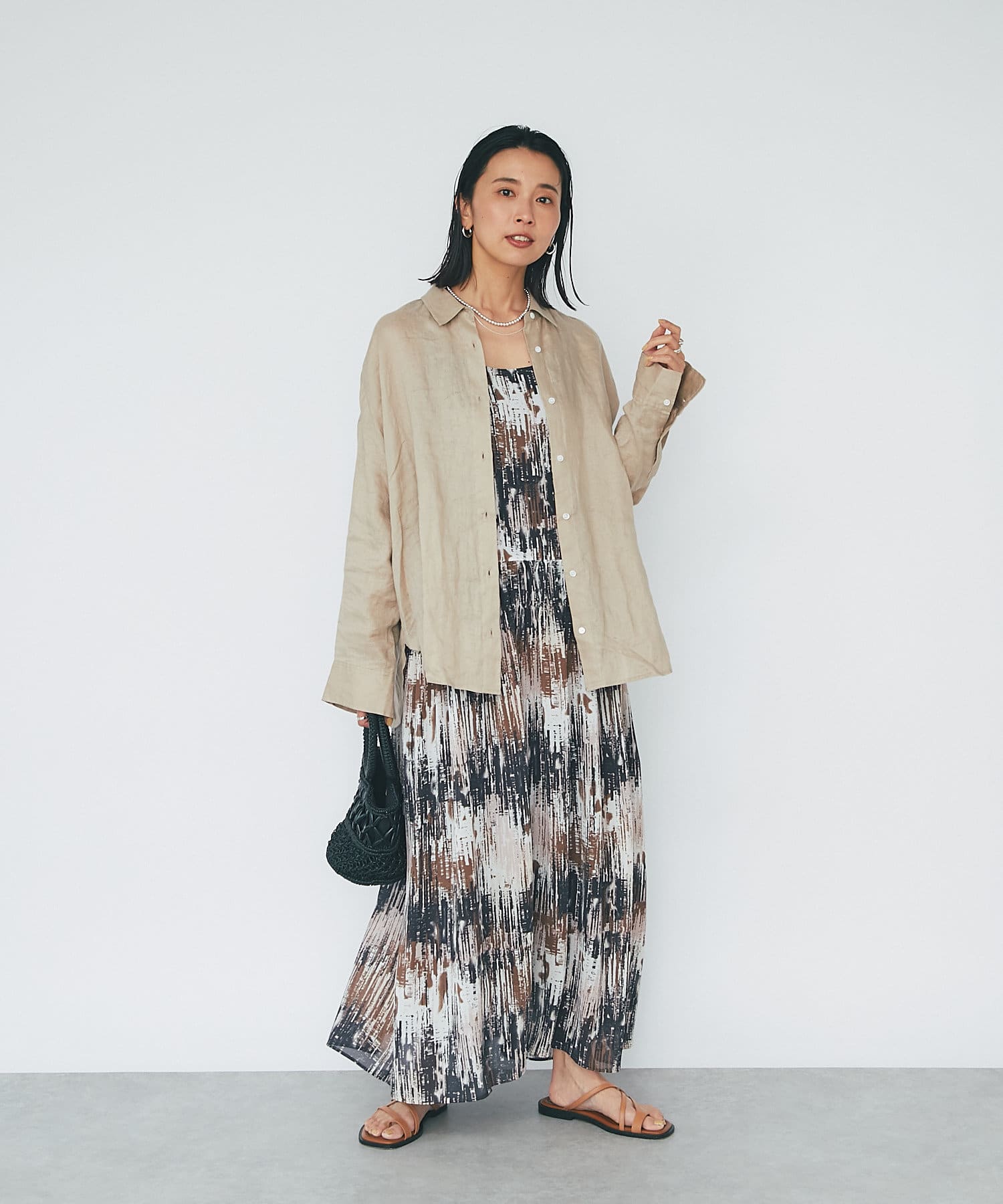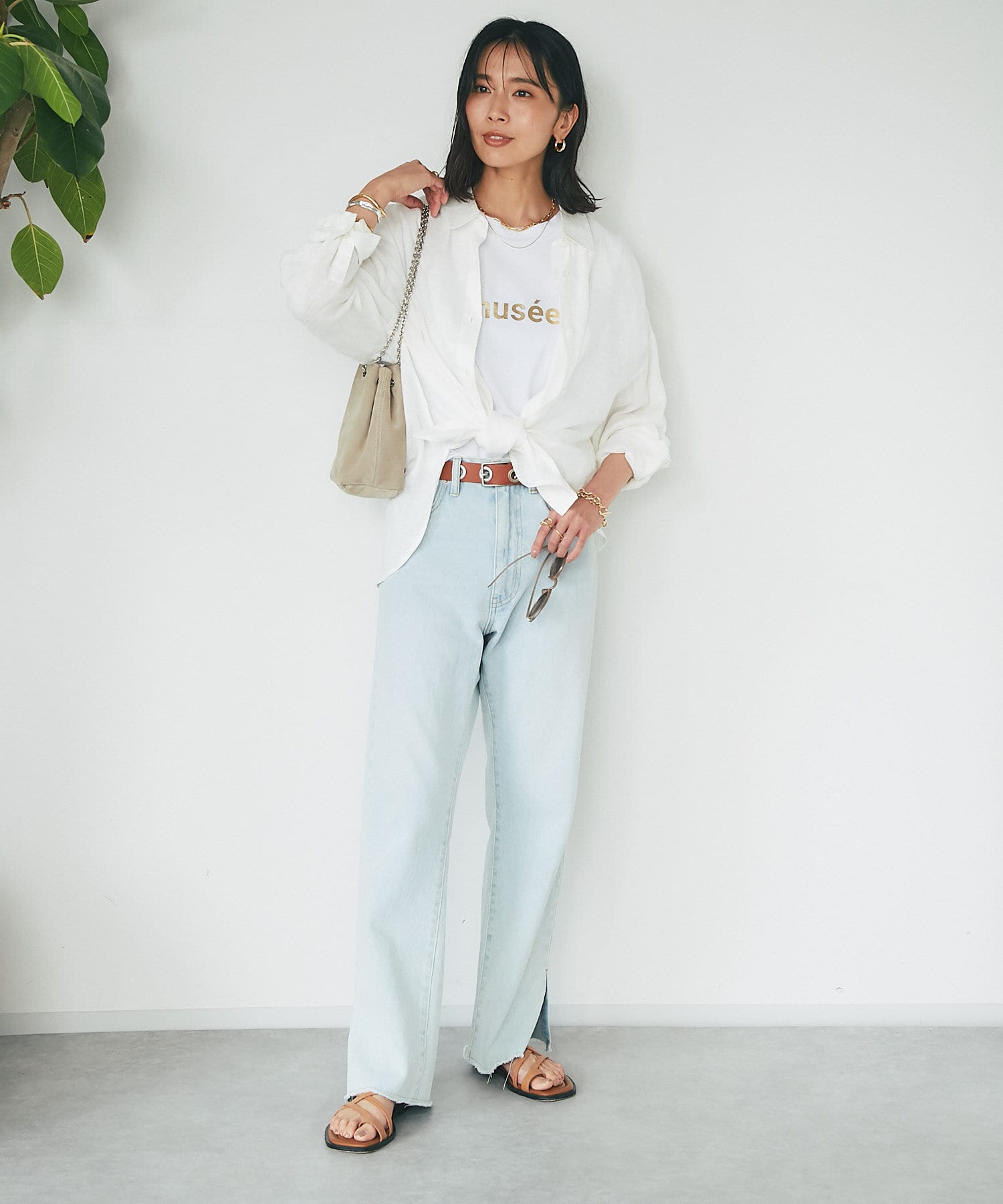 トップスとしてさらりとタイトスカートやデニムと合わせるだけでなく、Tシャツやキャミソール・ワンピースの上からバサッと羽織るのもおすすめです。