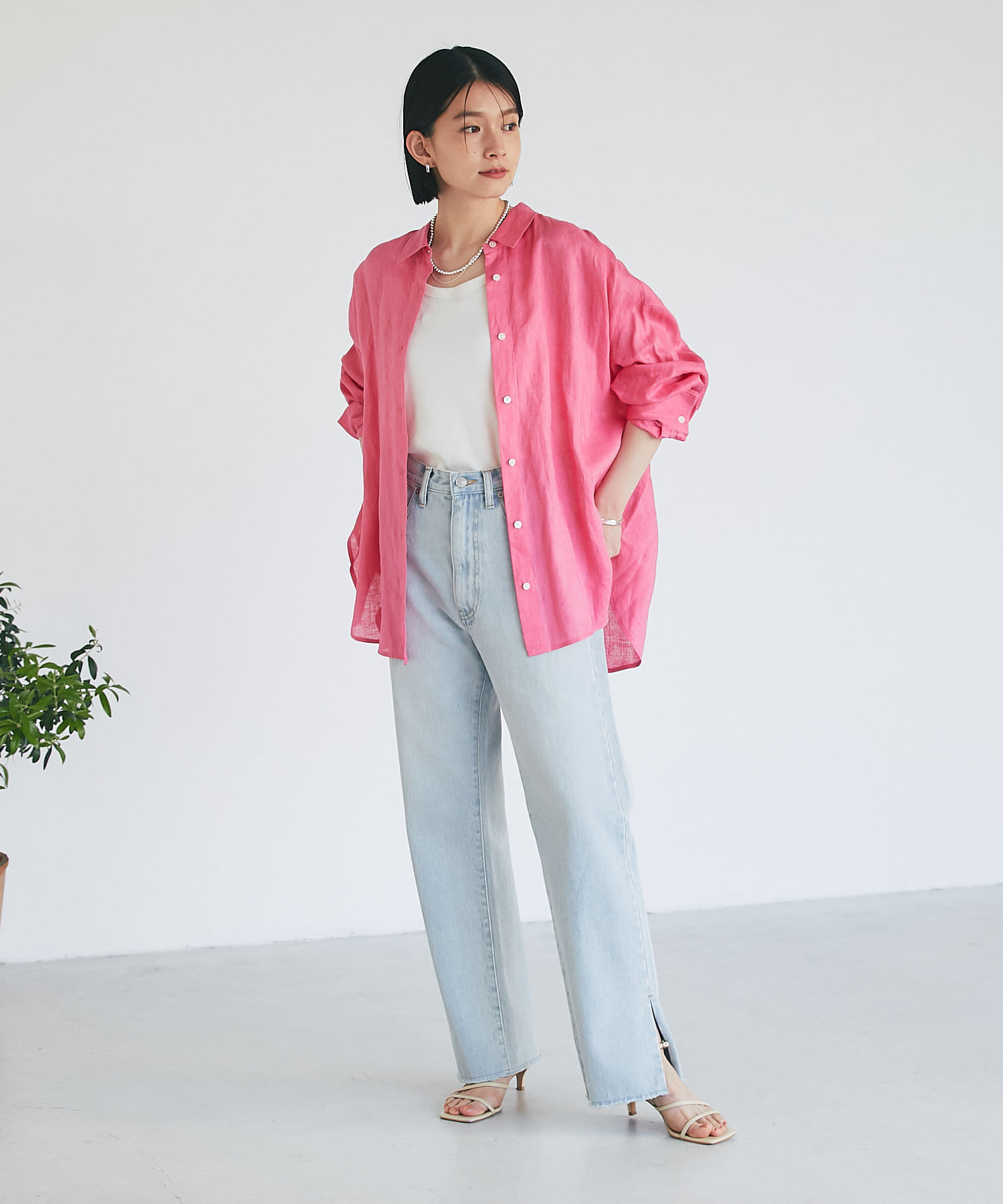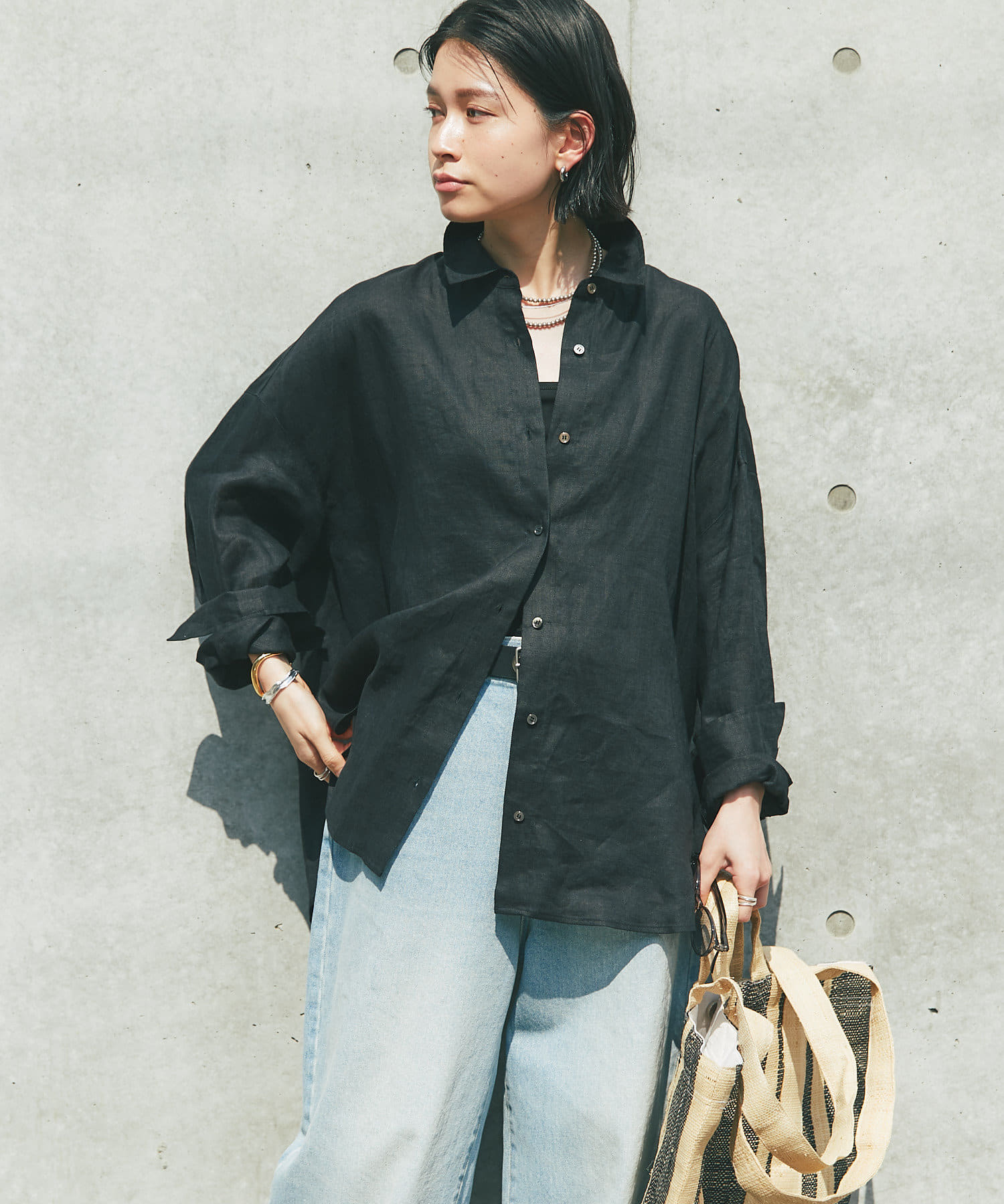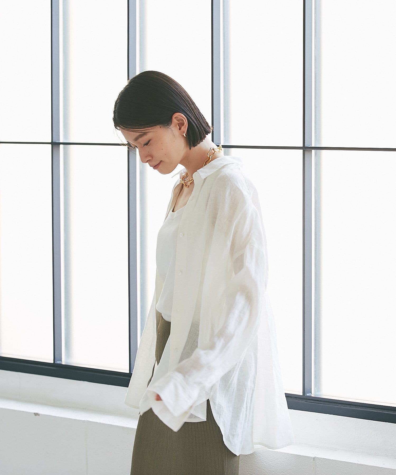 ナチュラルで程よくシアー感のある大人っぽいリネンシャツ。
