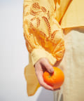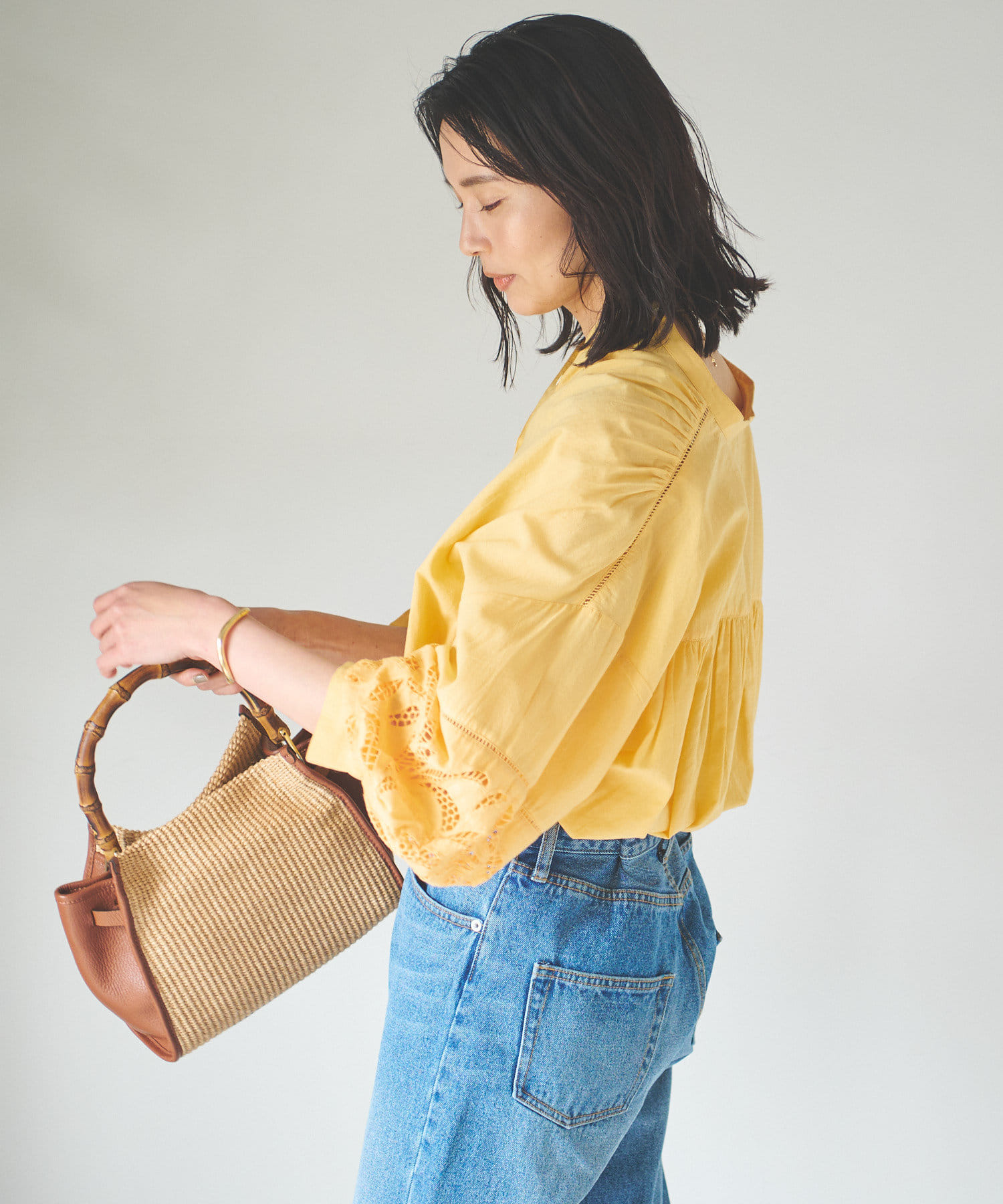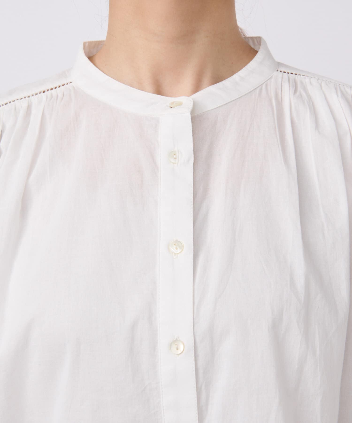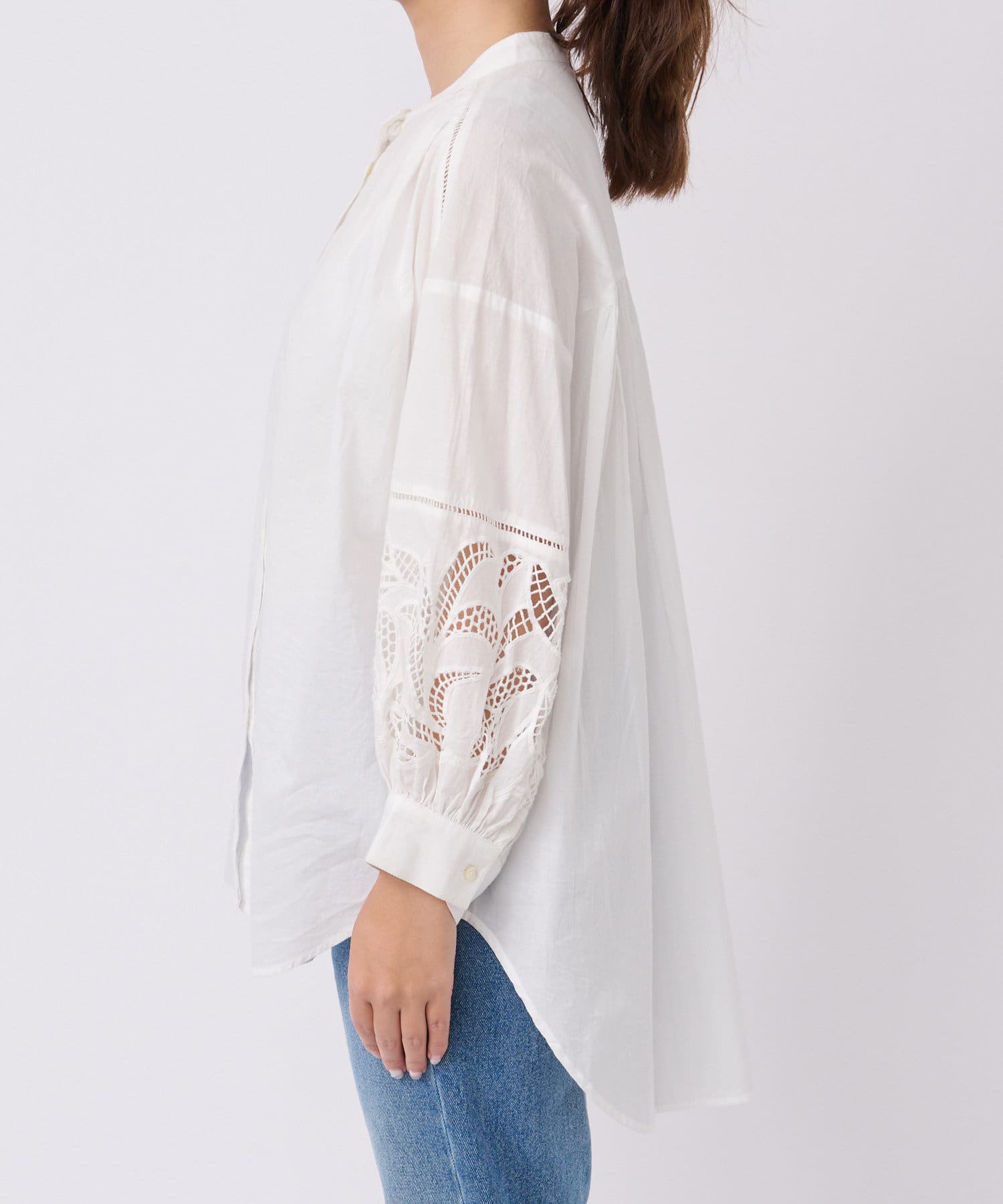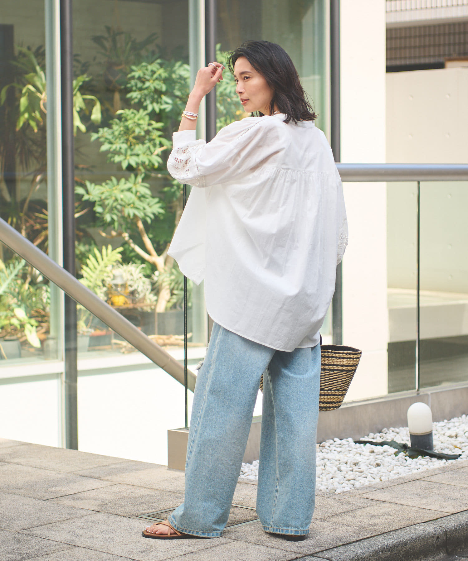 【袖口のレースがさりげない】コットン袖刺繍ギャザーブラウス