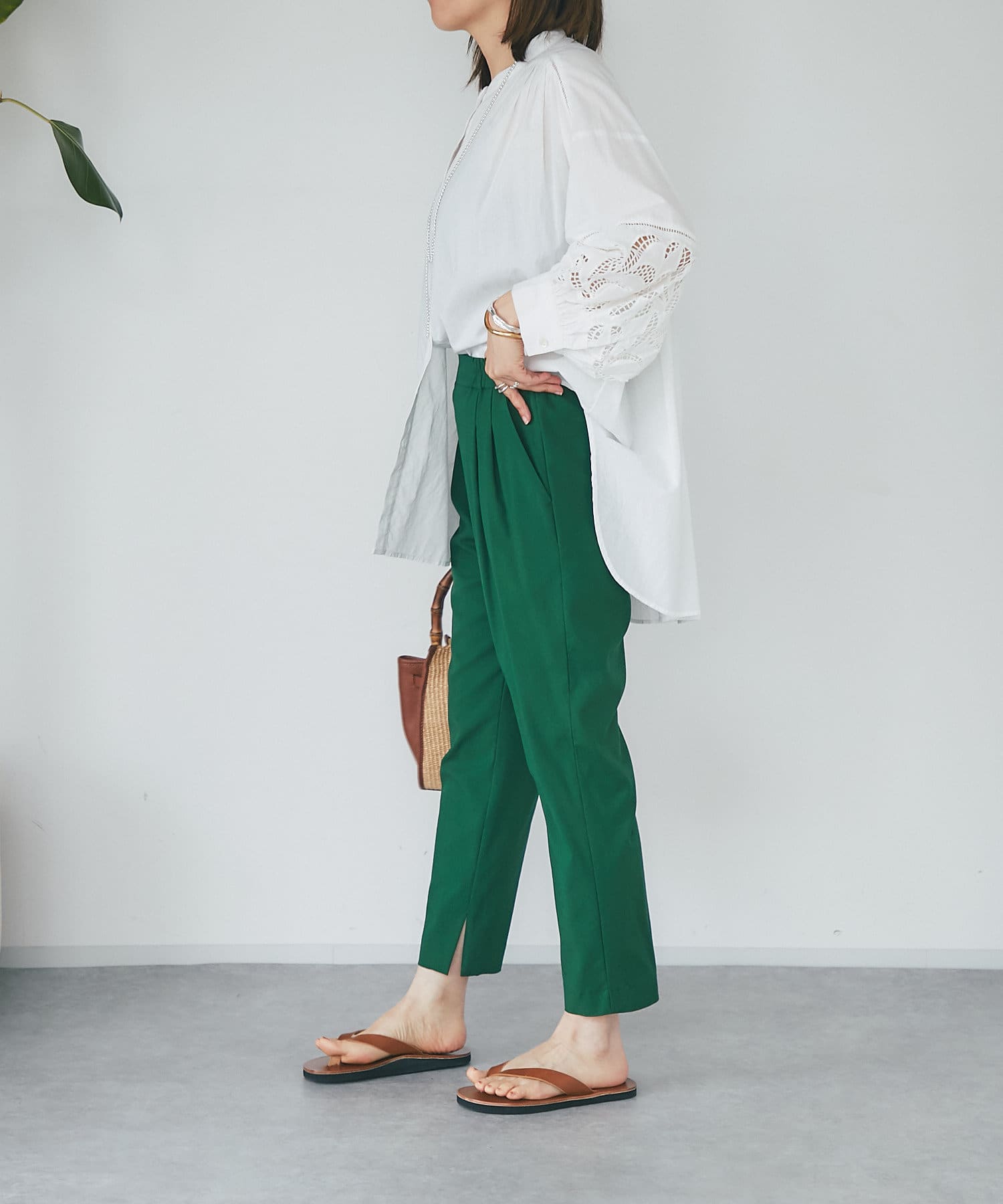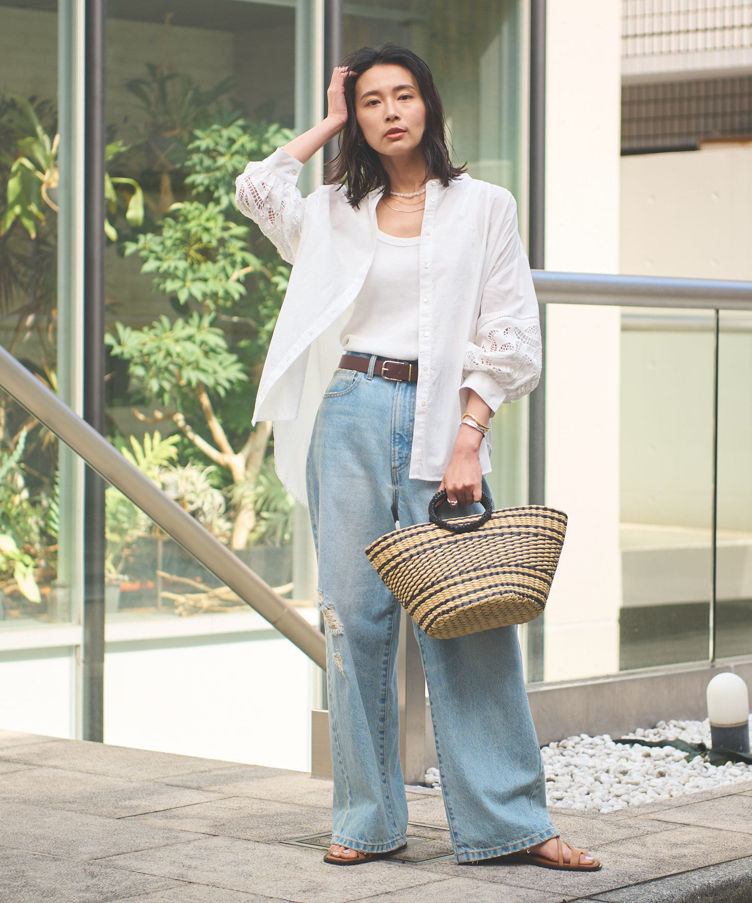 デニム合わせでさわやかなスタイリングはもちろん、タイトスカートやテーパードパンツなどで綺麗めのコーディネートも◎