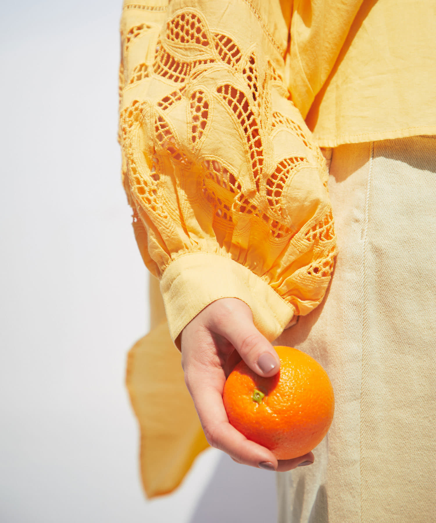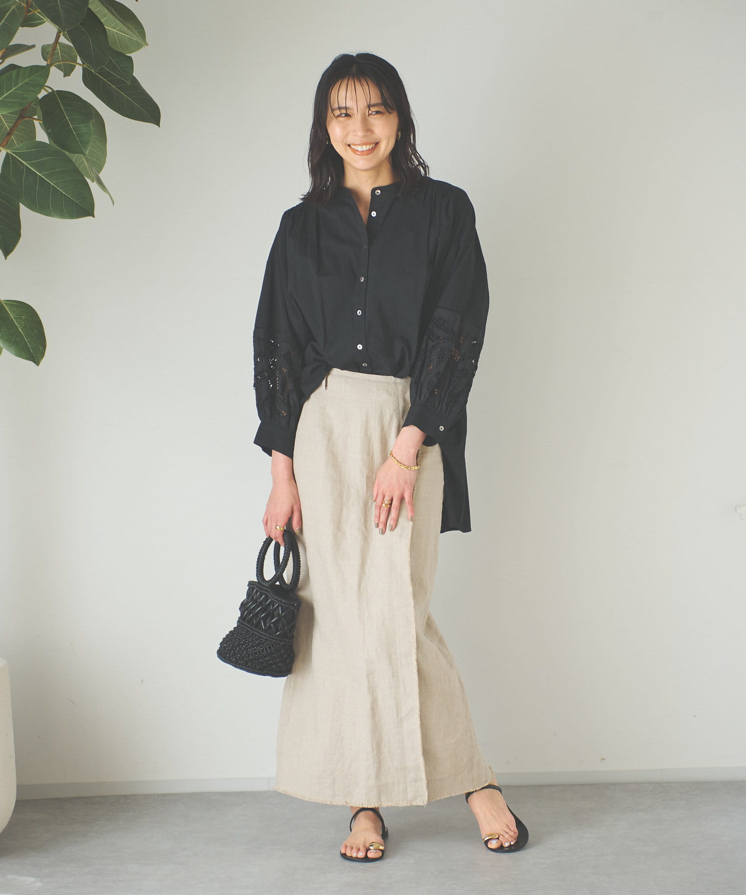 綺麗めな着こなしにもマッチする刺繍ブラウス