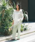 あまり透け感が強くないので、キャミインナーで思い切り肌みせしてもヘルシーな雰囲気に。