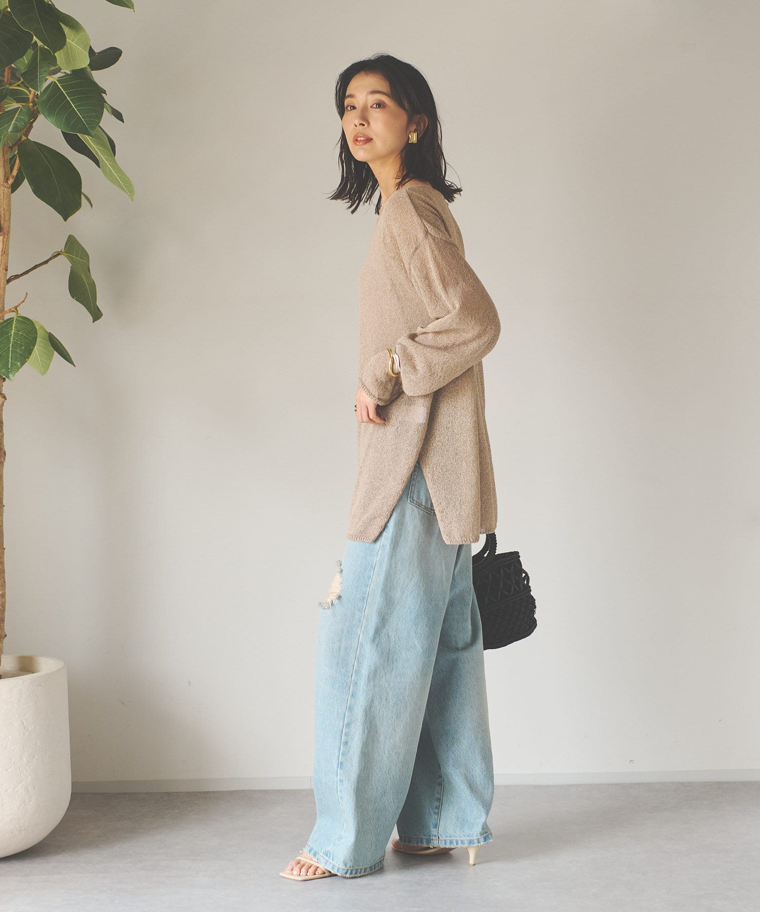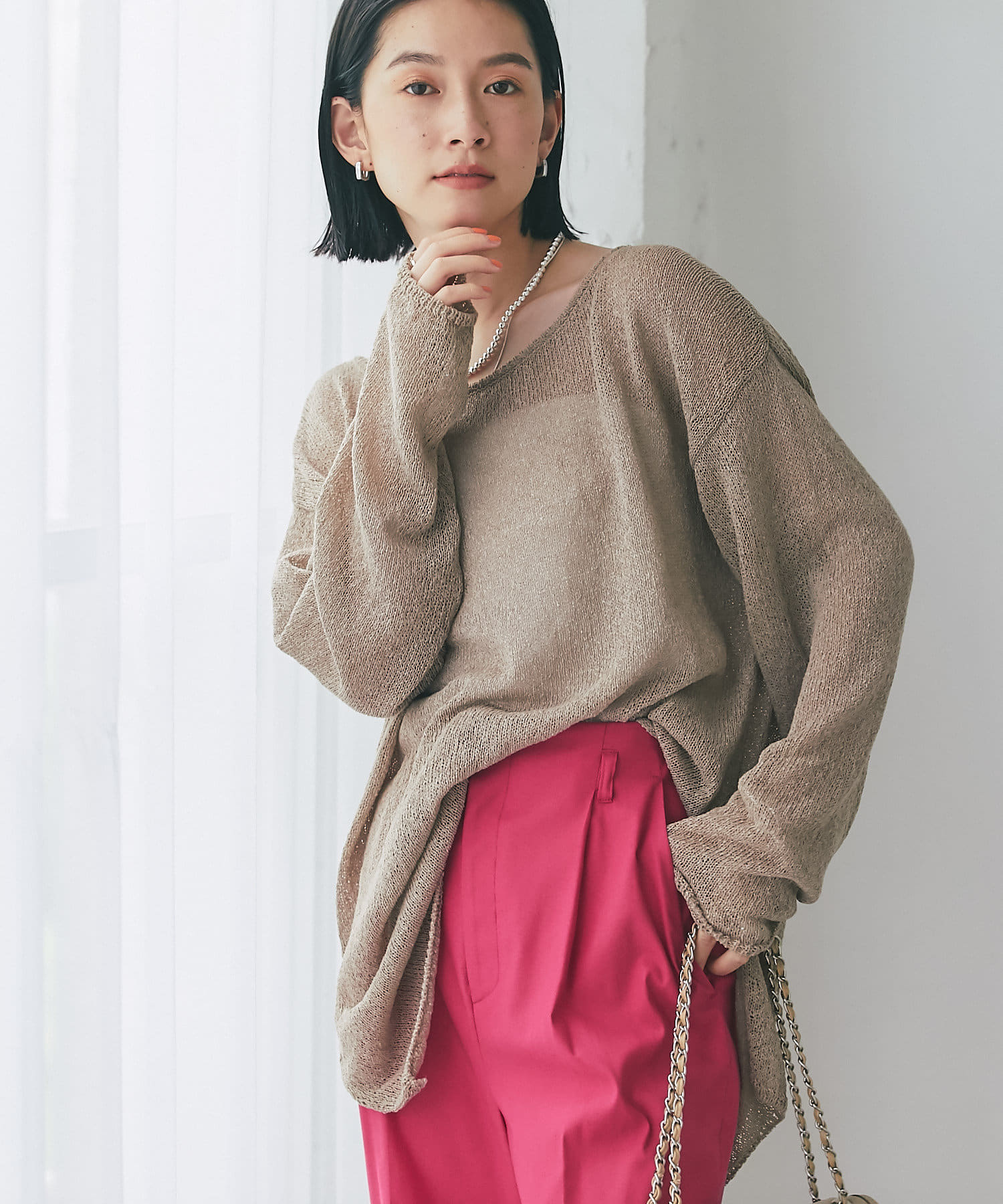 【大人カジュアルにぴったり】ペーパーガーゼルーズシアーニット