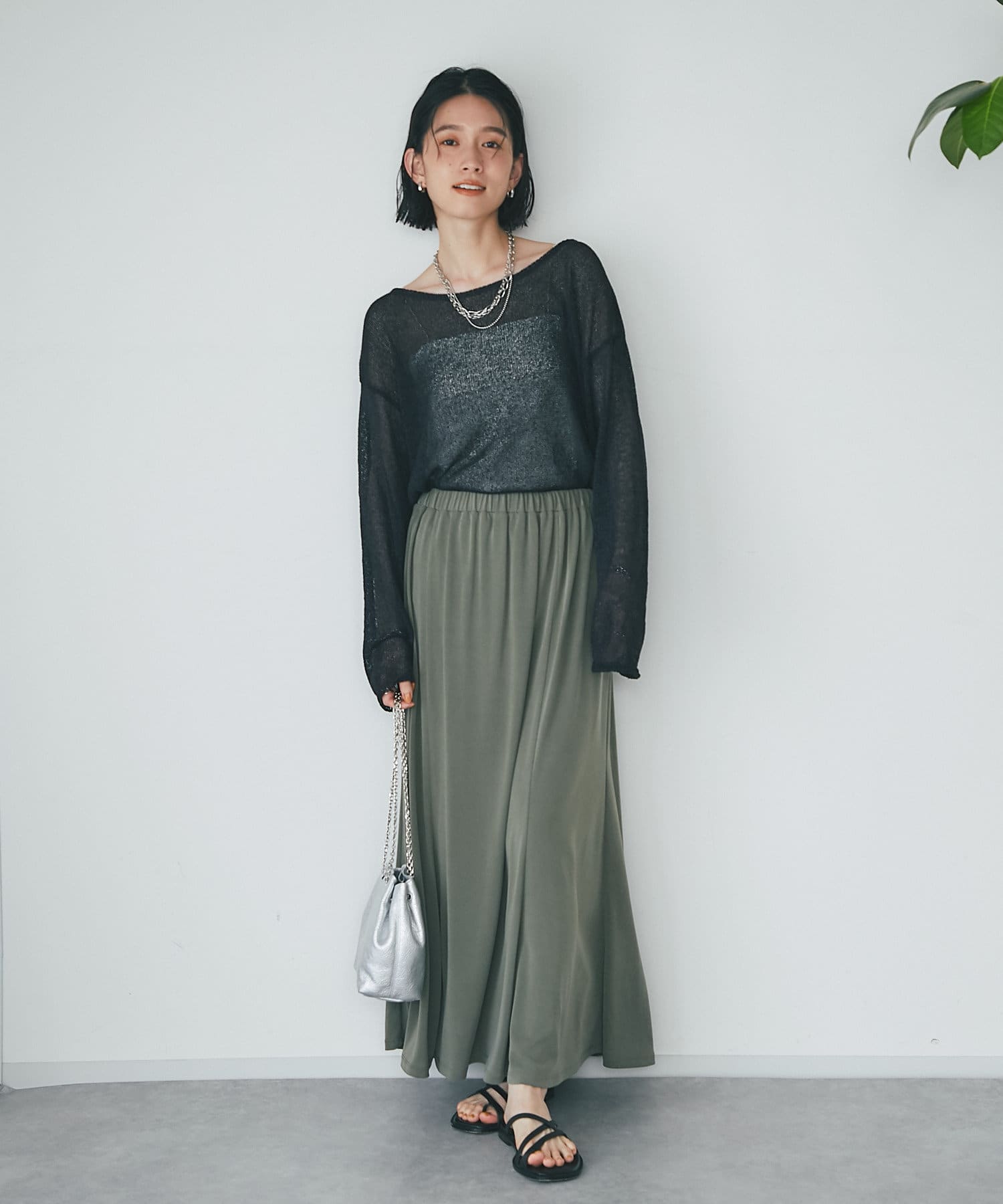 シアー感のある素材なので、肌寒い時期はロンTを重ねて◎