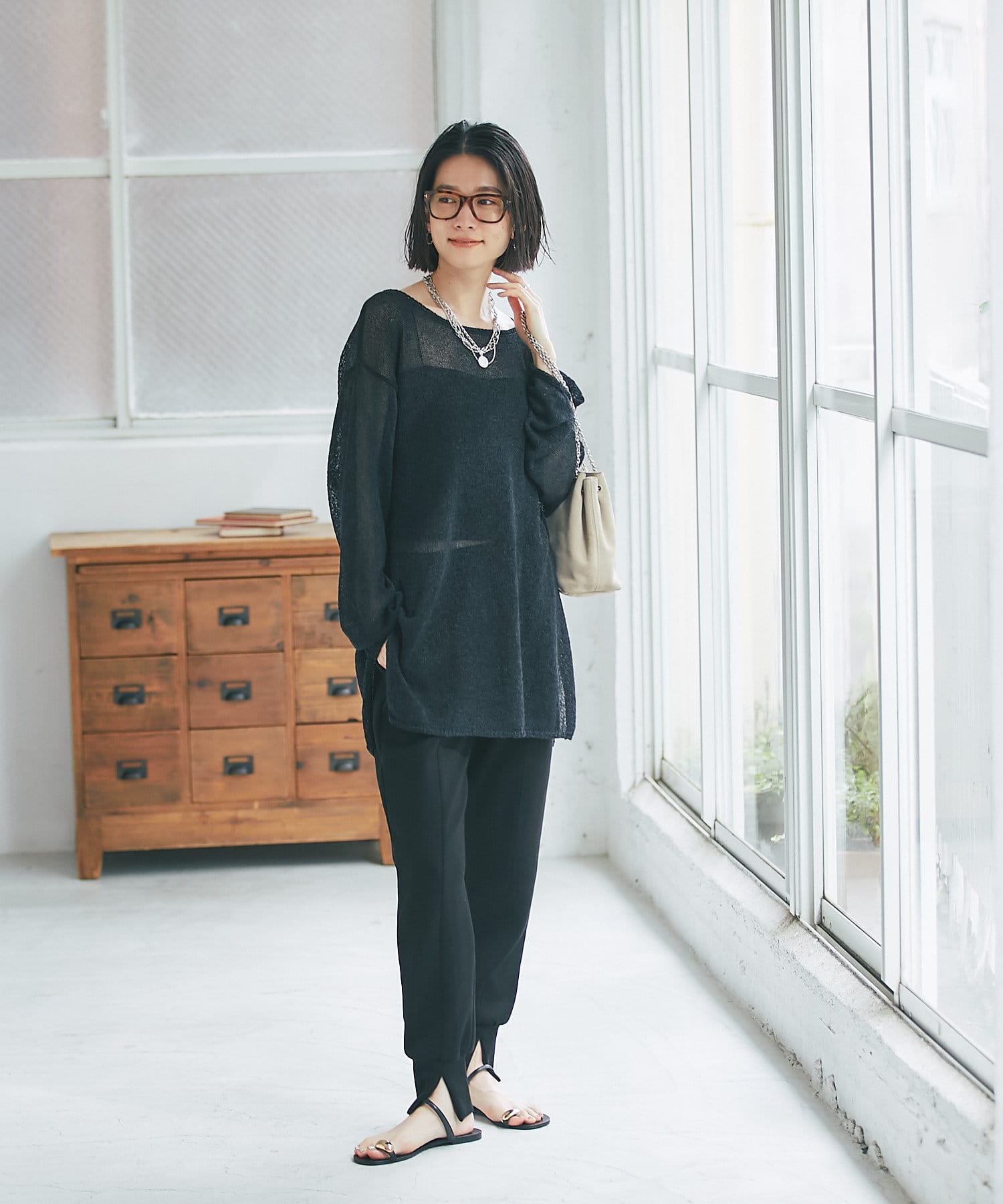 しっかりと透けるシアー感があるため、夏素材のブラックの中では軽やかにお召し頂けます。