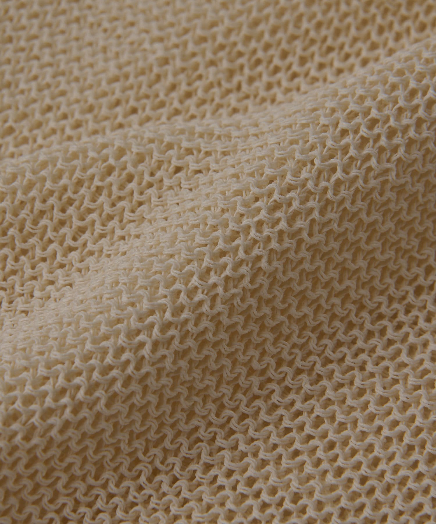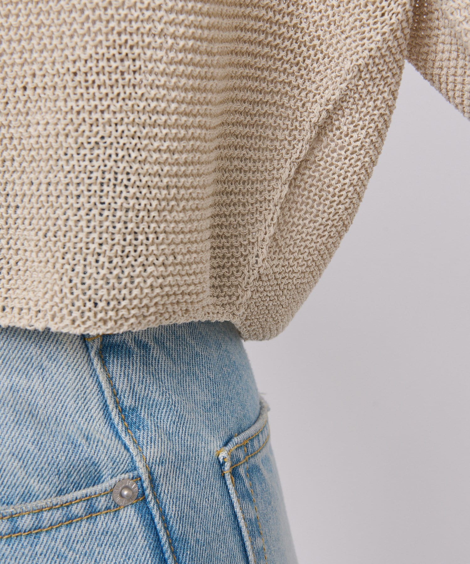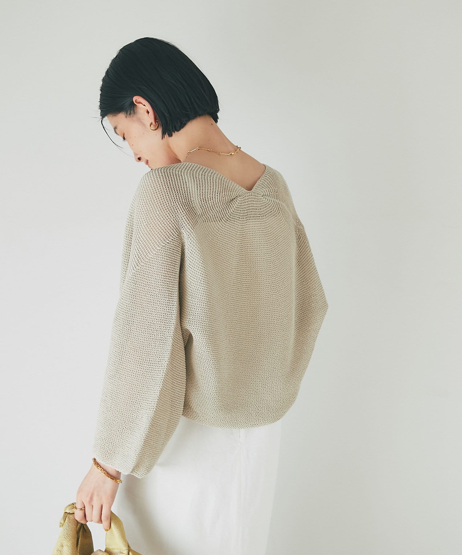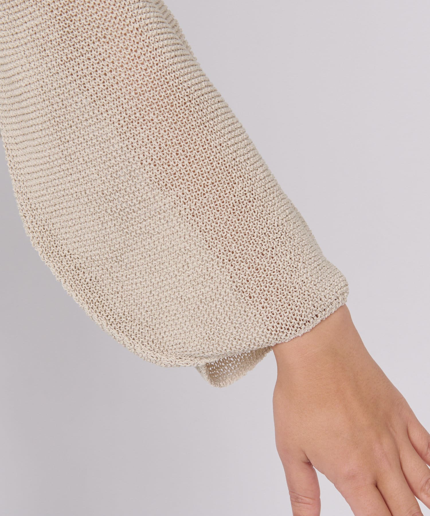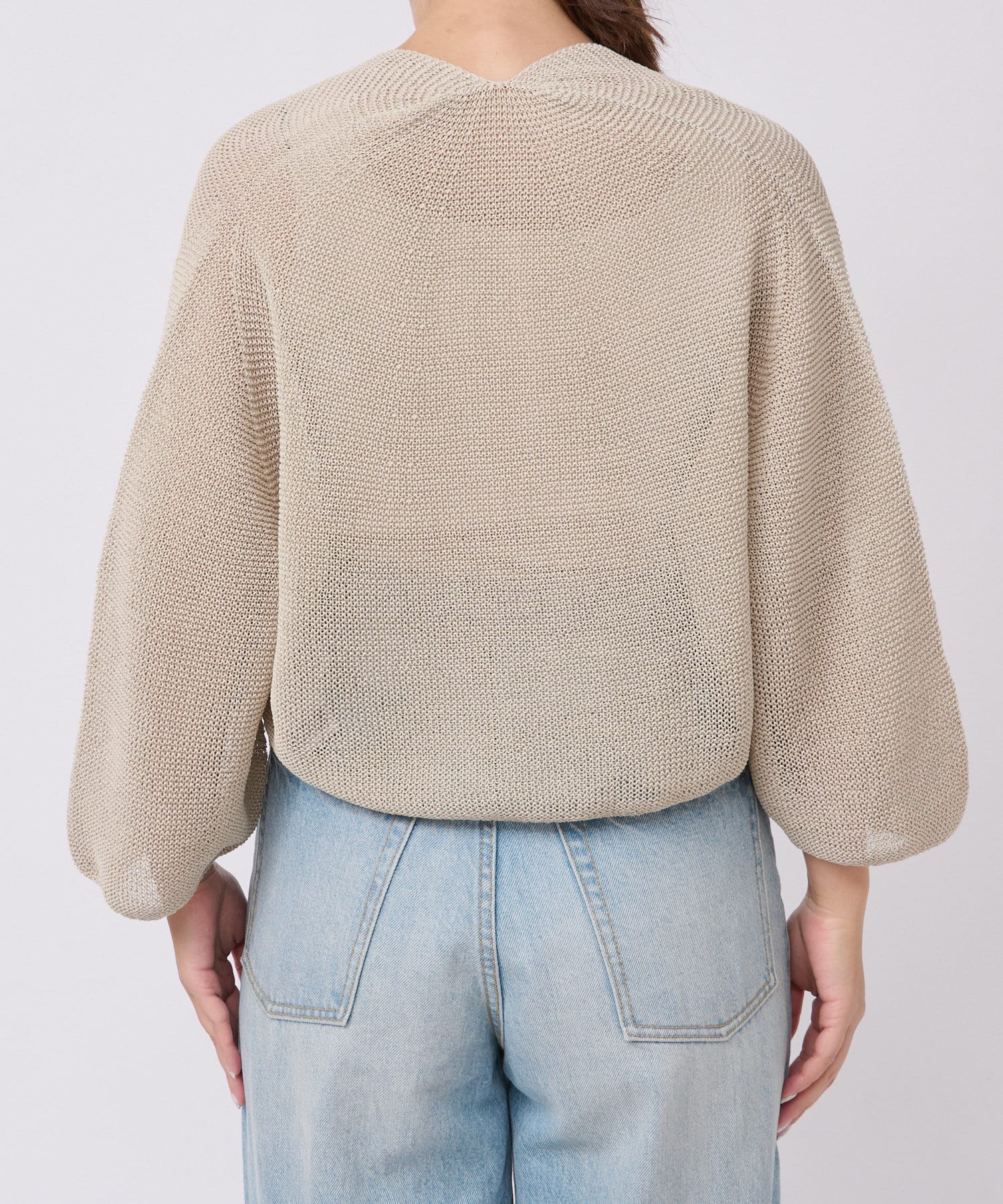 凹凸感のあるシアーな編地とふわっと軽い着心地のペーパーヤーンを使用したニットのトッパーカーディガン。
