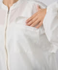 一見カジュアルに見えるブルゾンですが、落ち着きのあるカラーリングと透けすぎない程よいシアー感で、大人らしさを演出します。