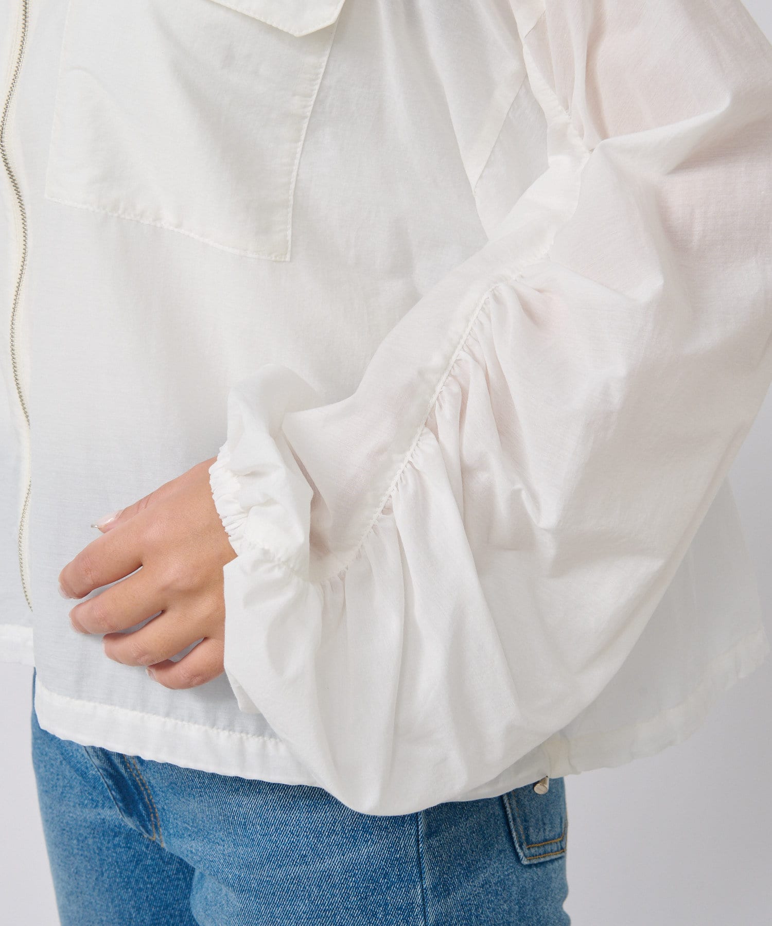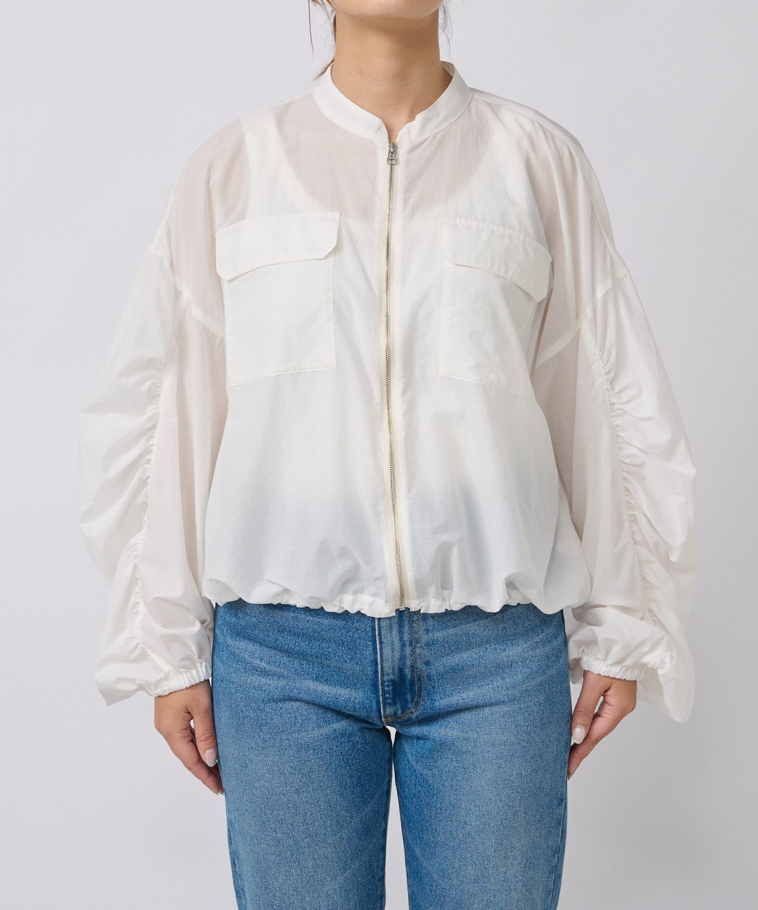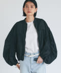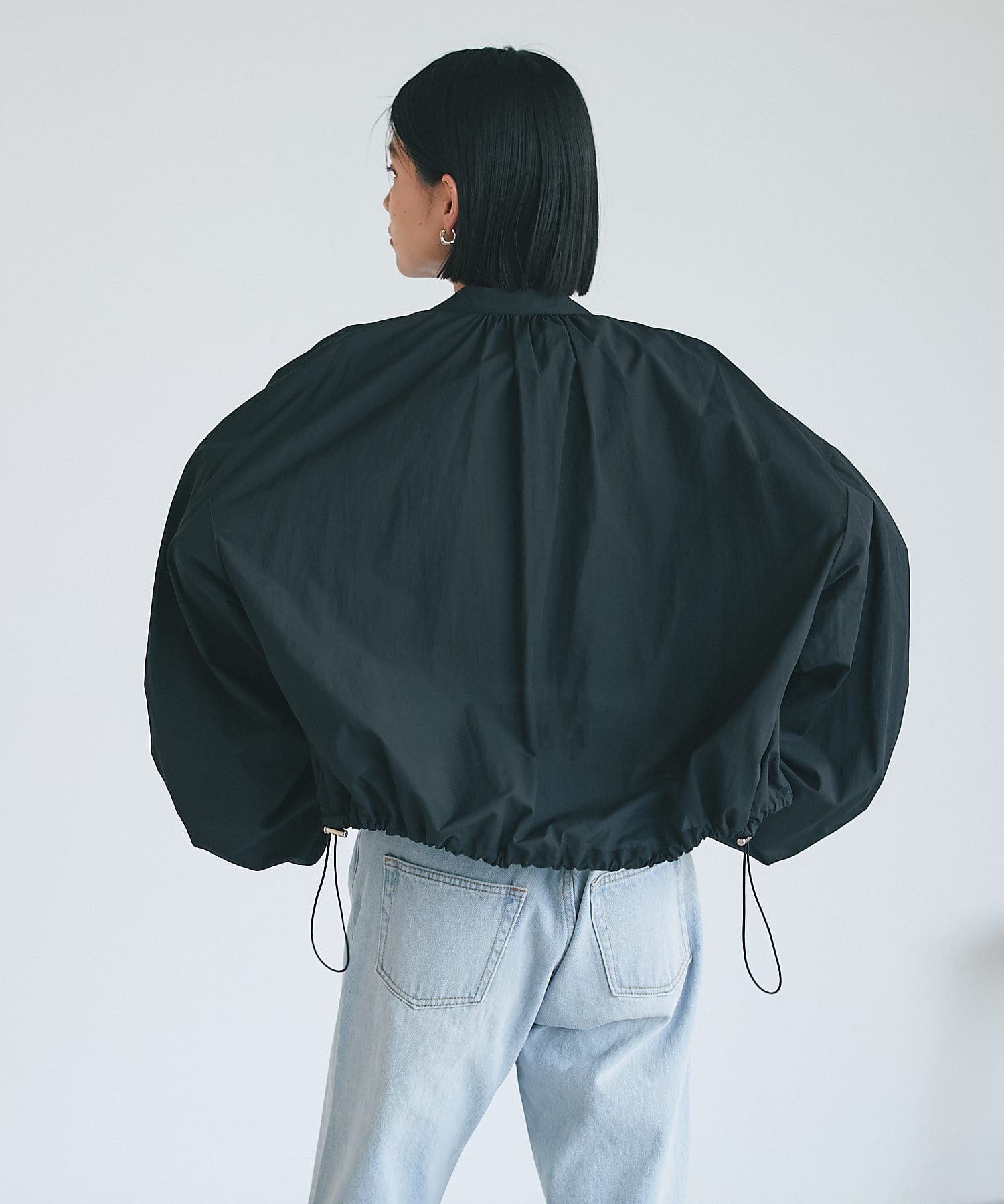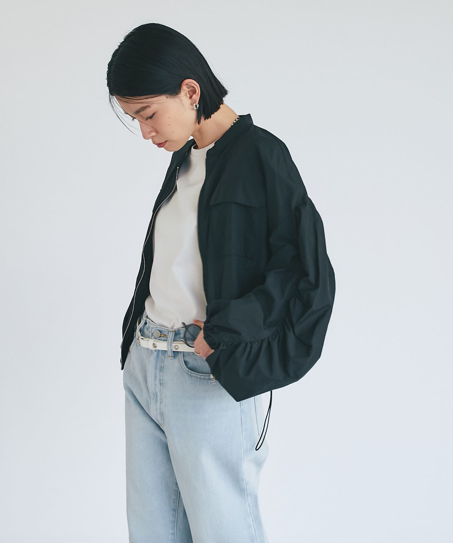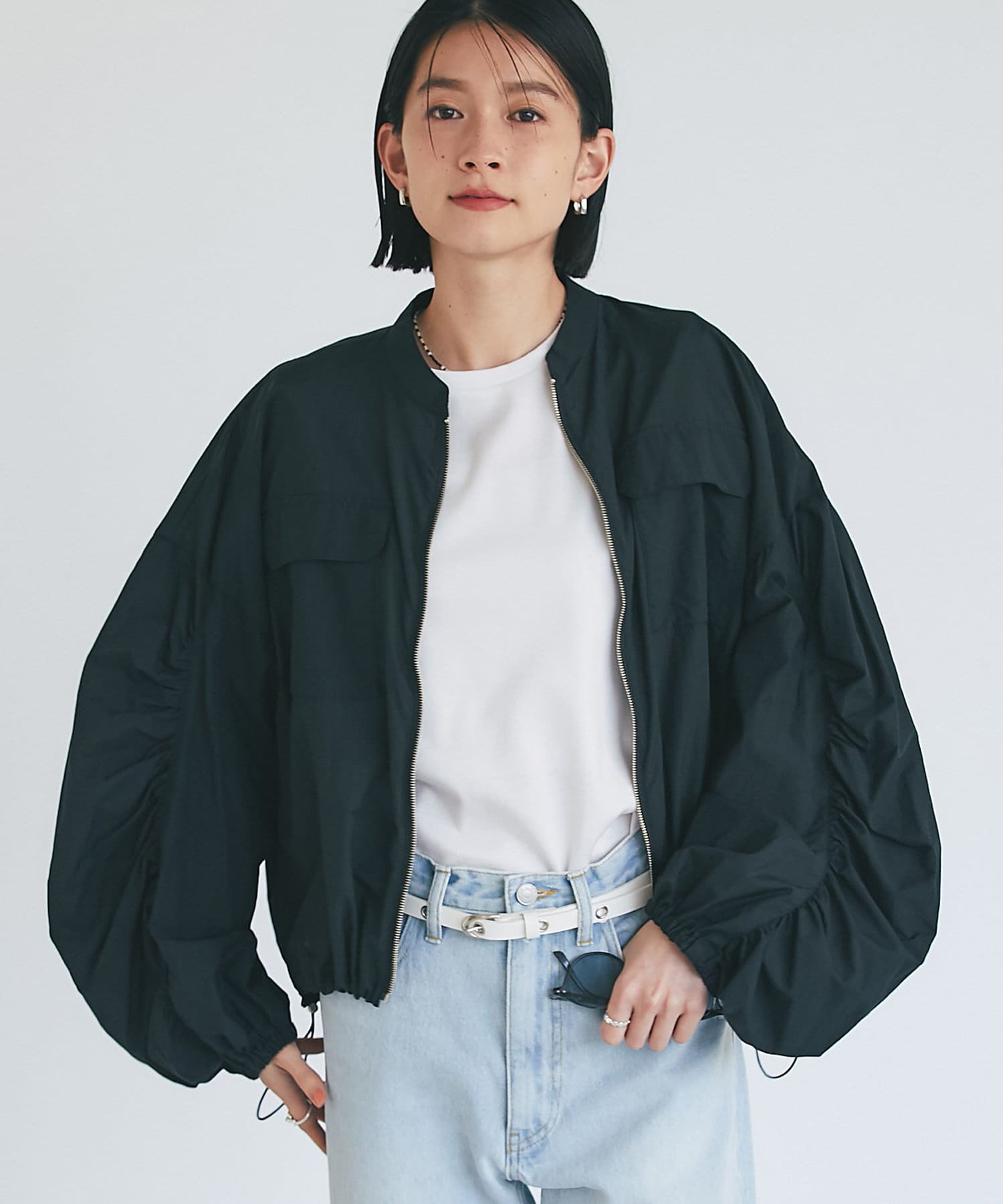 袖にたっぷりとギャザーを施したデザインがポイントのブルゾン。
