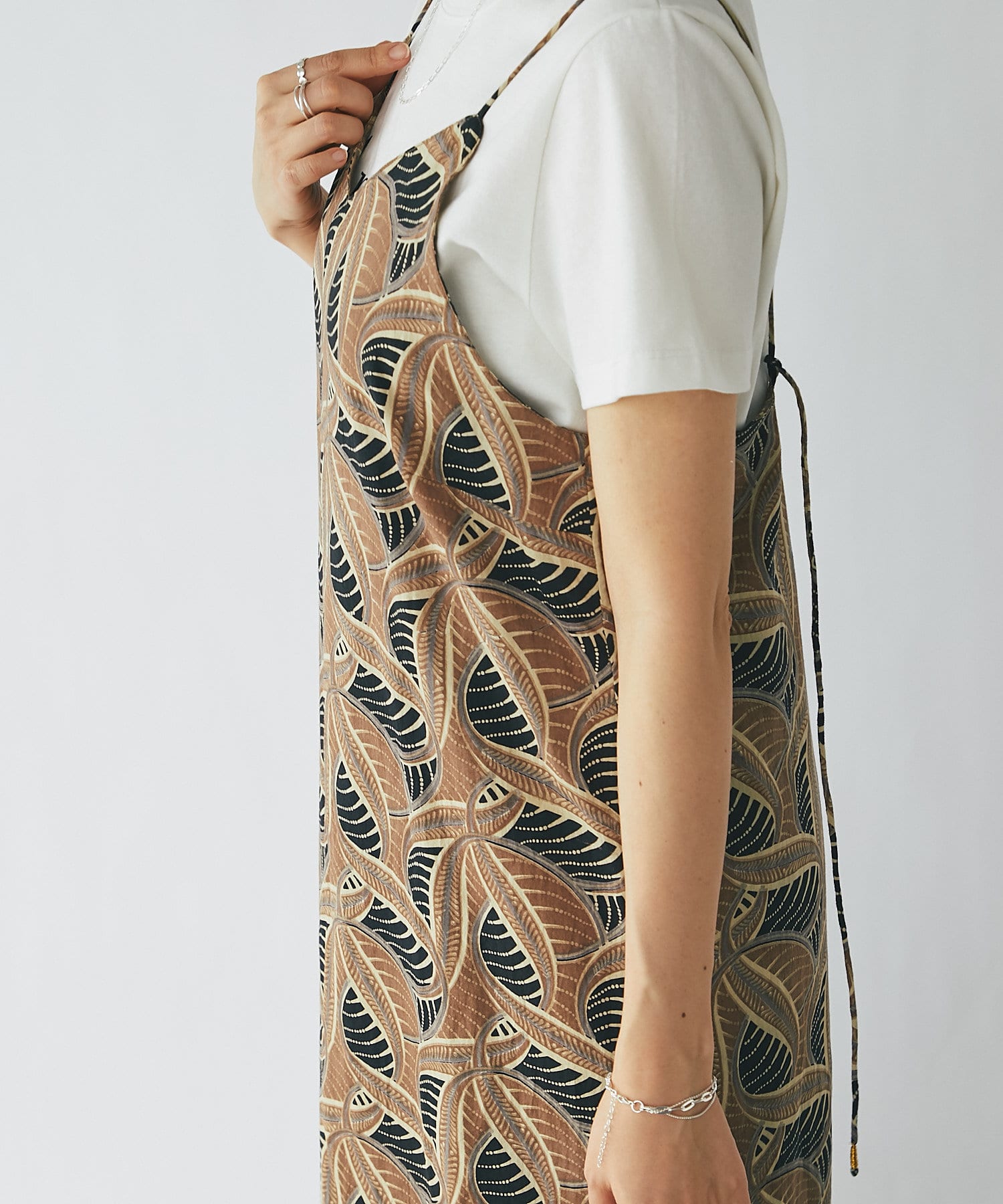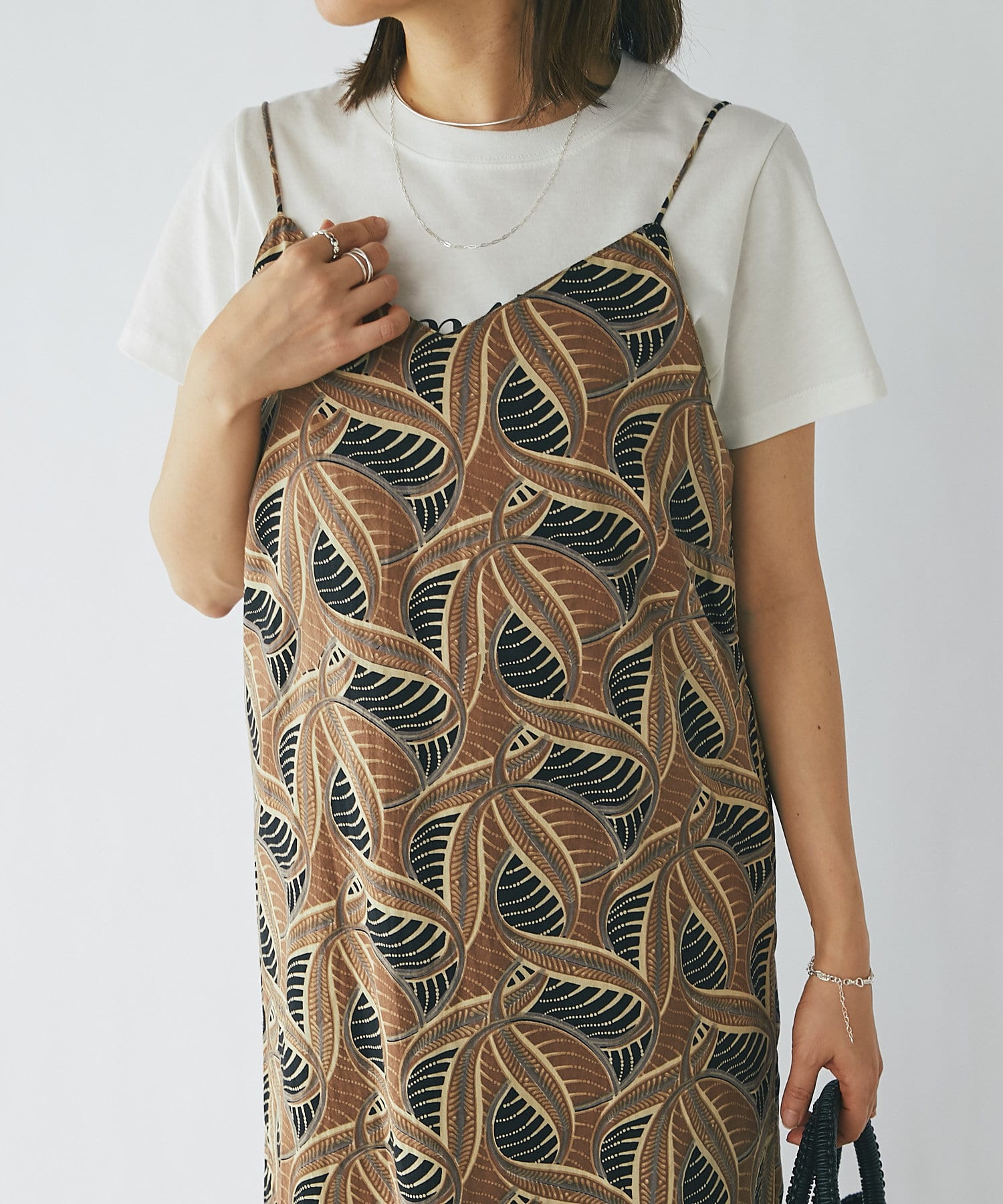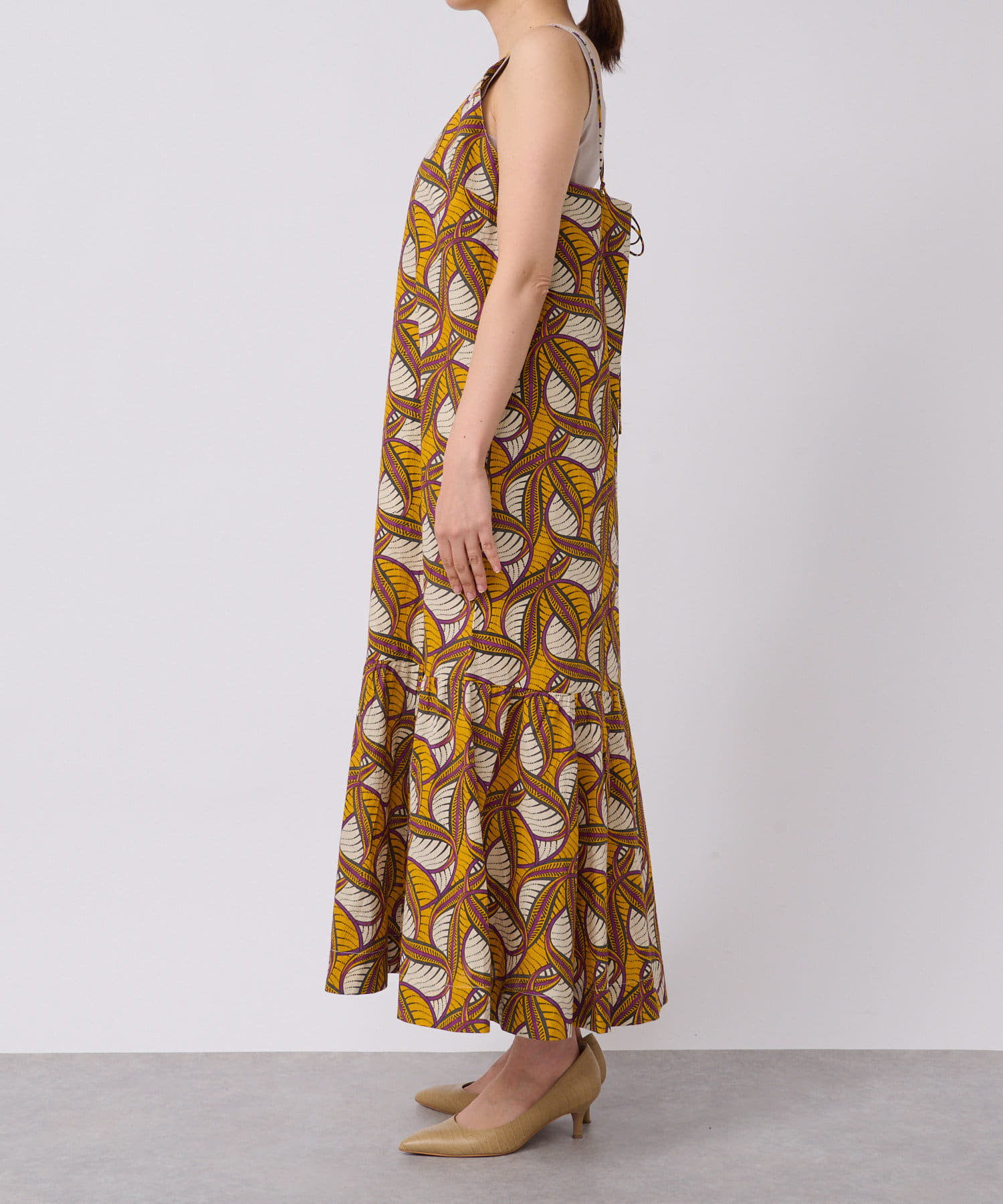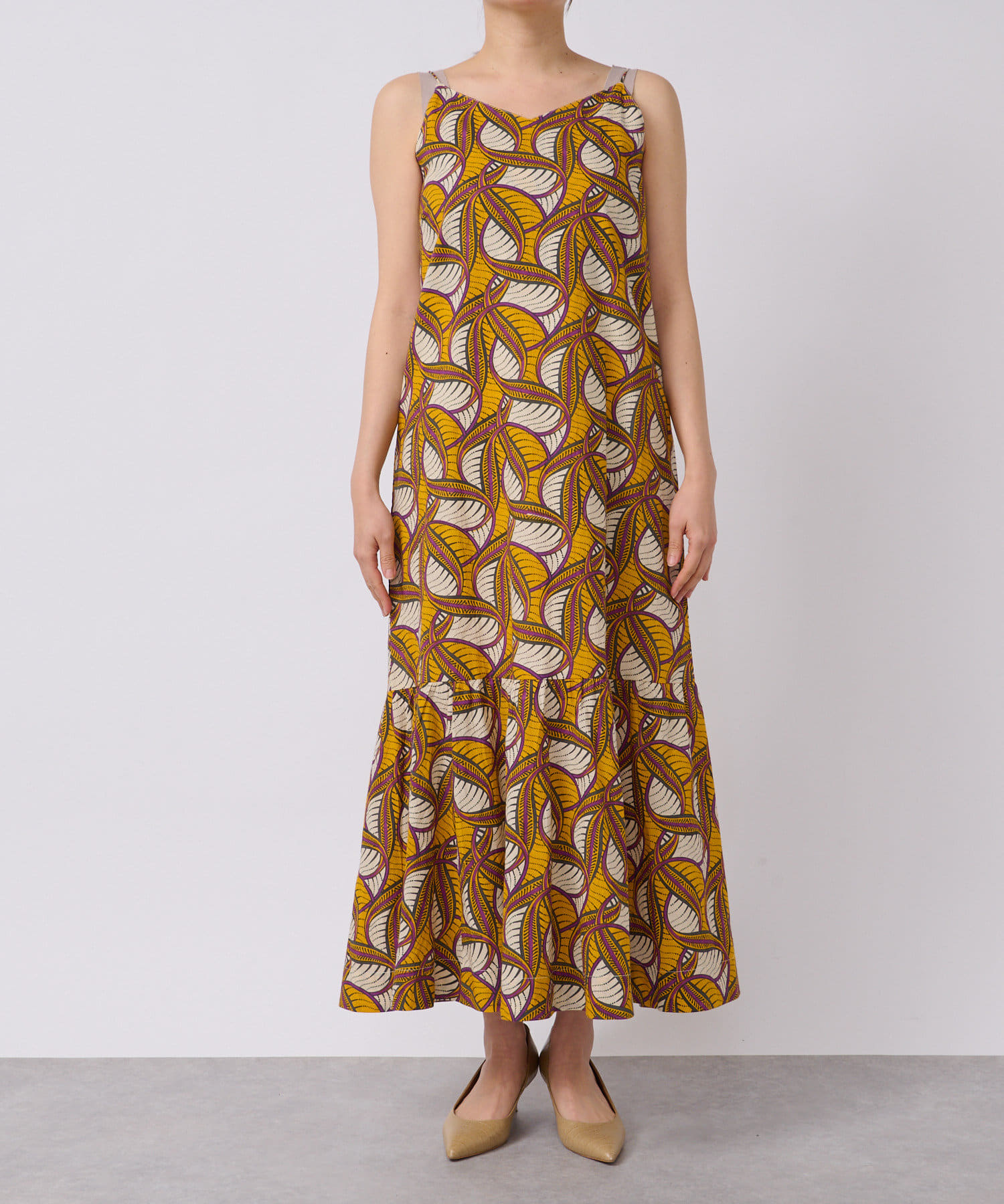 インド生産ならではの素材と風合いと、夏に向けて気分が上がる「バティック」ライクなプリント柄が目を惹くキャミワンピース。