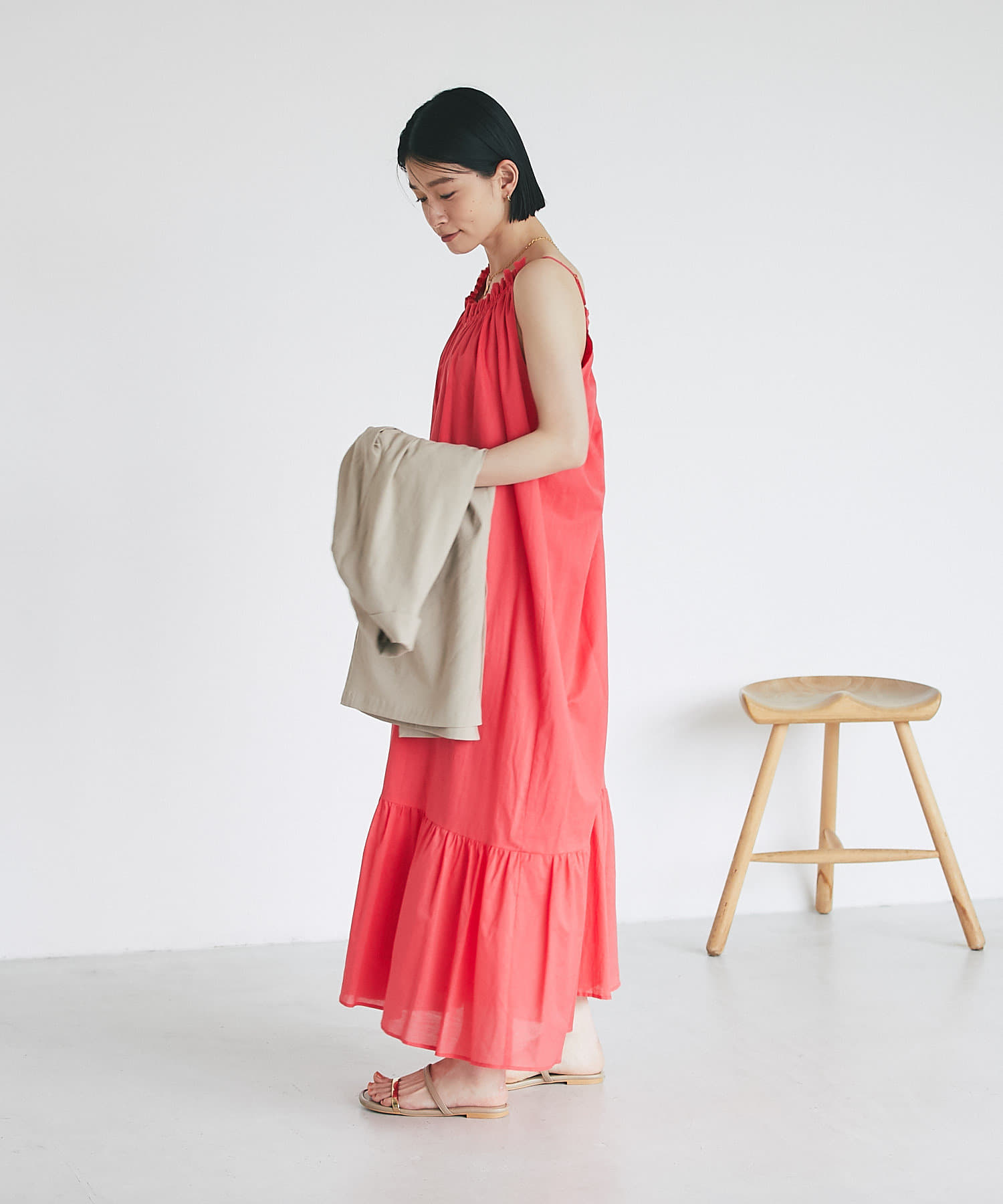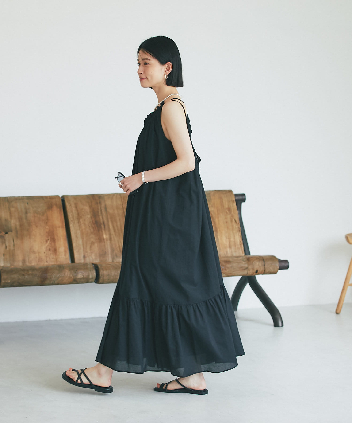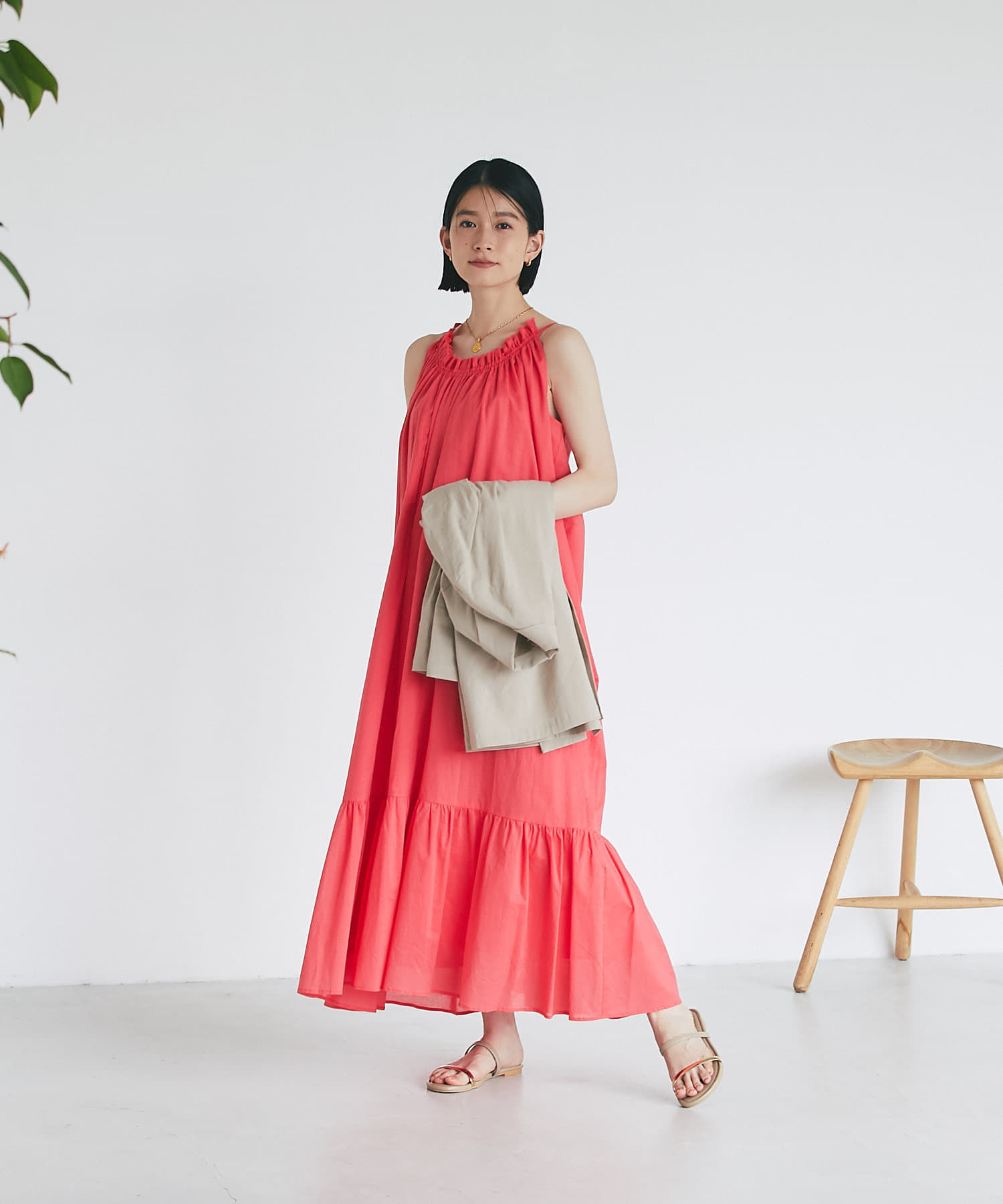 さらっとしたコットン素材をたっぷりと使用したマキシワンピース。