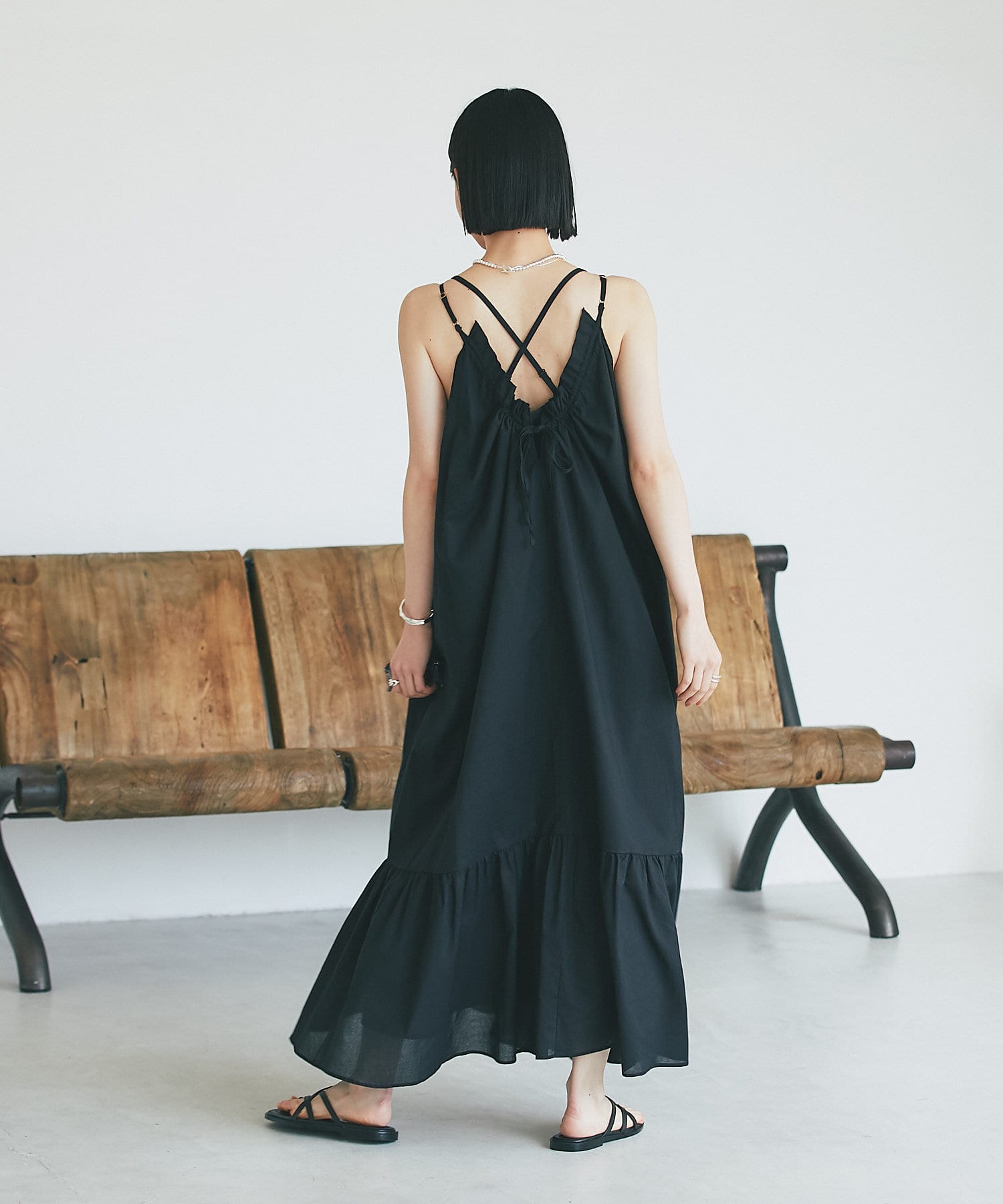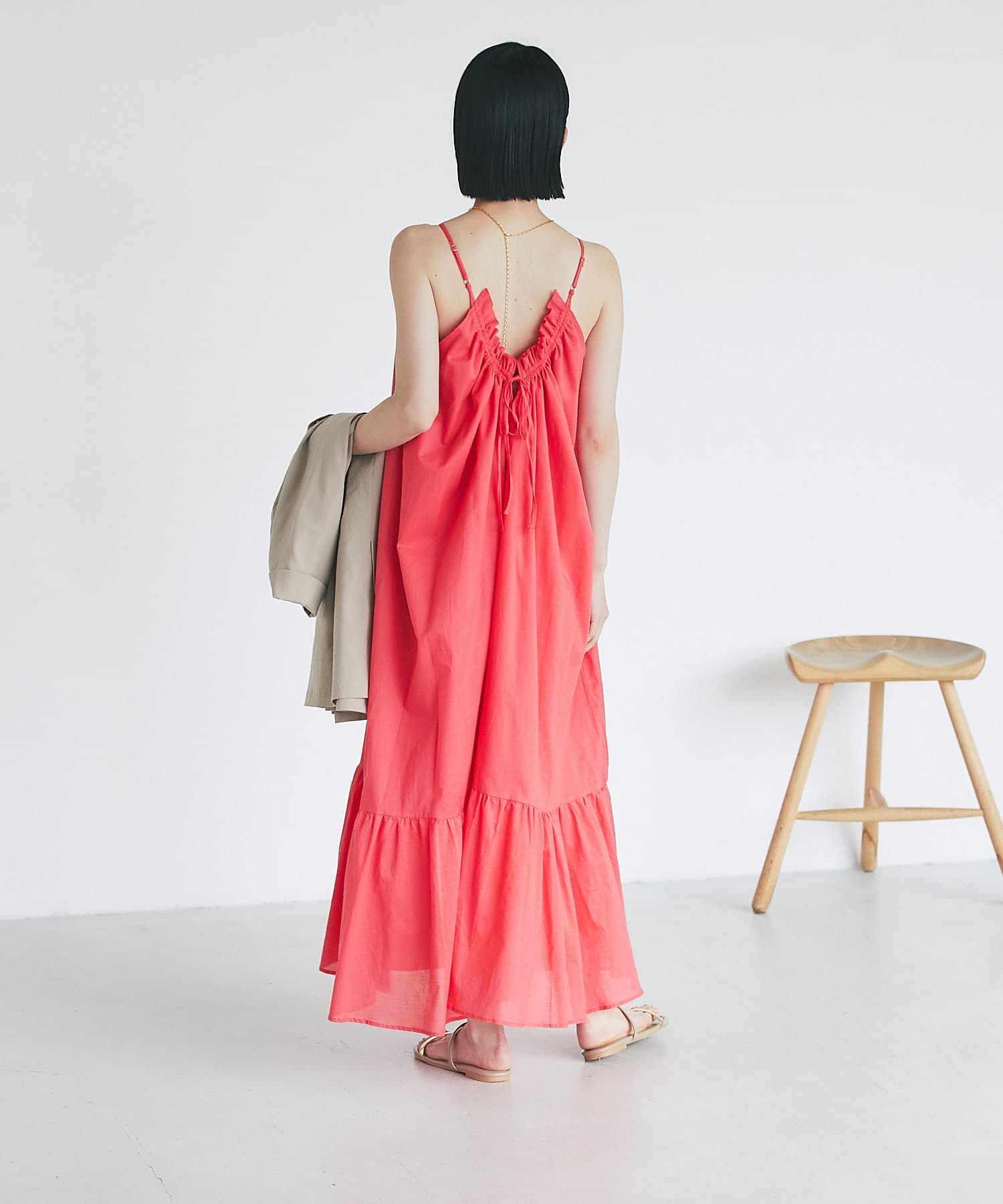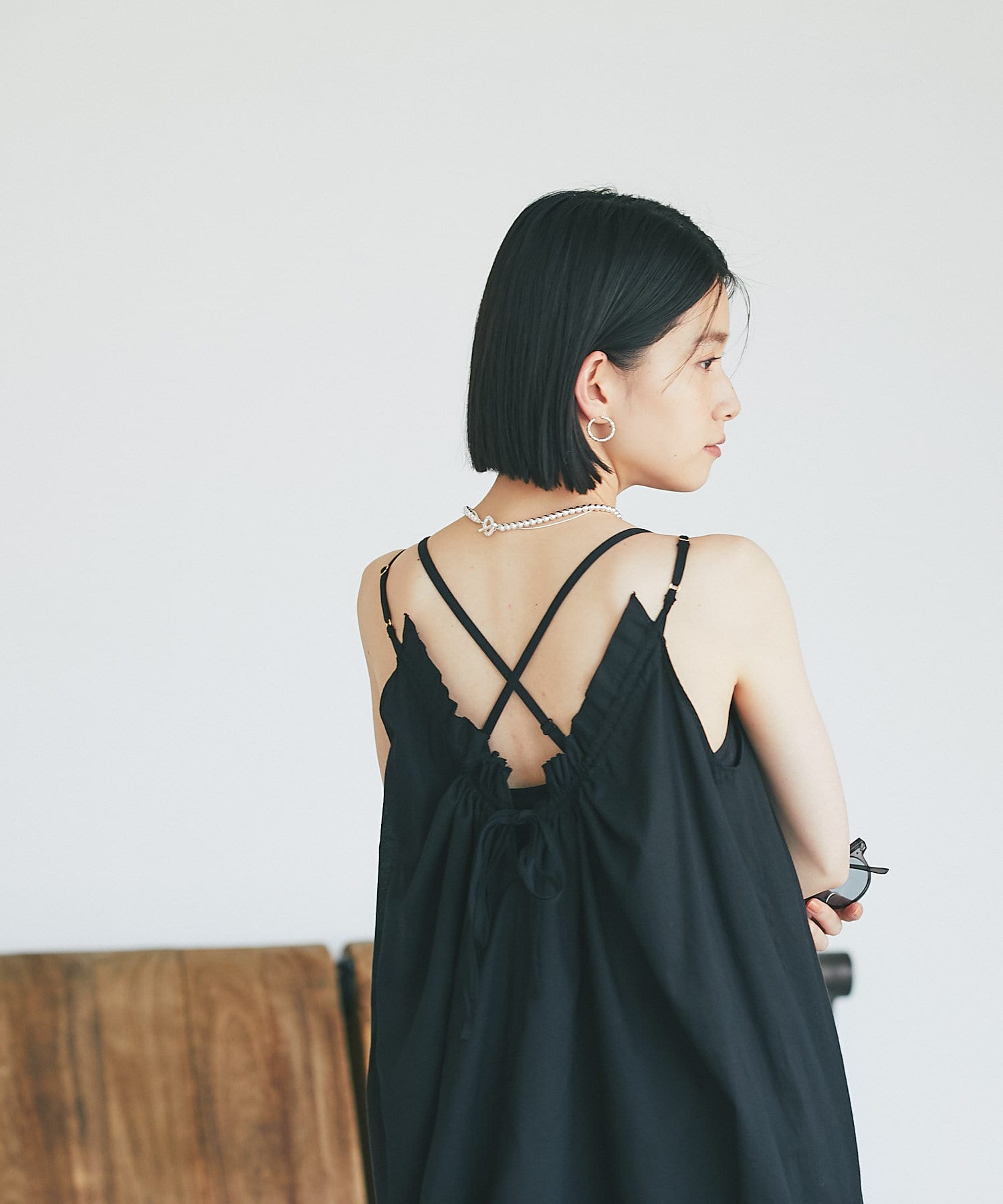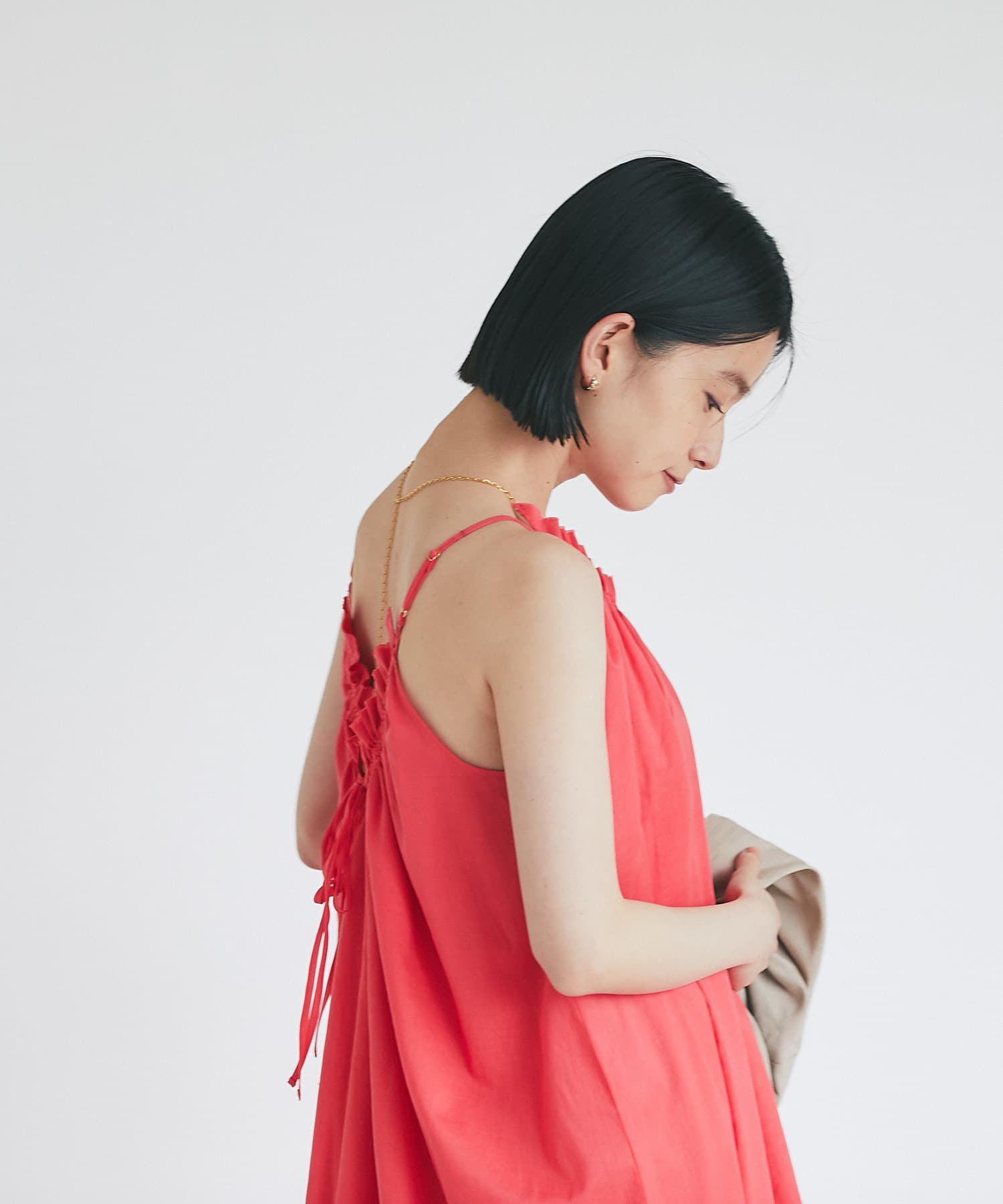 キャミソールタイプで華奢な肩回りとフリルをあしらったデザインもかわいい大人のためのワンピースとなっております。