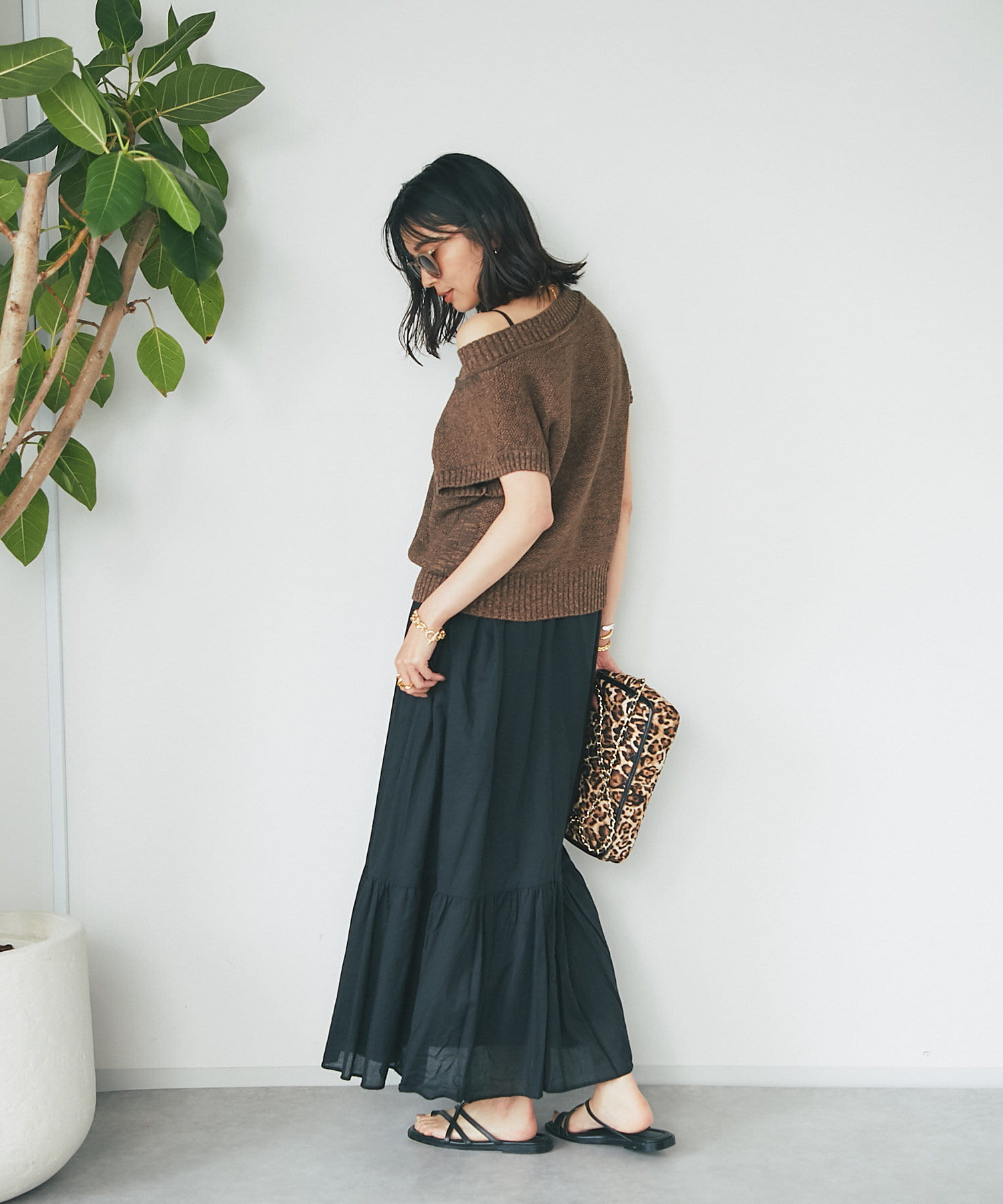柔らかな素材感で身体に馴染み、こなれ感のある印象に。