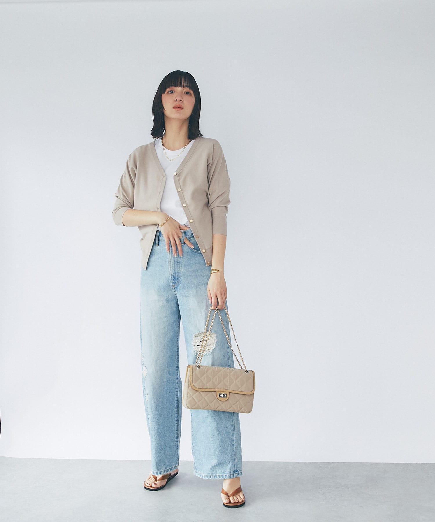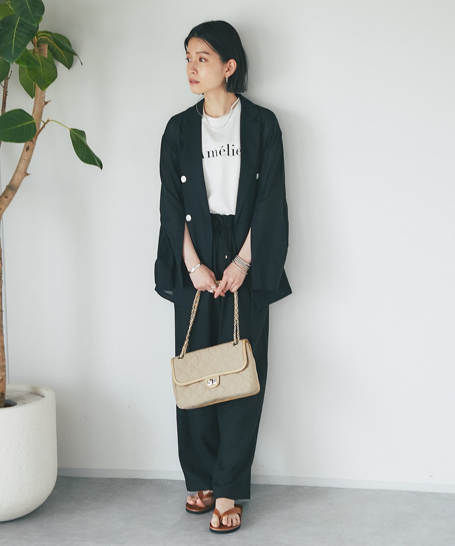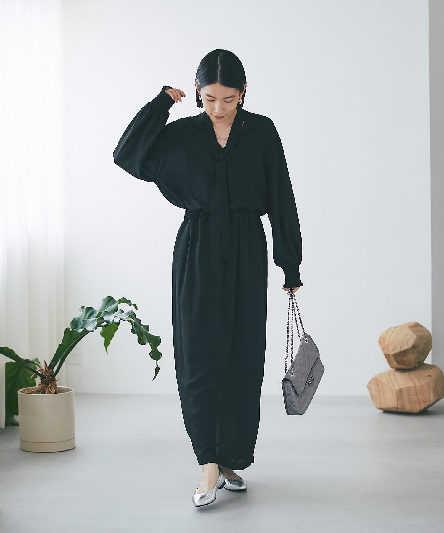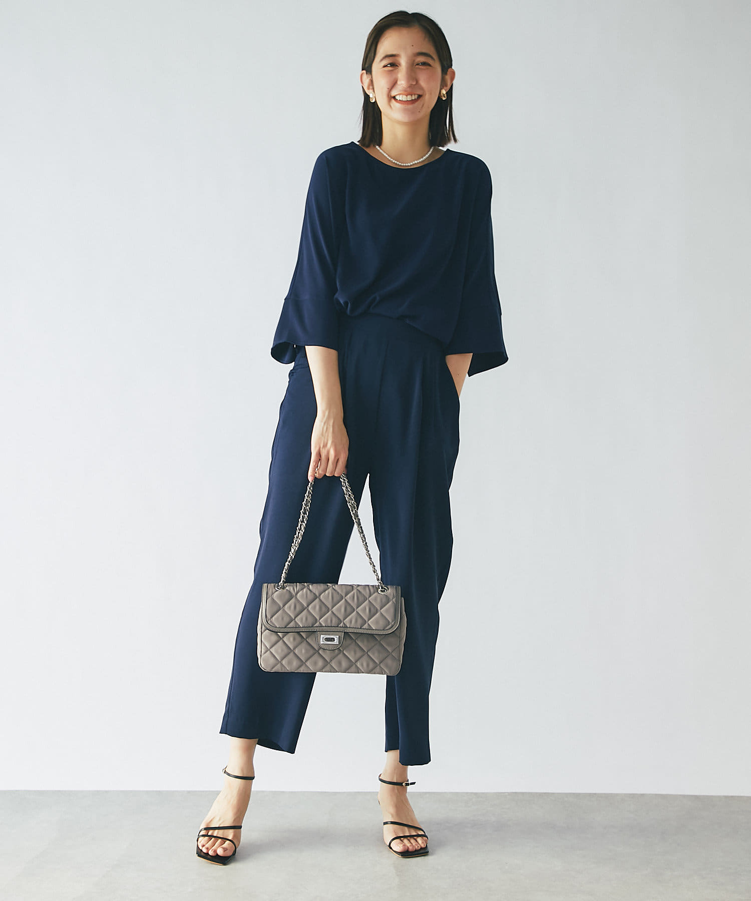 ニュアンスカラーが品のあるスタイリングに仕上げる