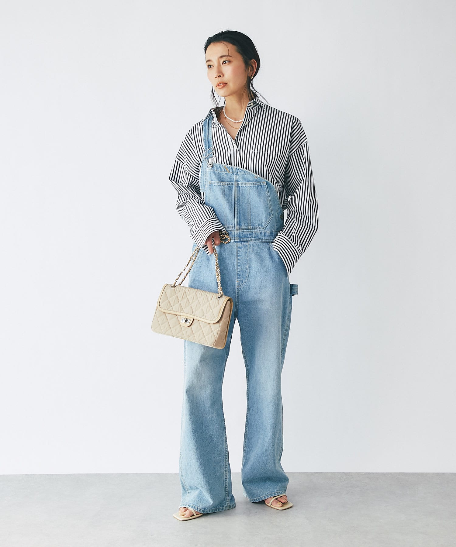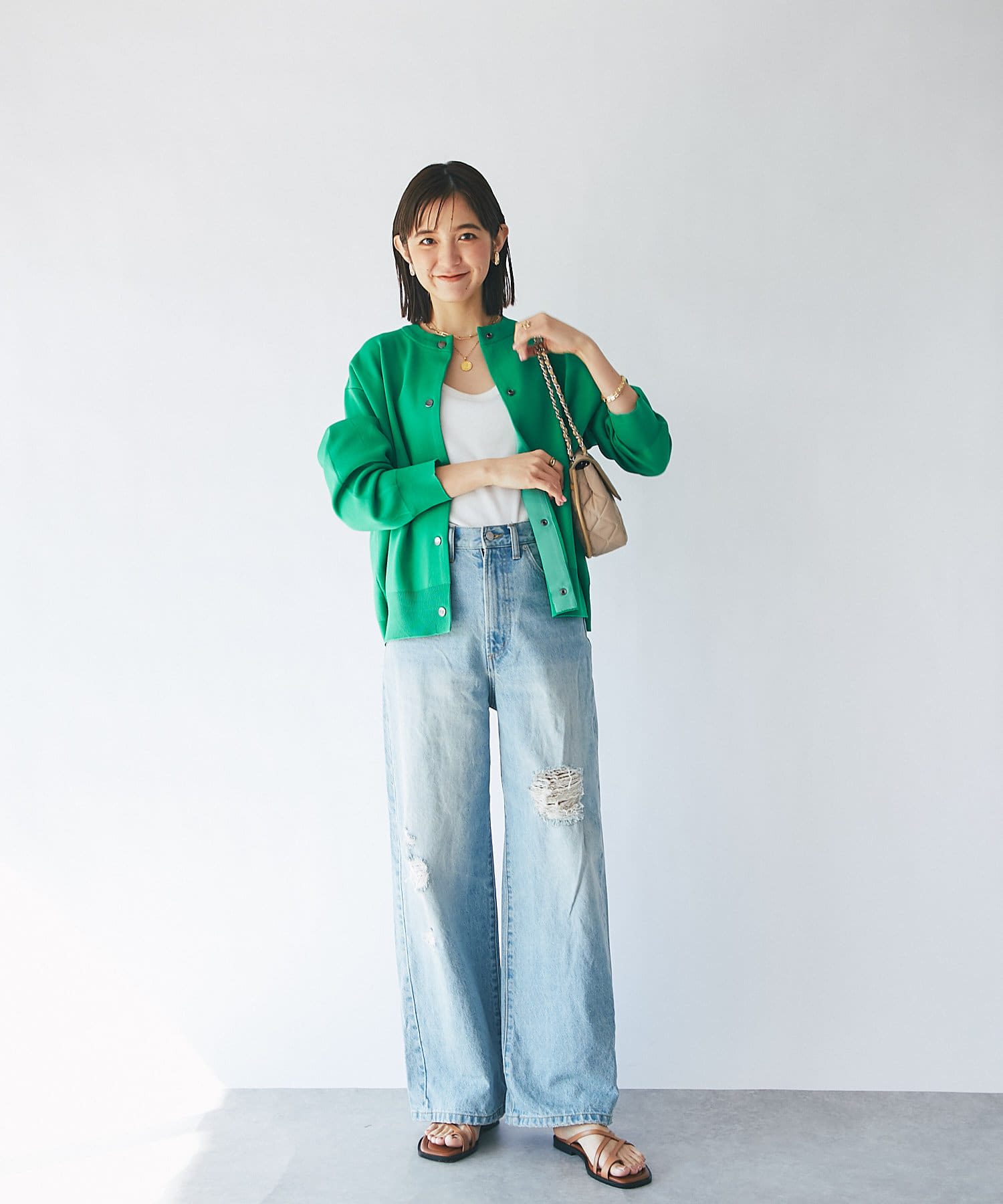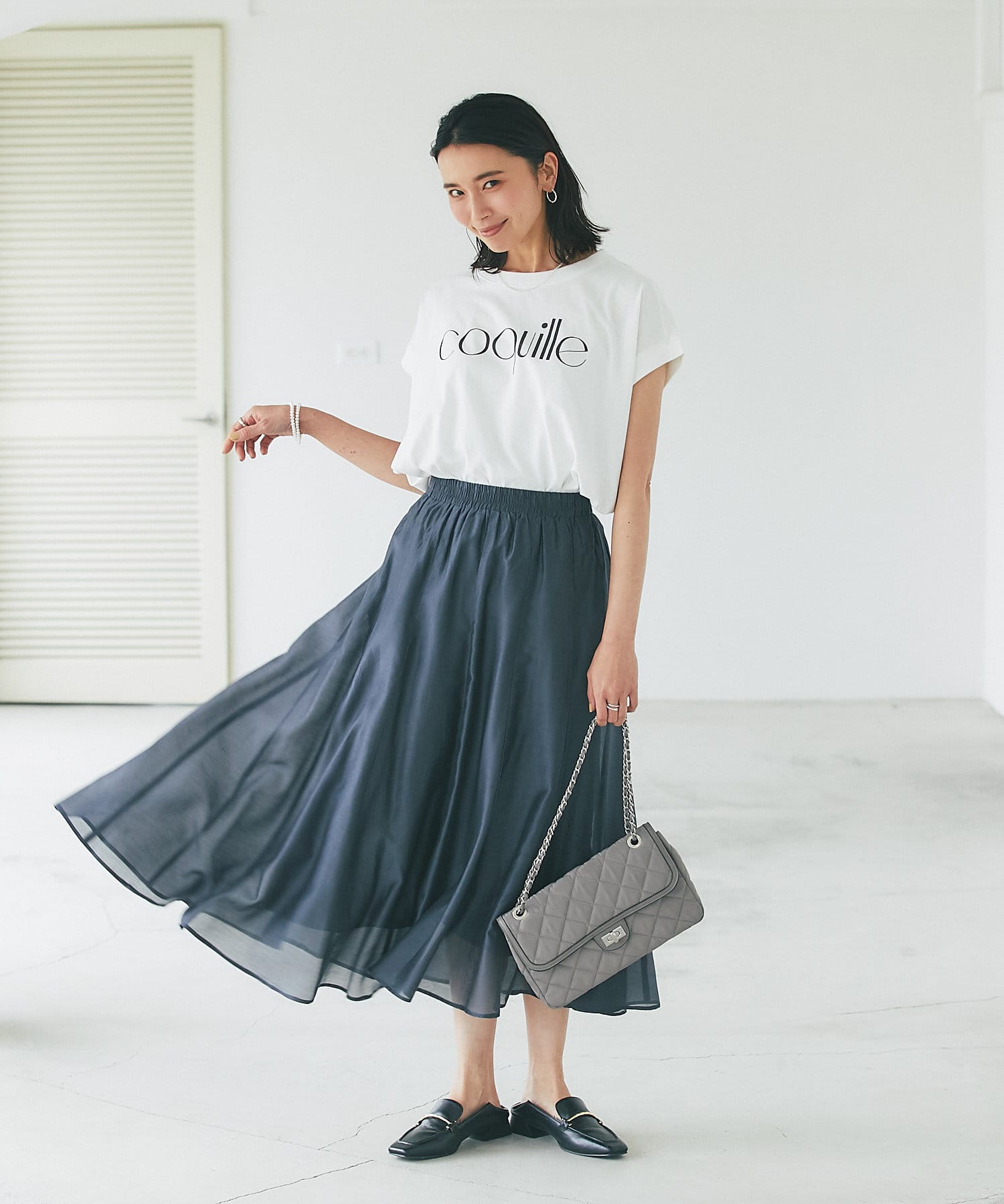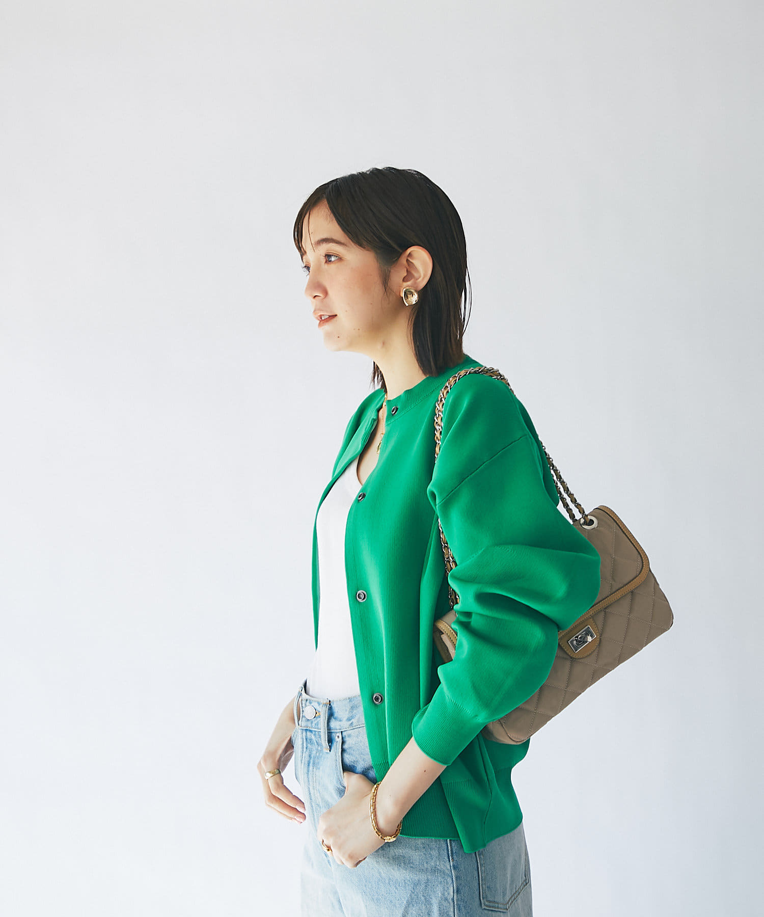 女性らしい雰囲気のチェーンバッグは、小さすぎないサイズ感で収納力も◎