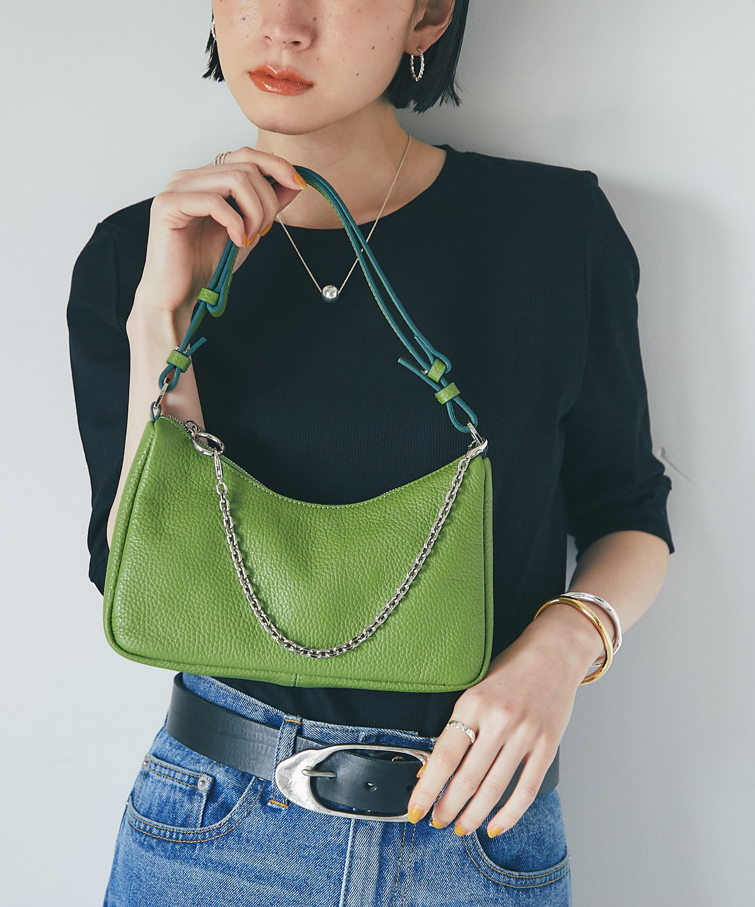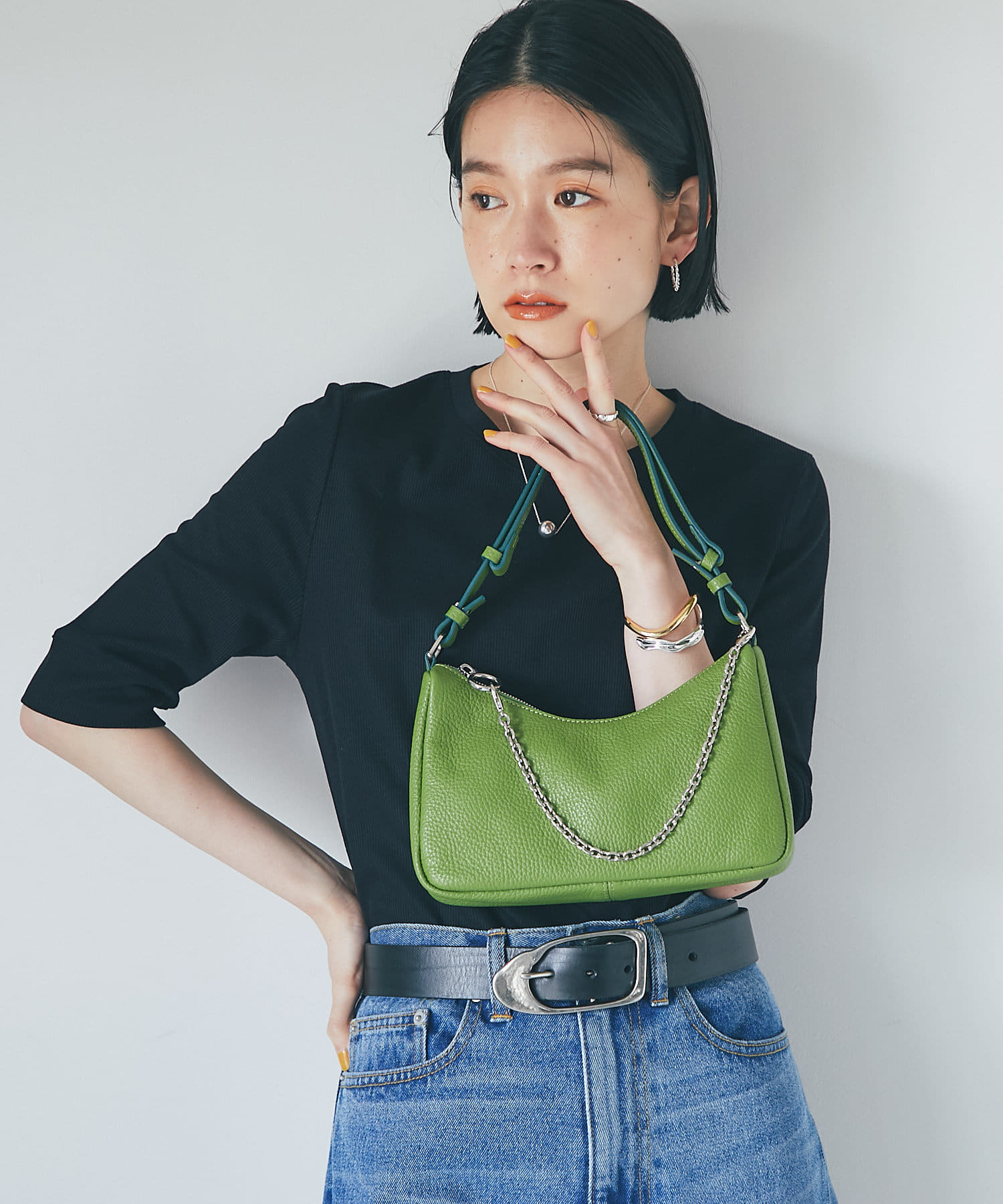 レザーショルダー1本とチェーンショルダー2本がついており、その日のスタイリングでアレンジいただくことができます。