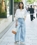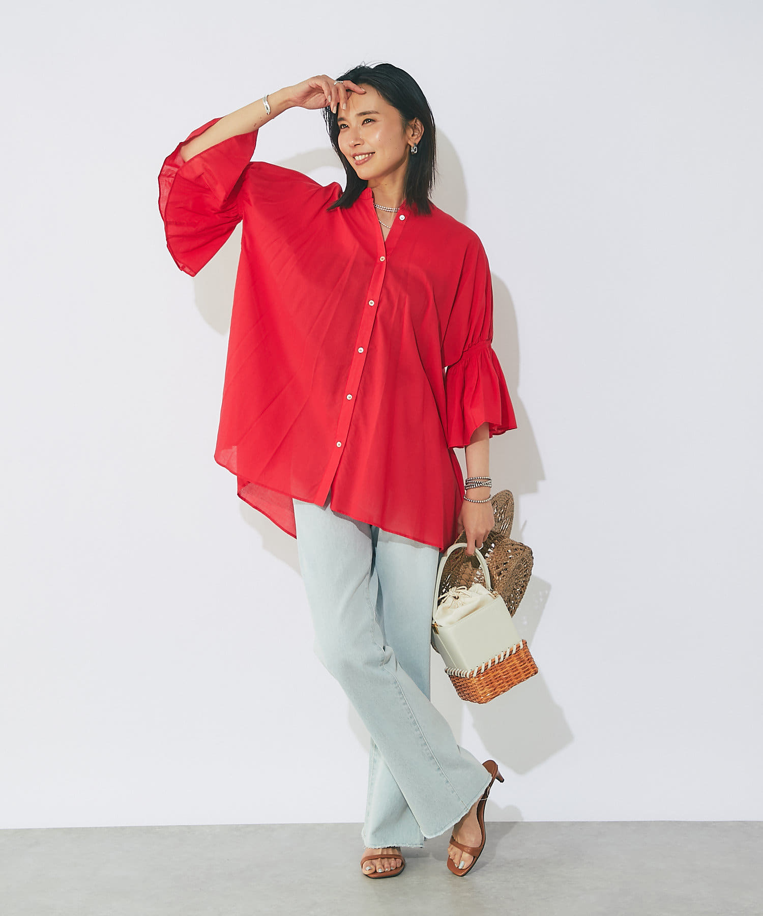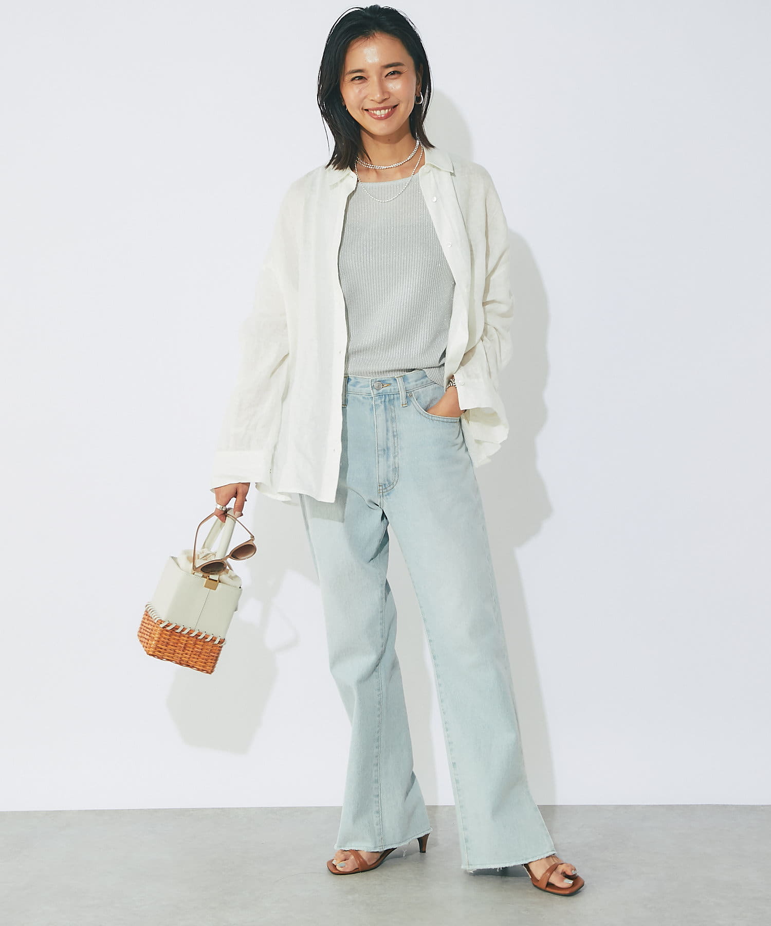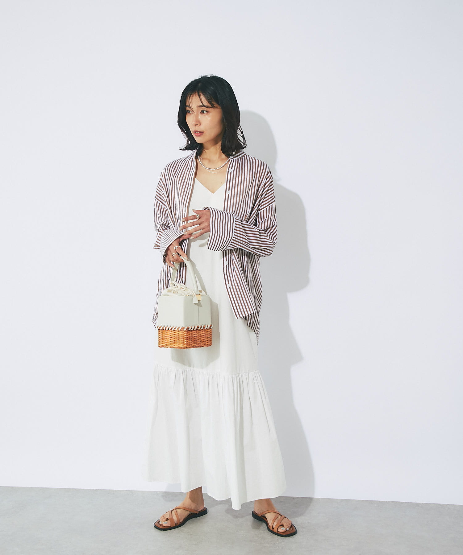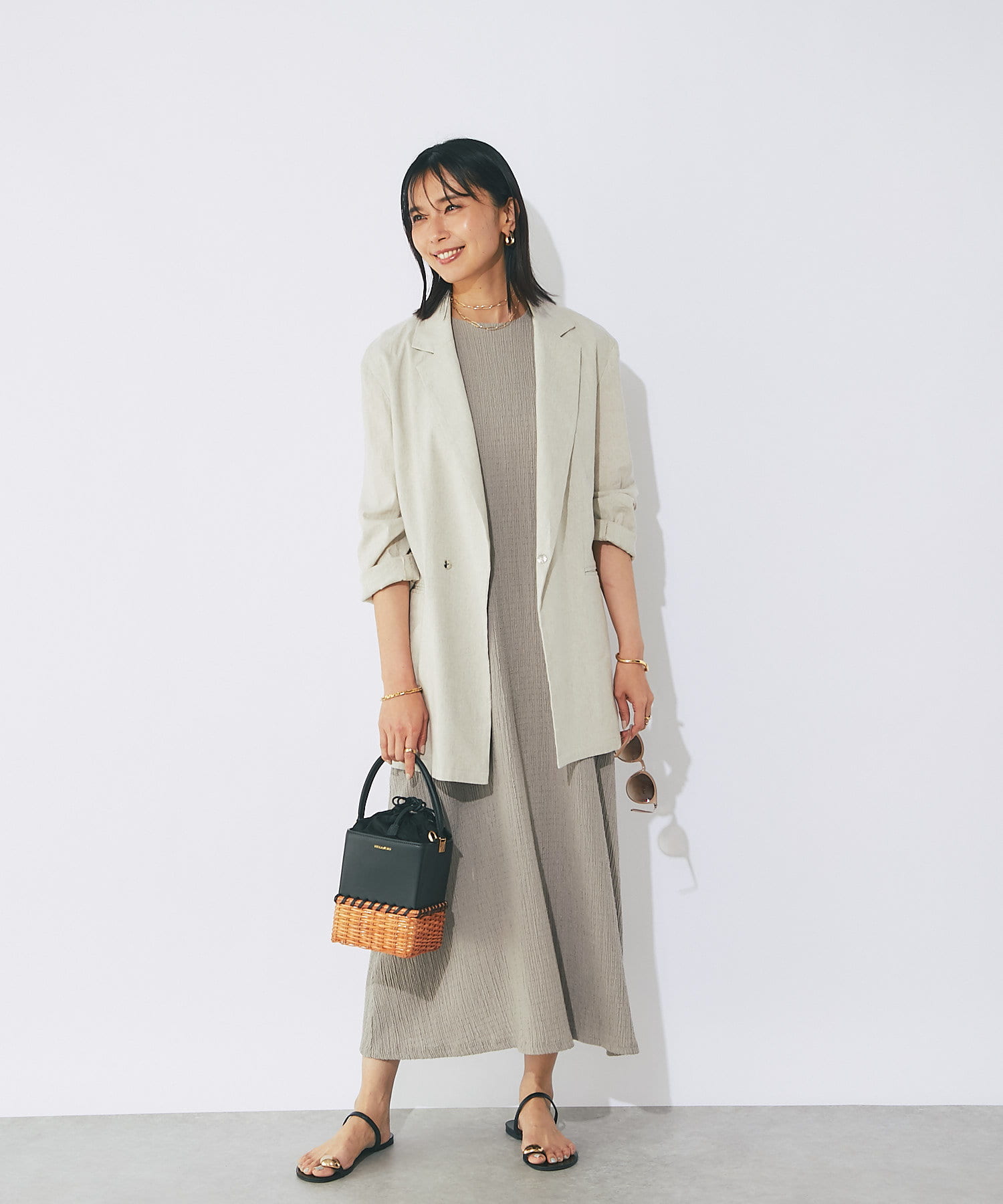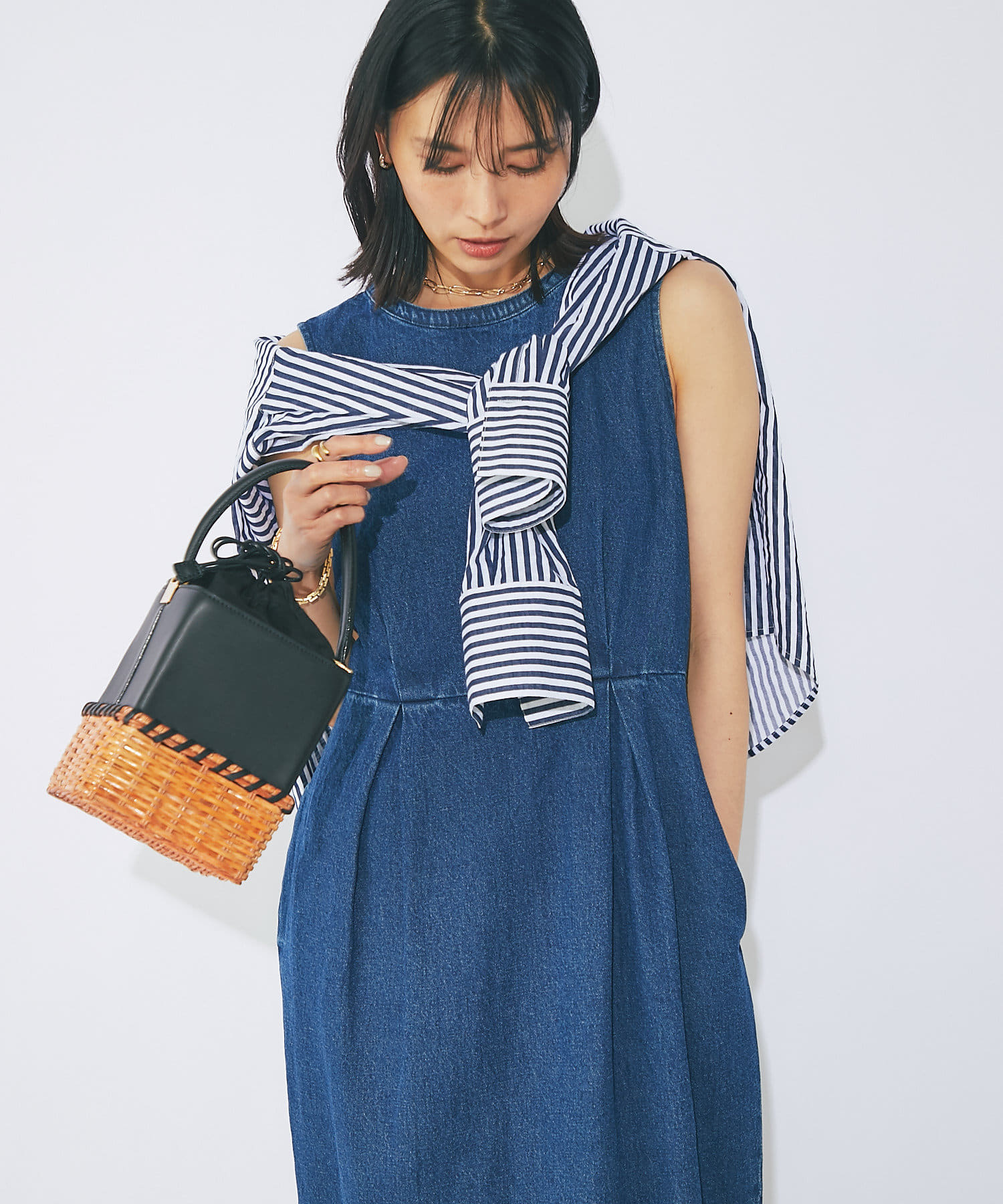 ラタン素材とレザーがミックスなのできちんとした印象のコーディネートにもおすすめ。