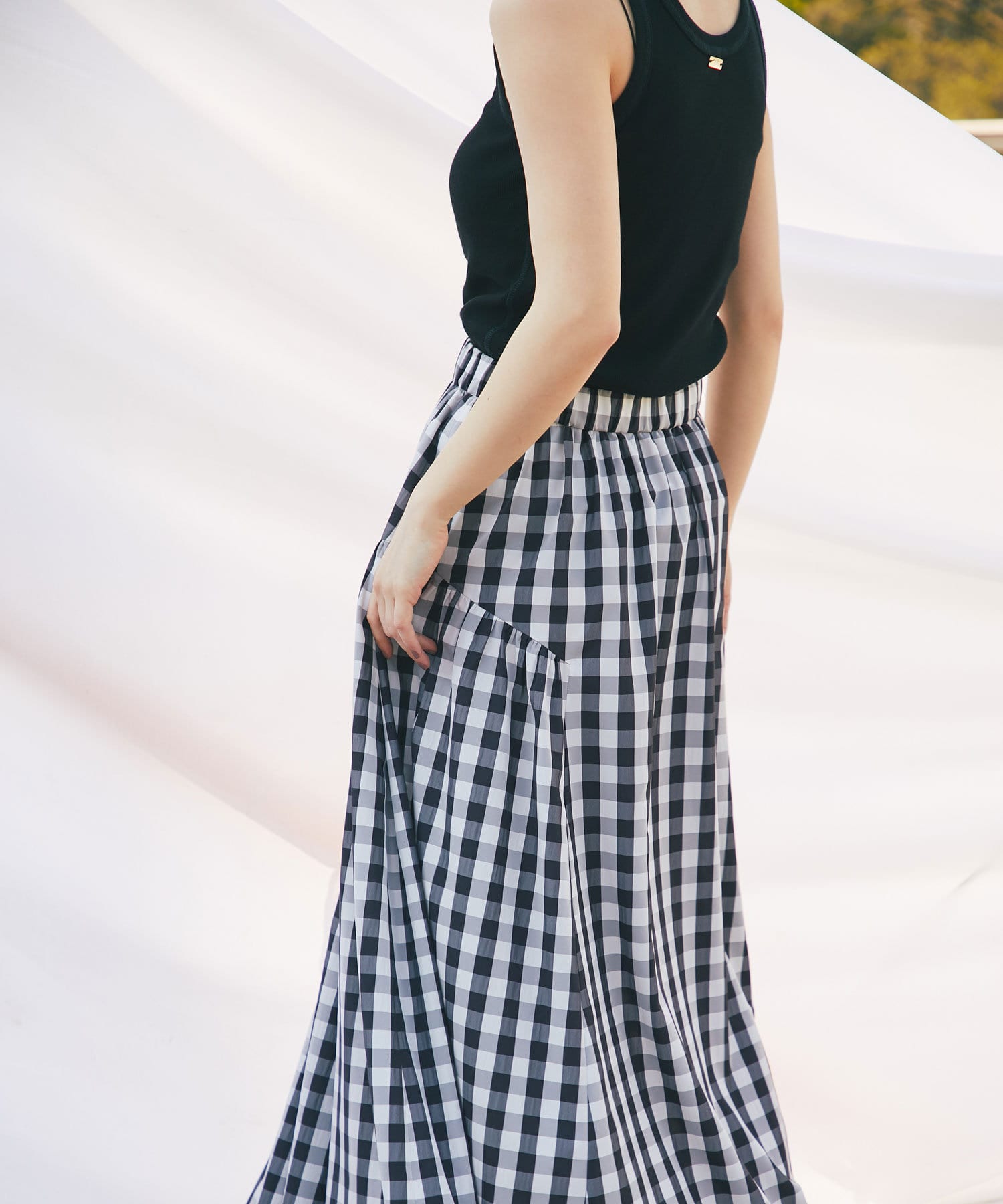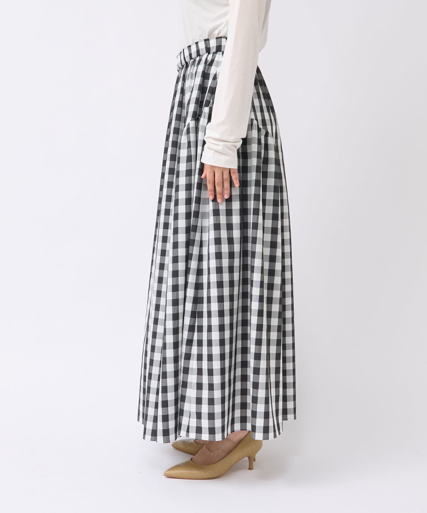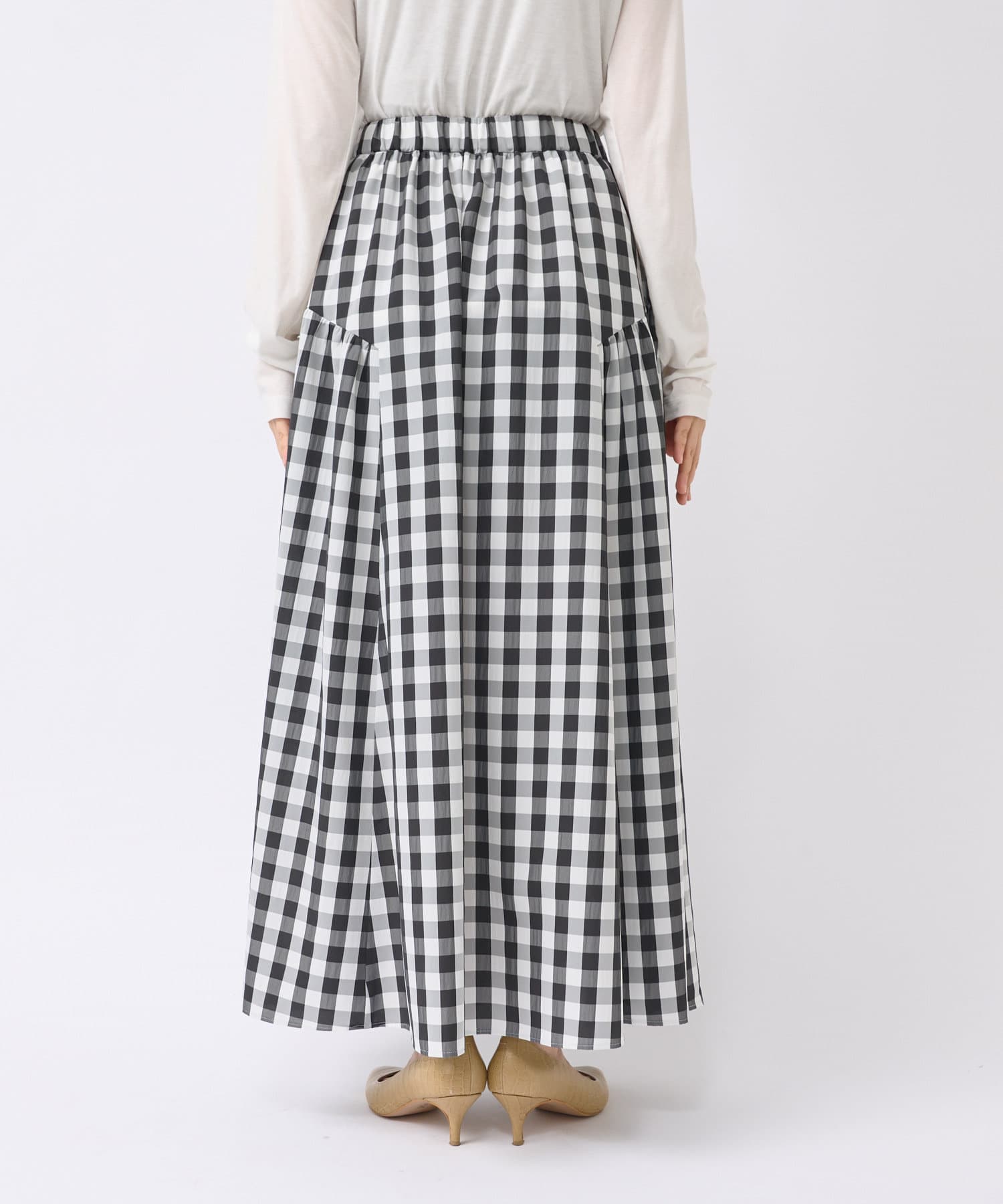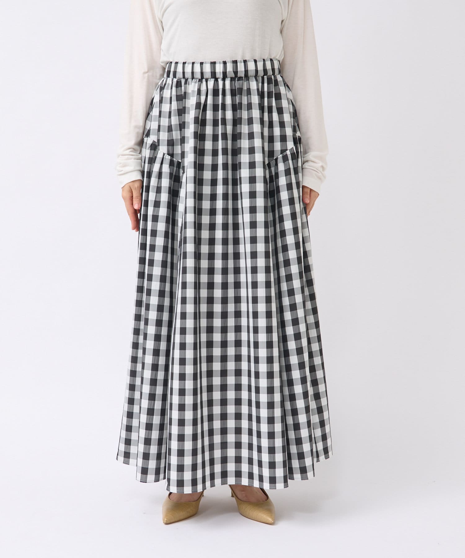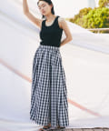 ギンガムチェックがシーズンムードを高めるロングスカート。
