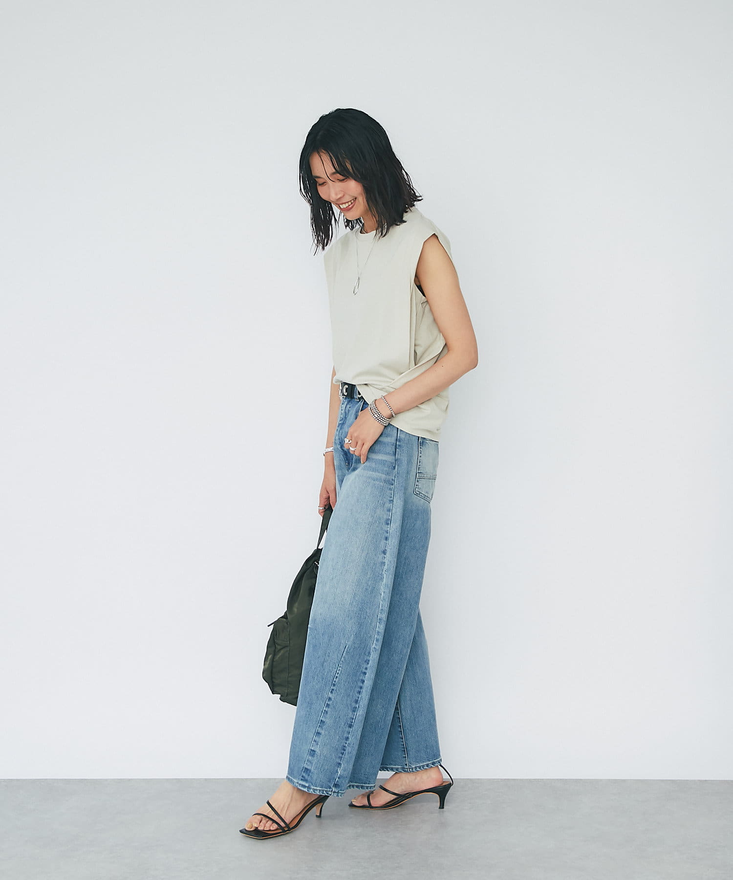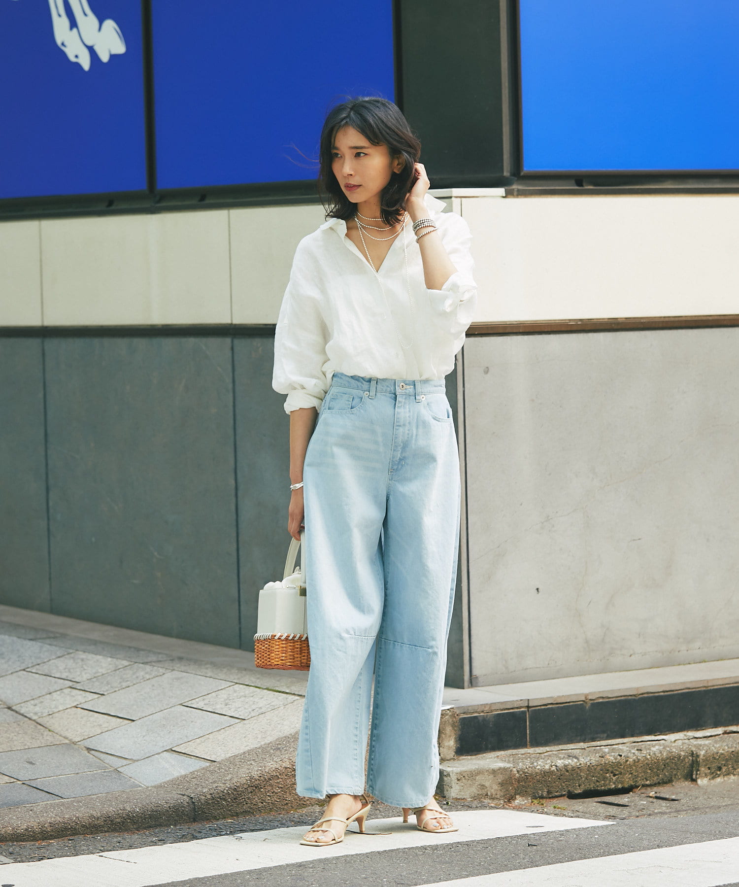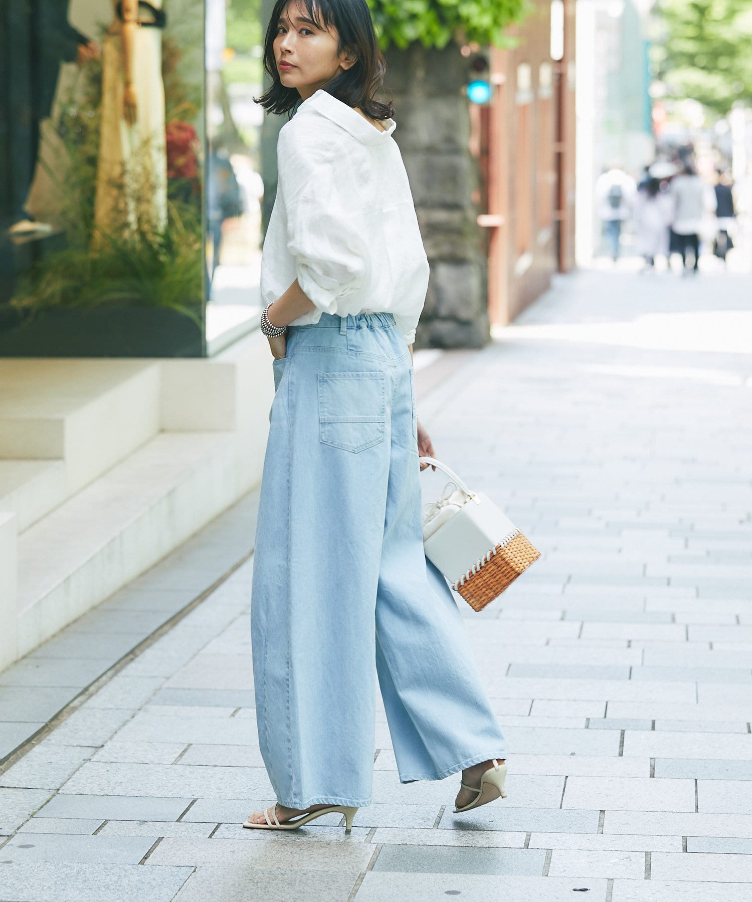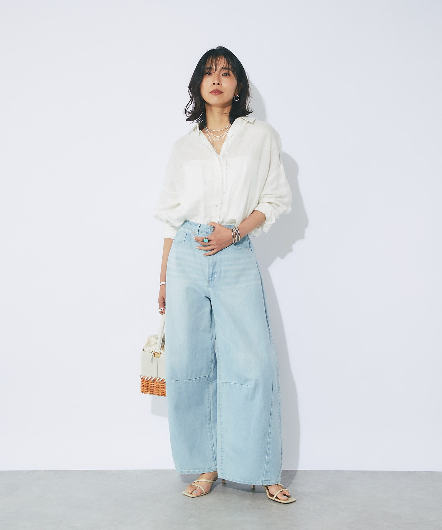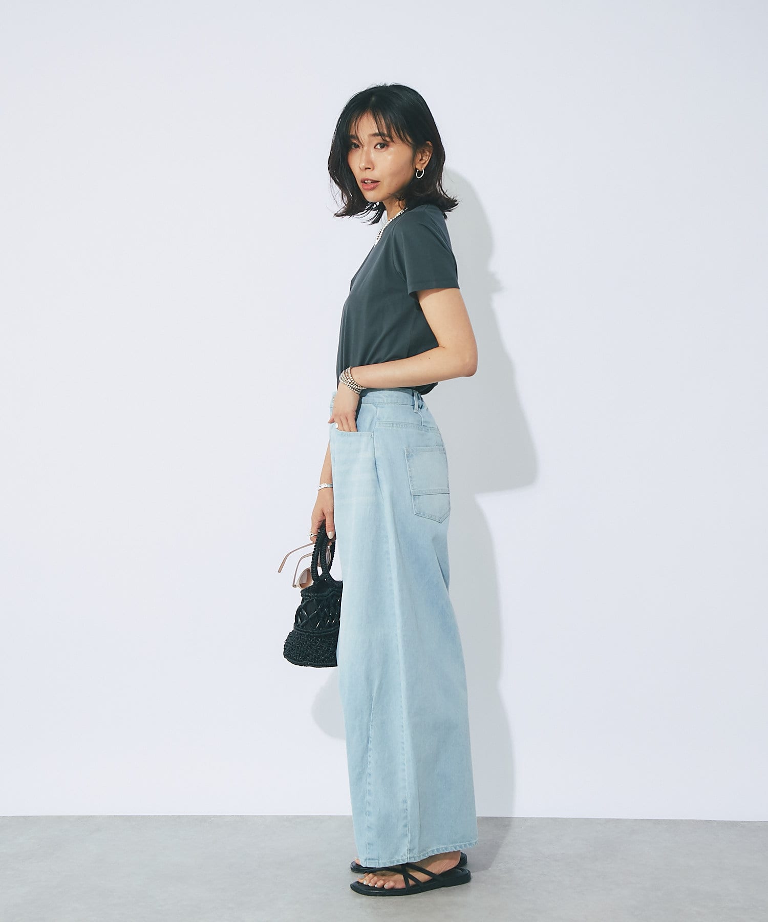 Tシャツやブラウスなどのシンプルなトップスとのスタイリングも、ワンランク上のデニムコーデが楽しめる1着です。