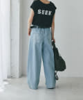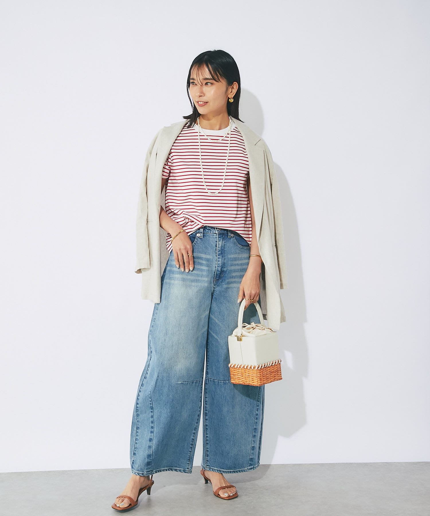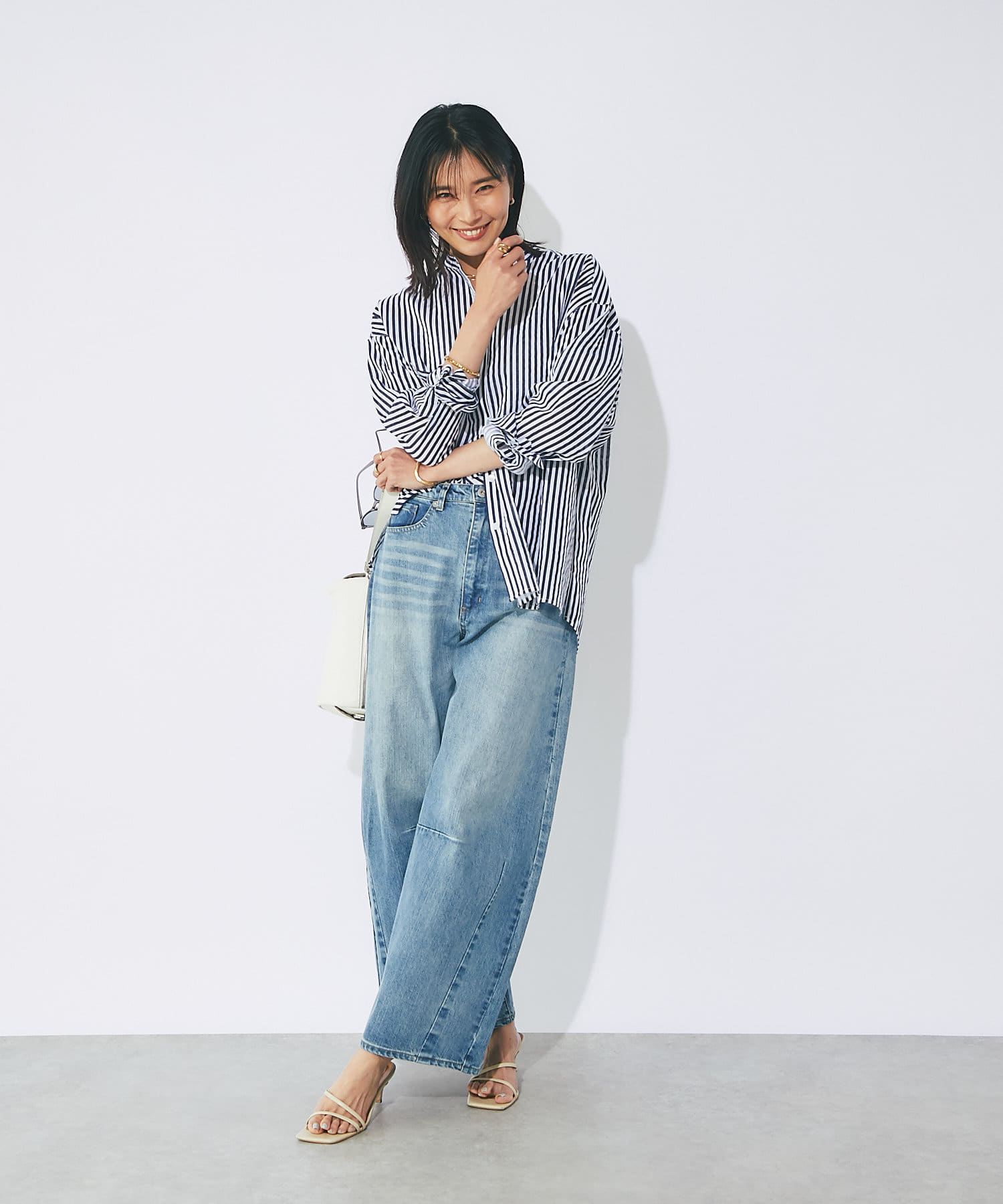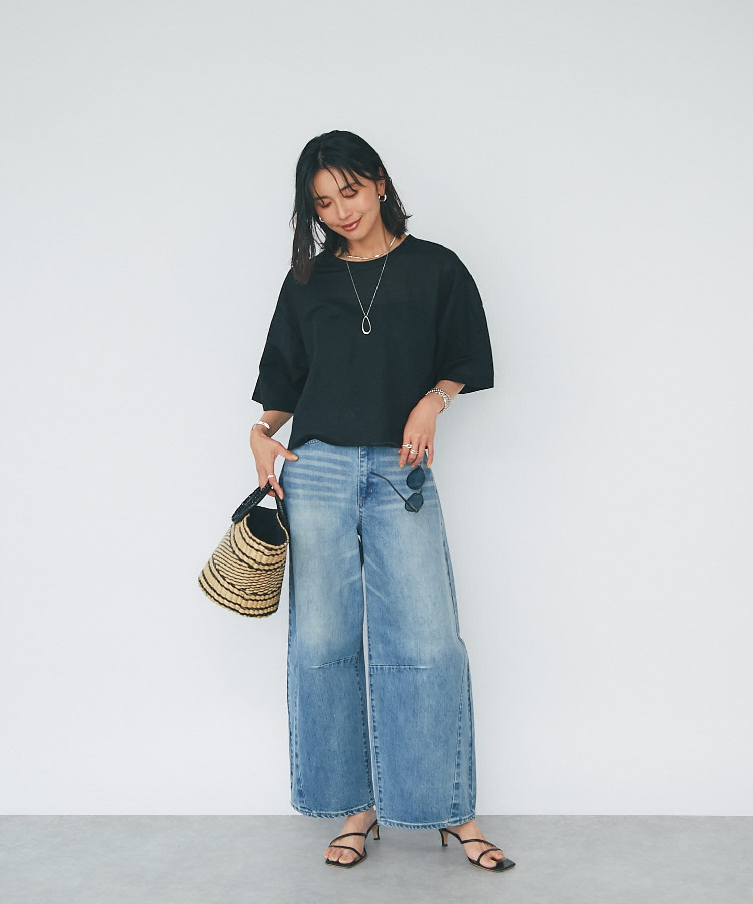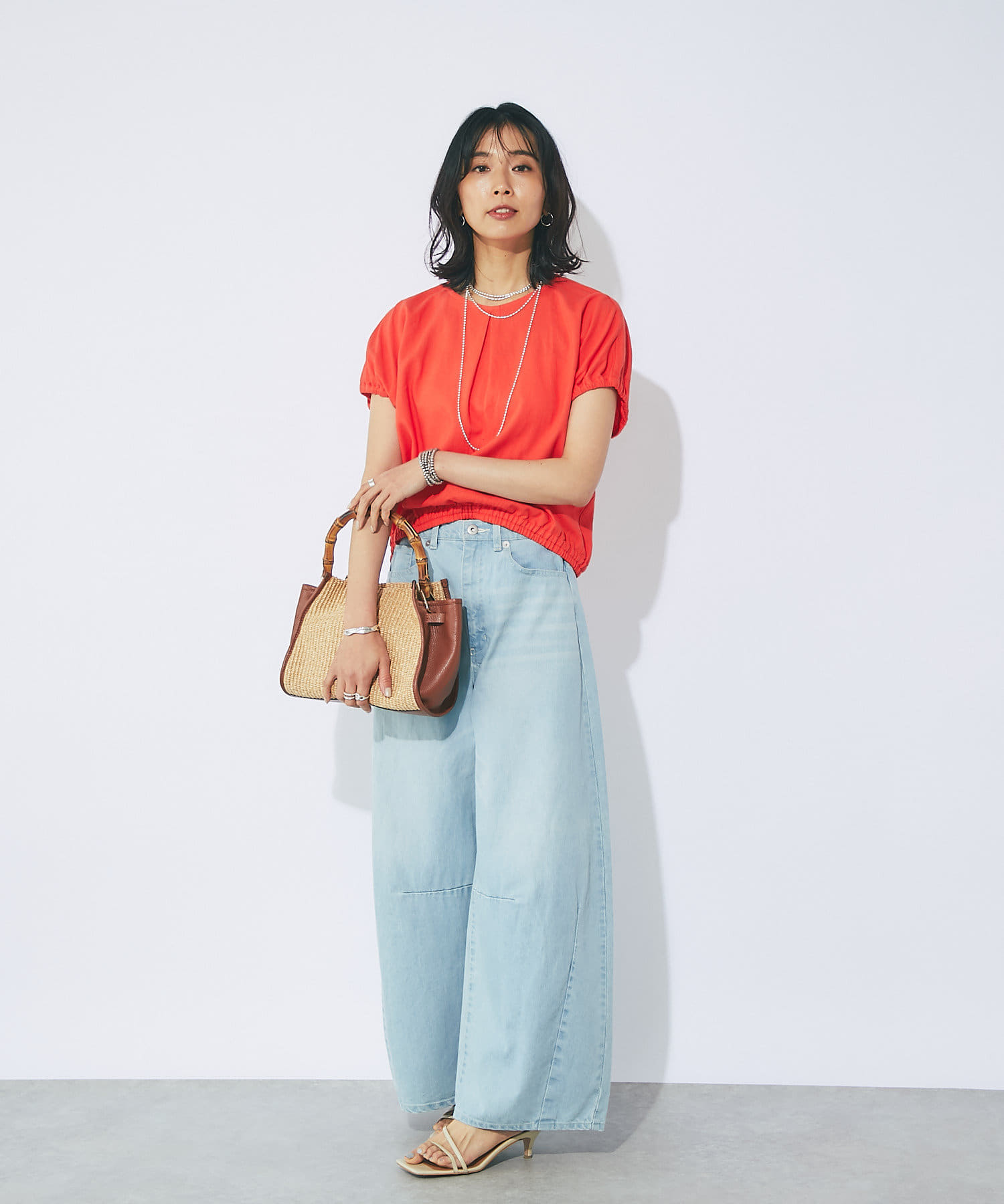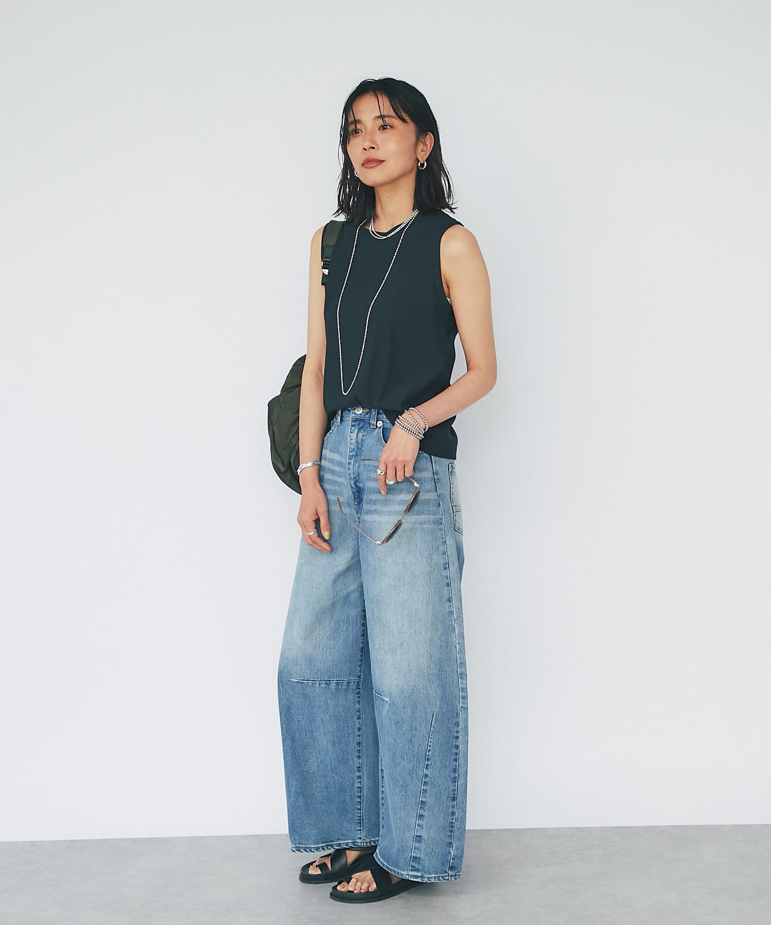 Tシャツやブラウスなどのシンプルなトップスとのスタイリングも、ワンランク上のデニムコーデが楽しめる1着です。
