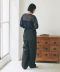 カジュアル要素が強くなるのが気になる方は、やや透け感のあるアイテムを合わせることで女性らしさをプラスできます。
