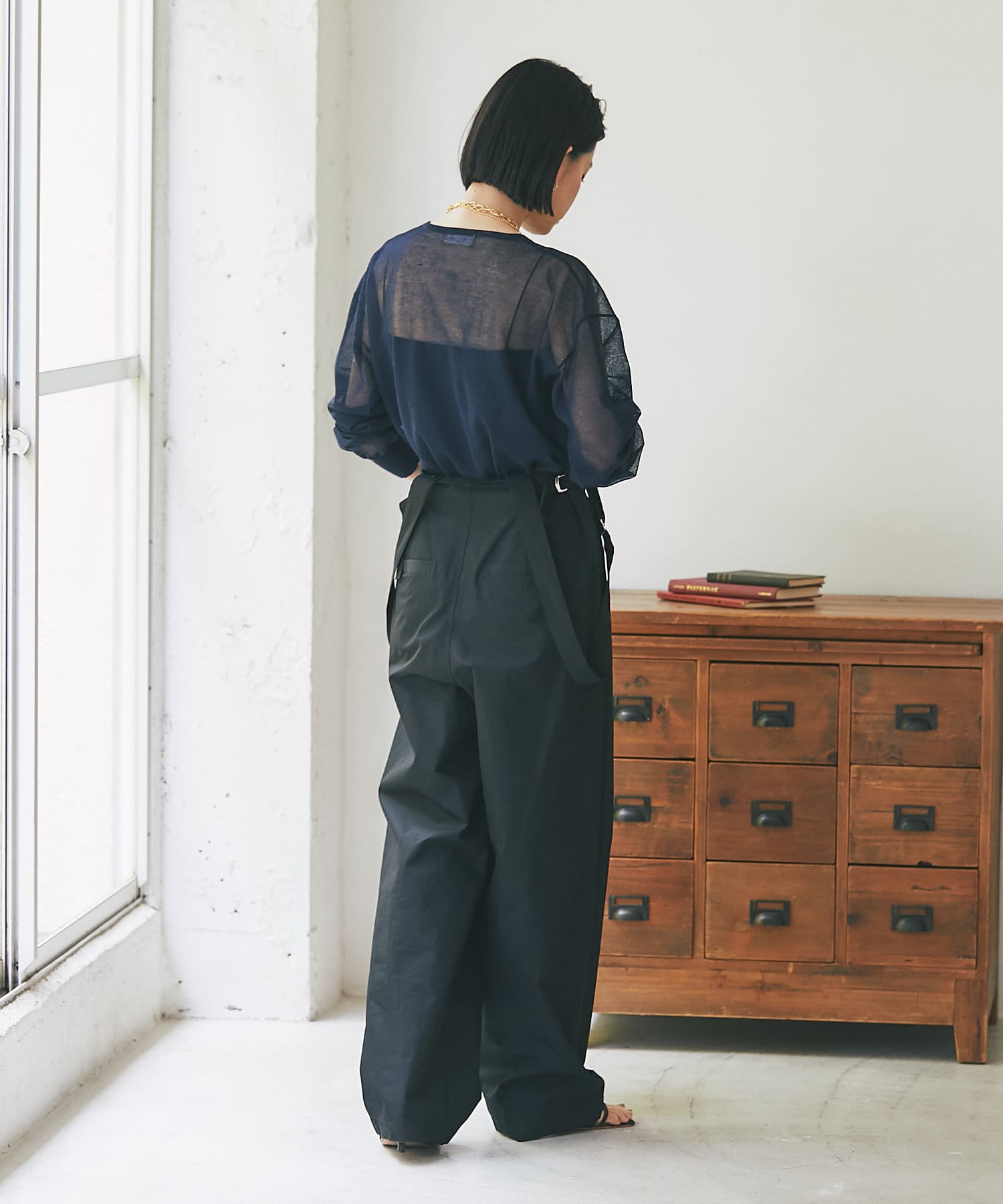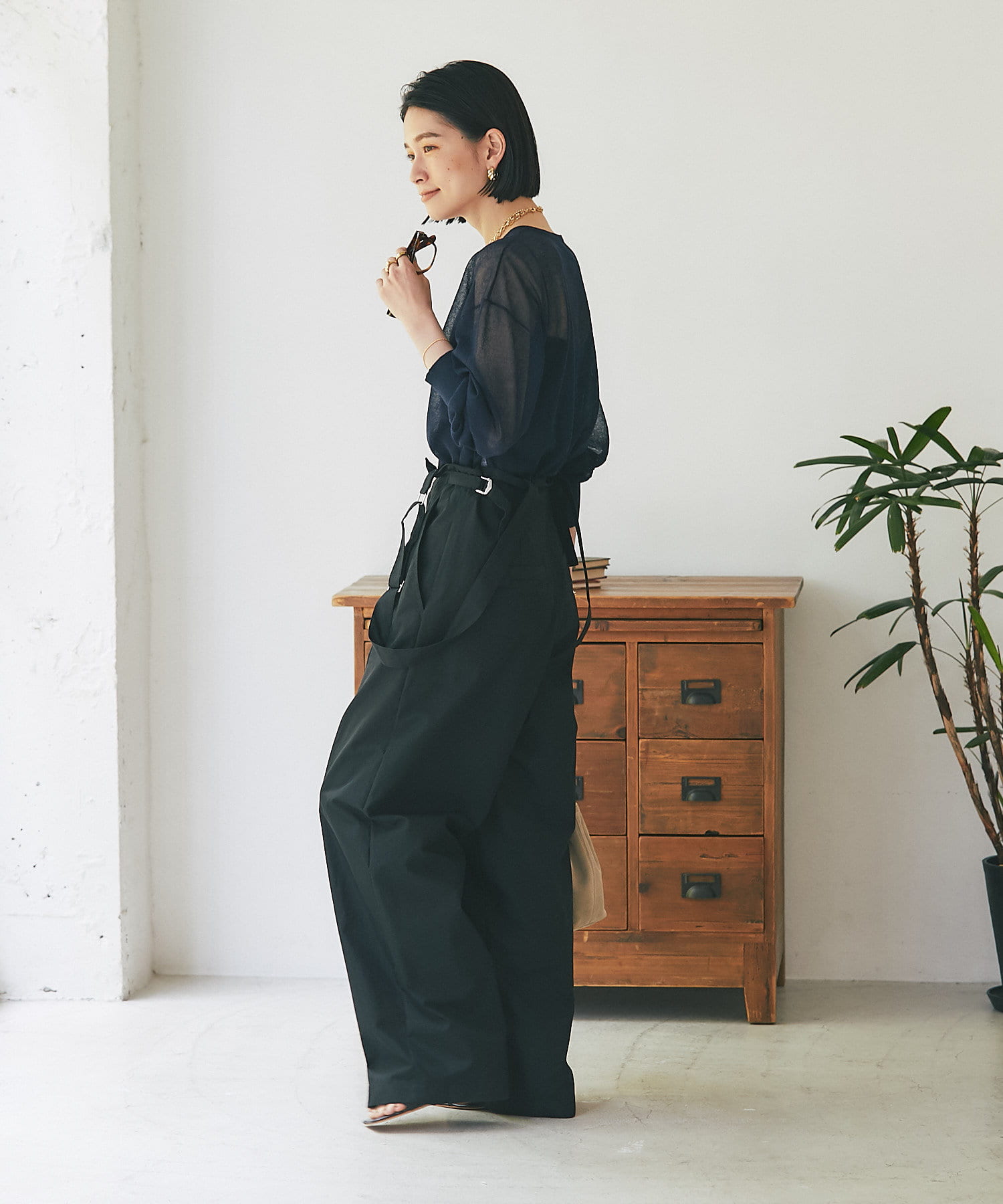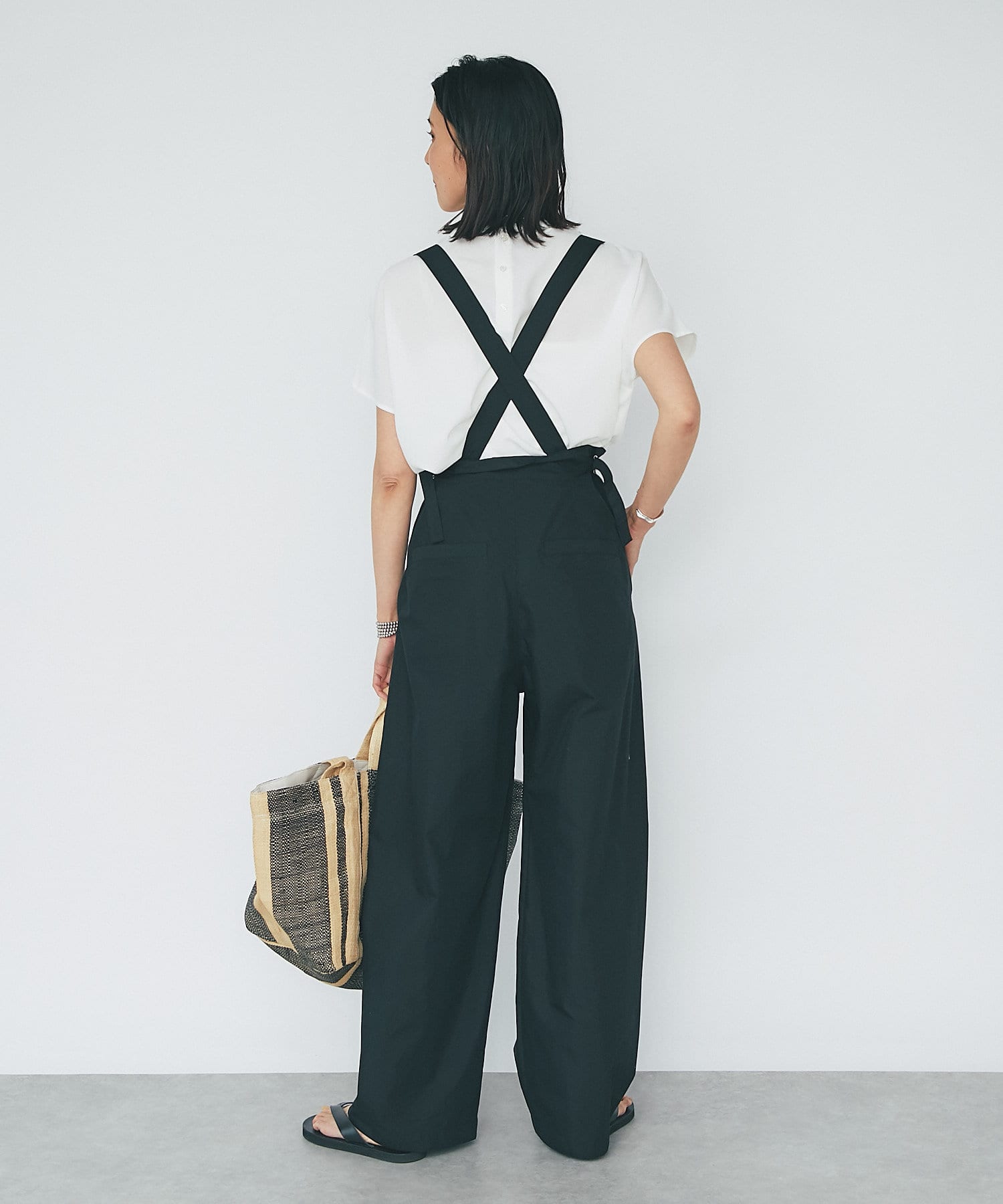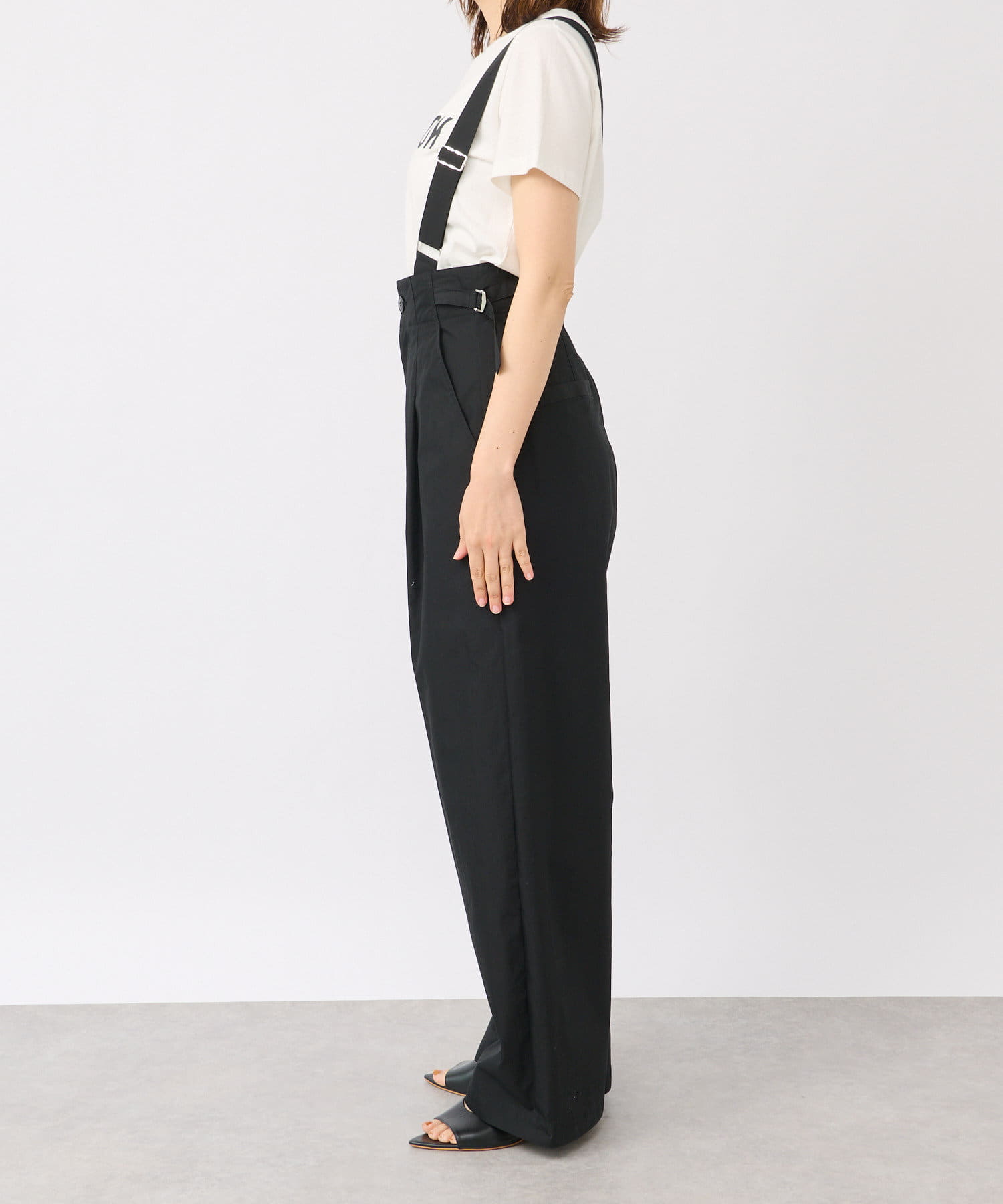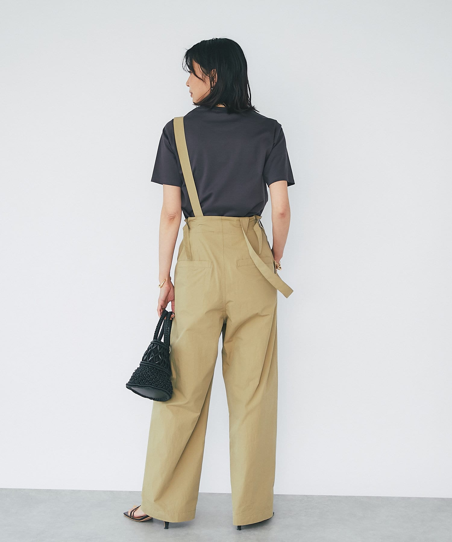サスペンダーがこなれ感をプラスしてくれるワイドパンツ。