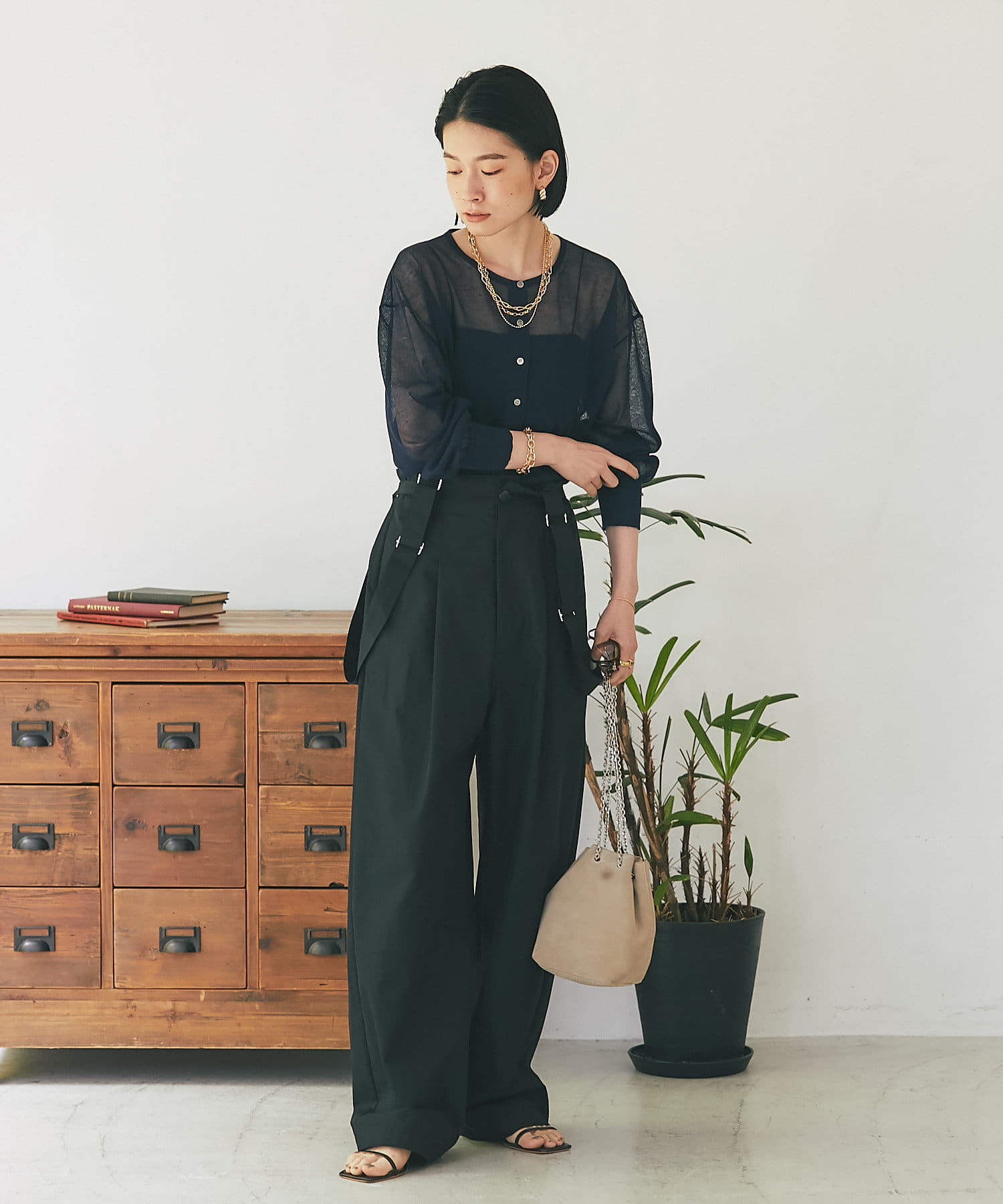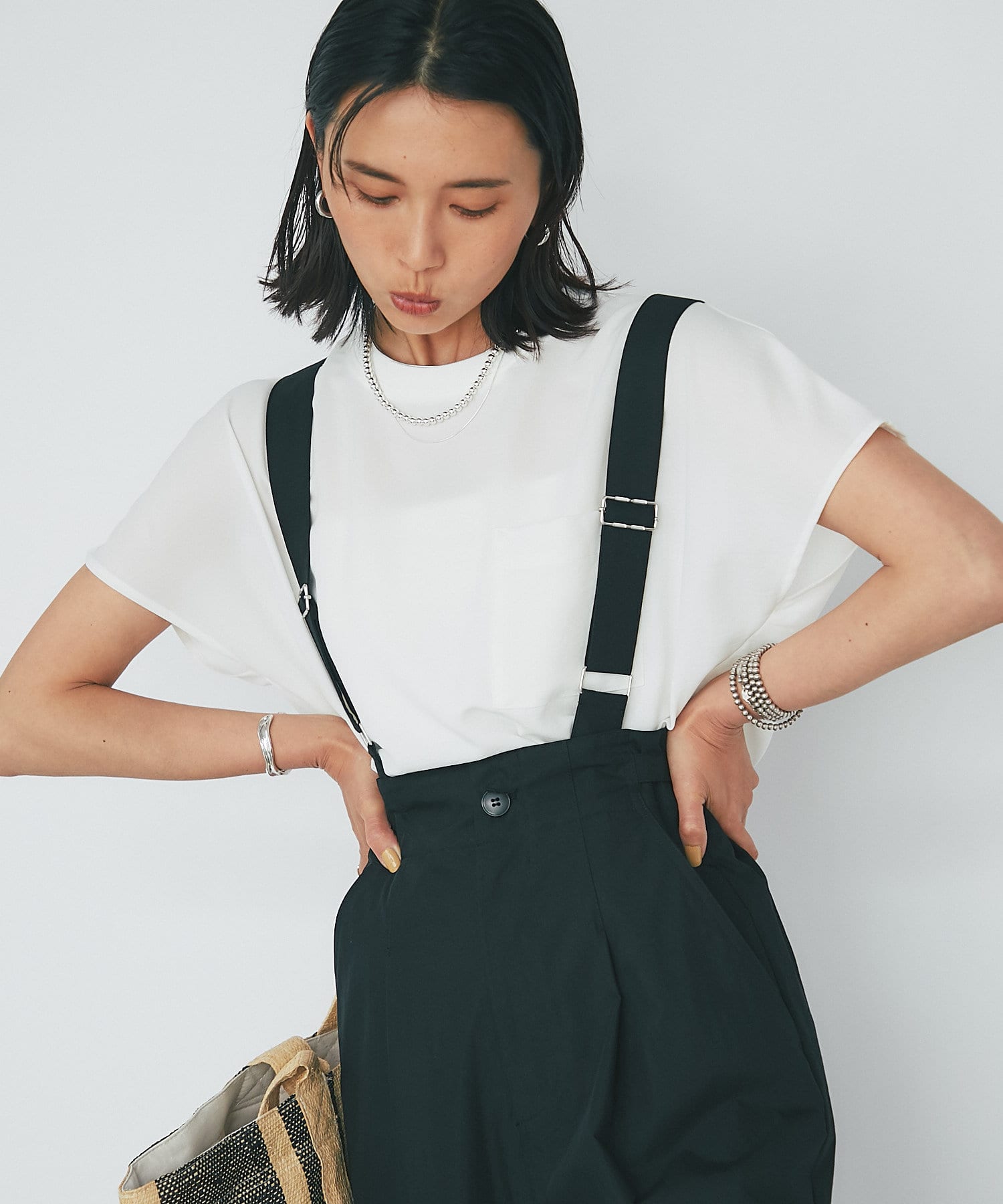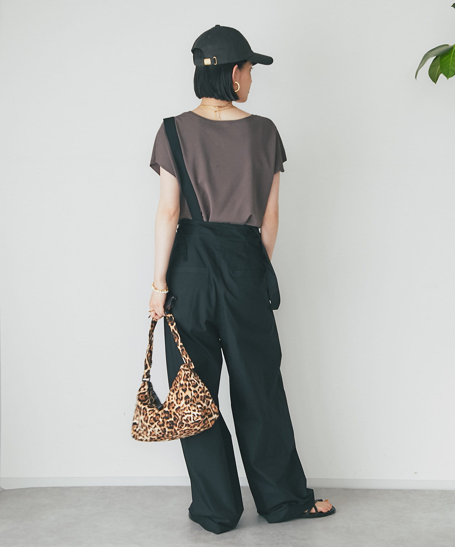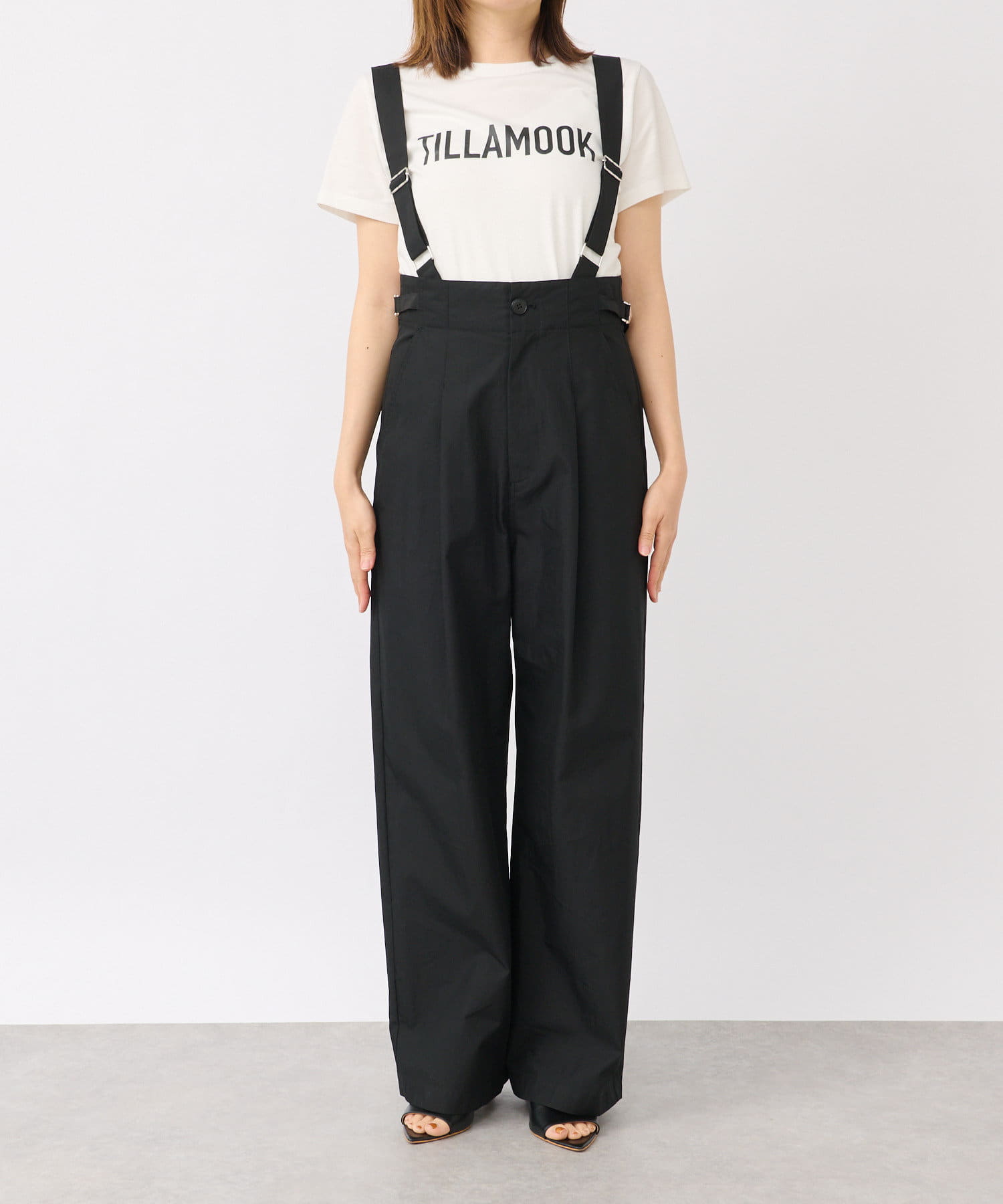 サスペンダーがこなれ感をプラスしてくれるワイドパンツ。