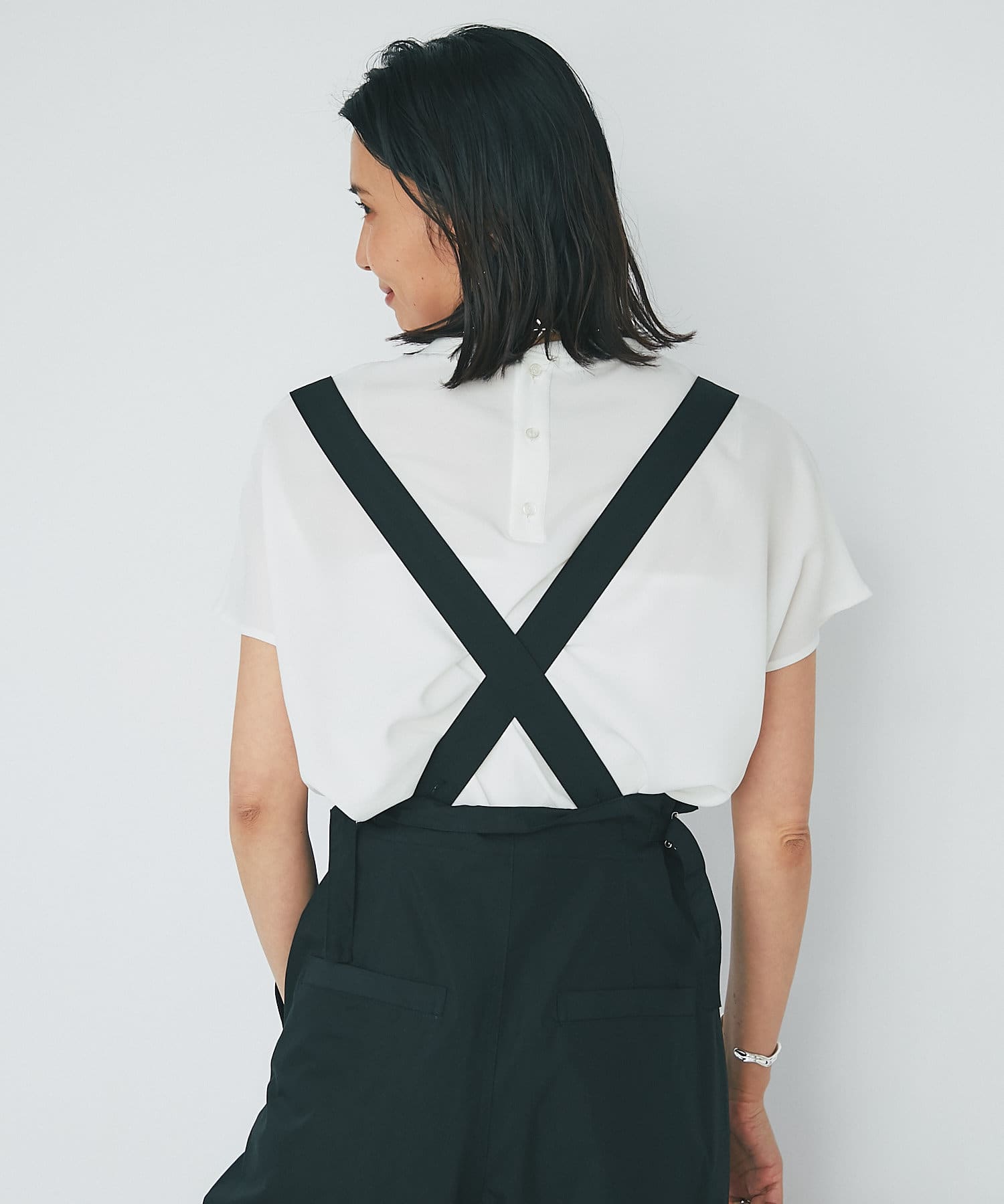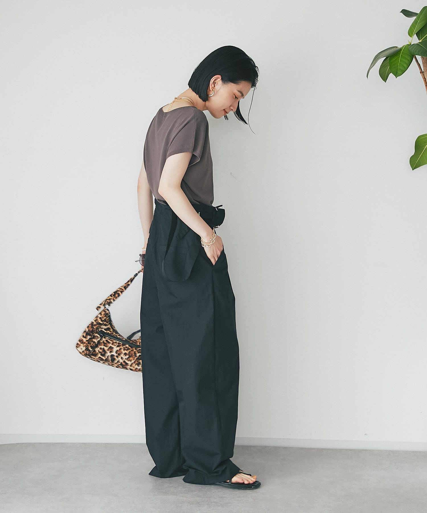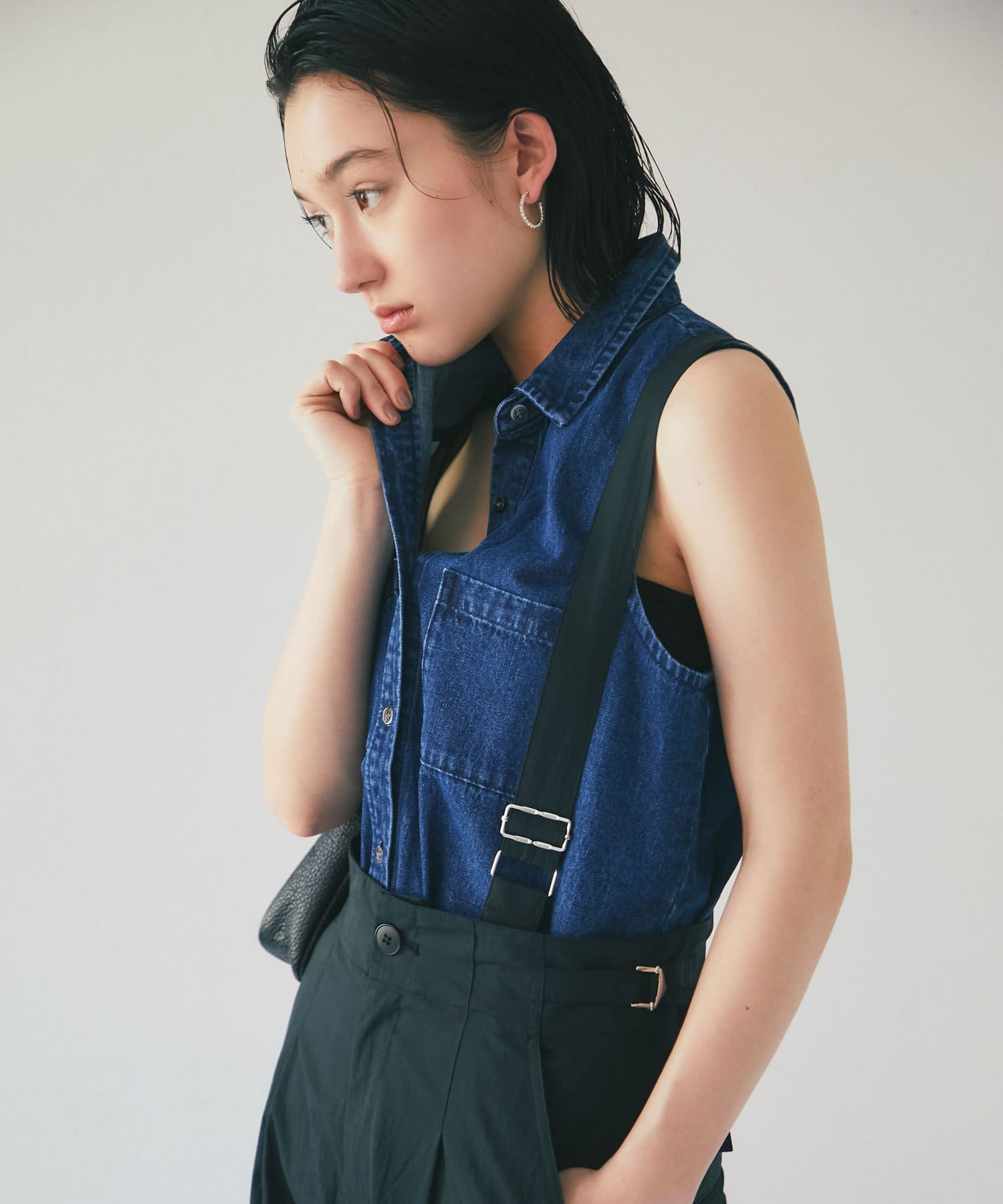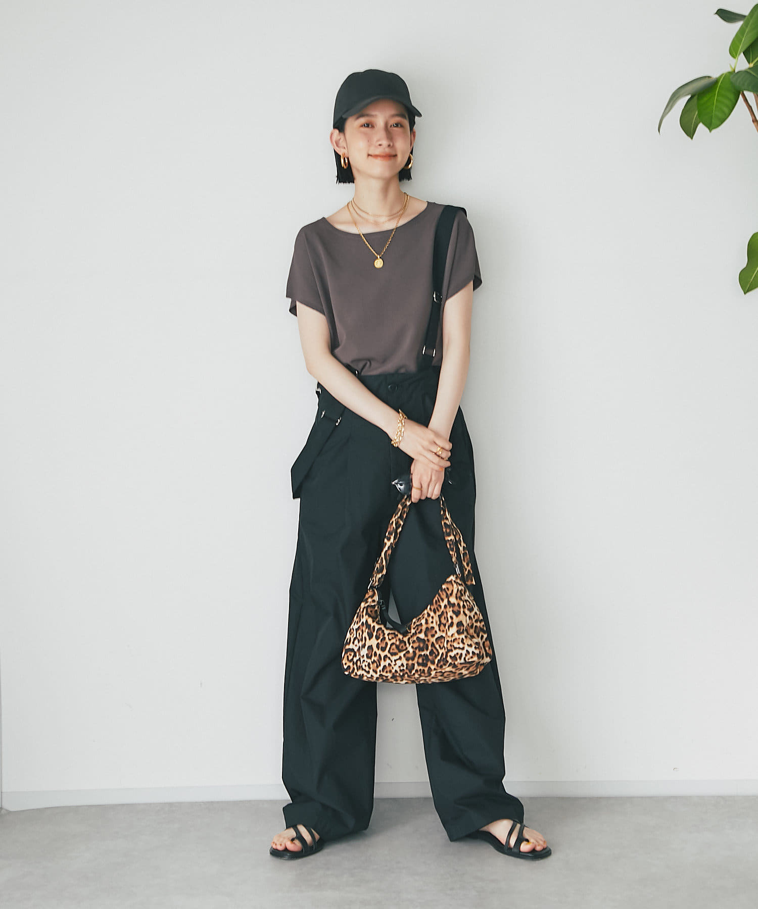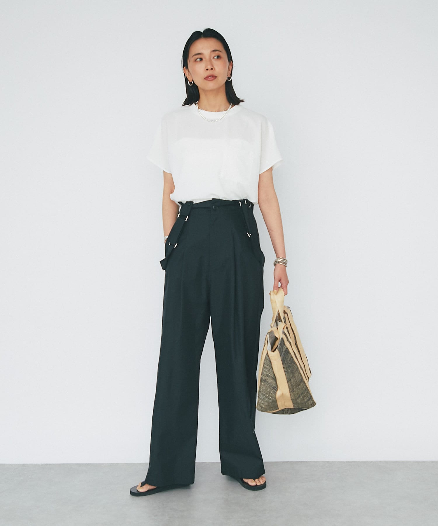 サスペンダーがこなれ感をプラスしてくれるワイドパンツ。