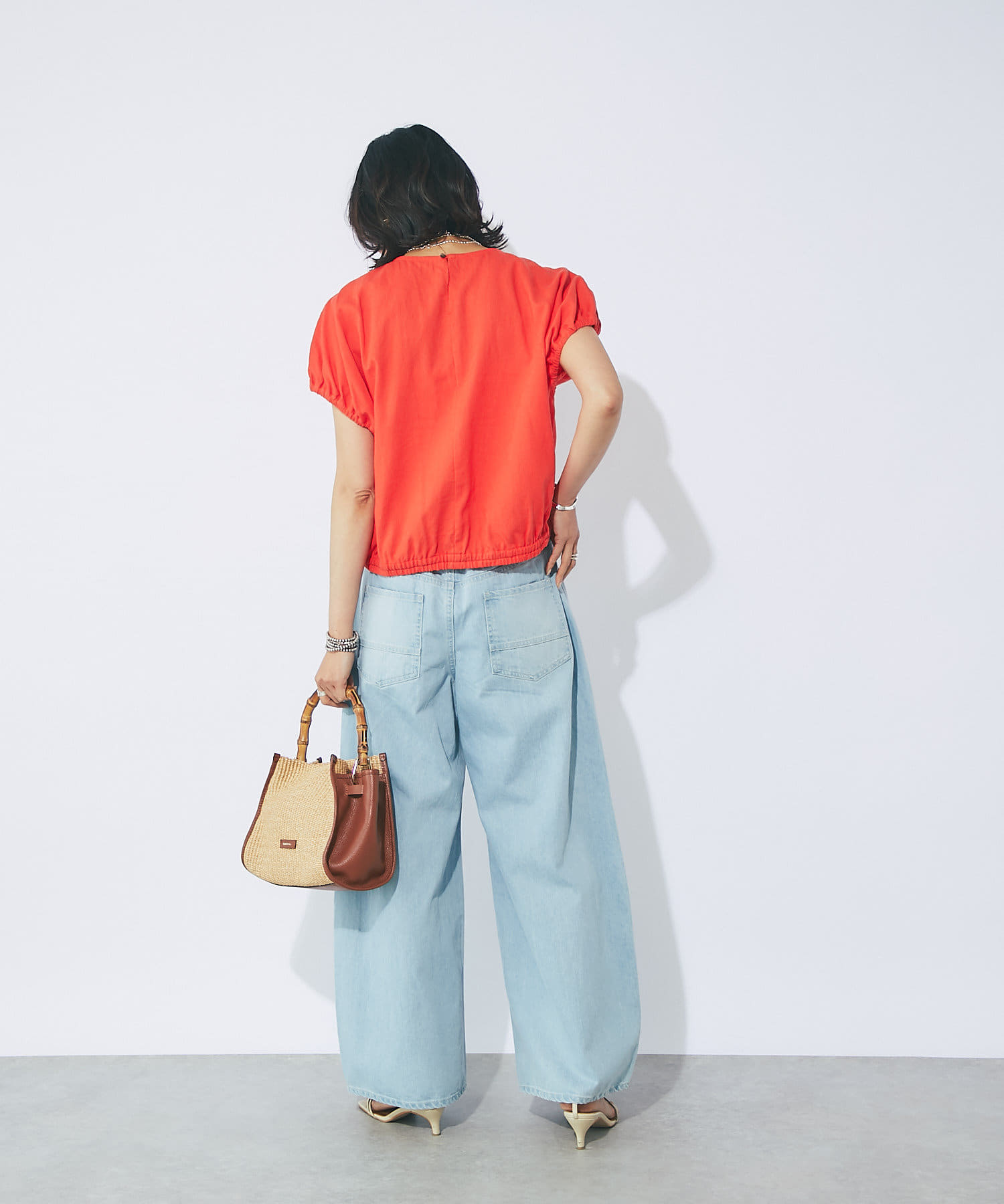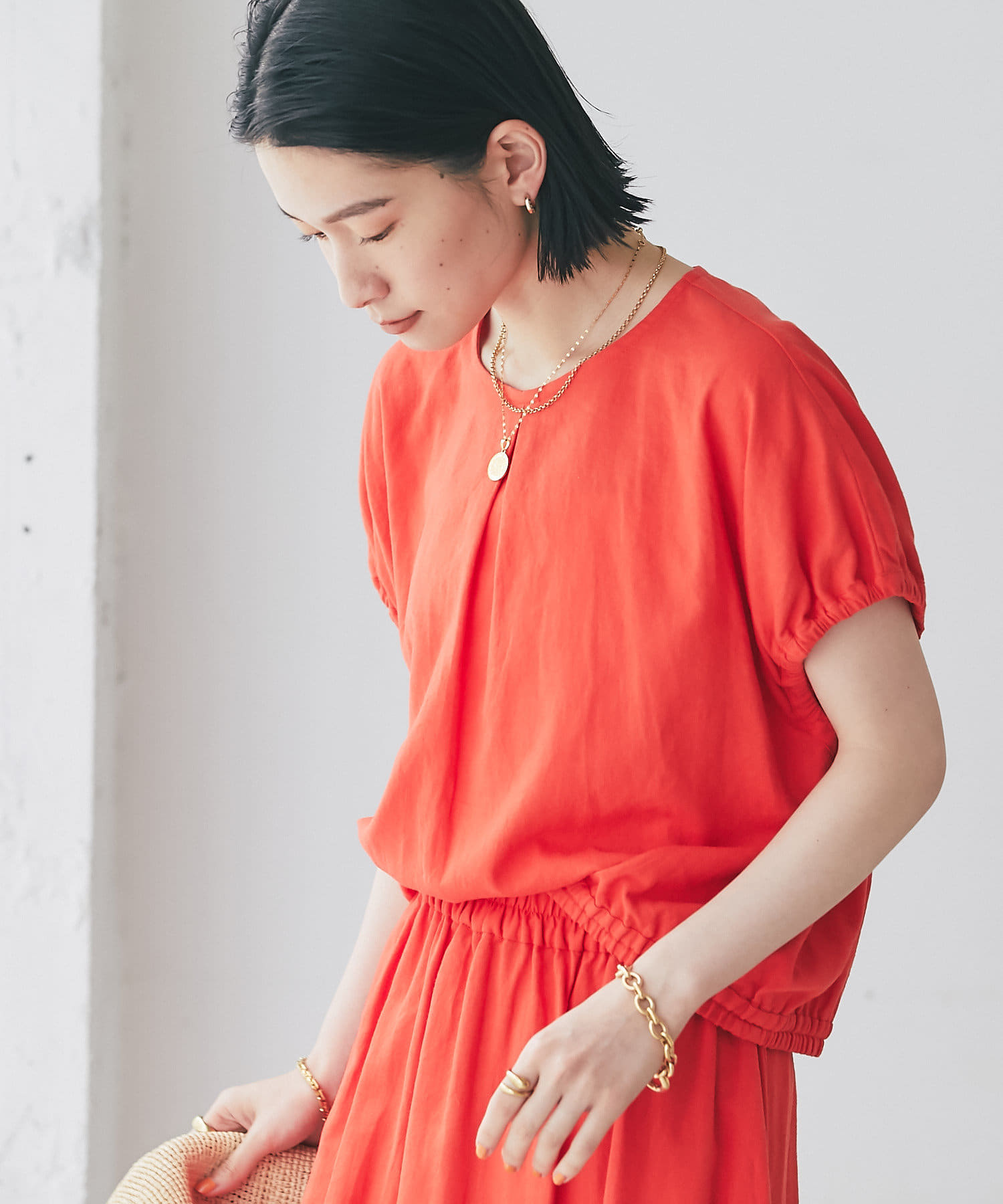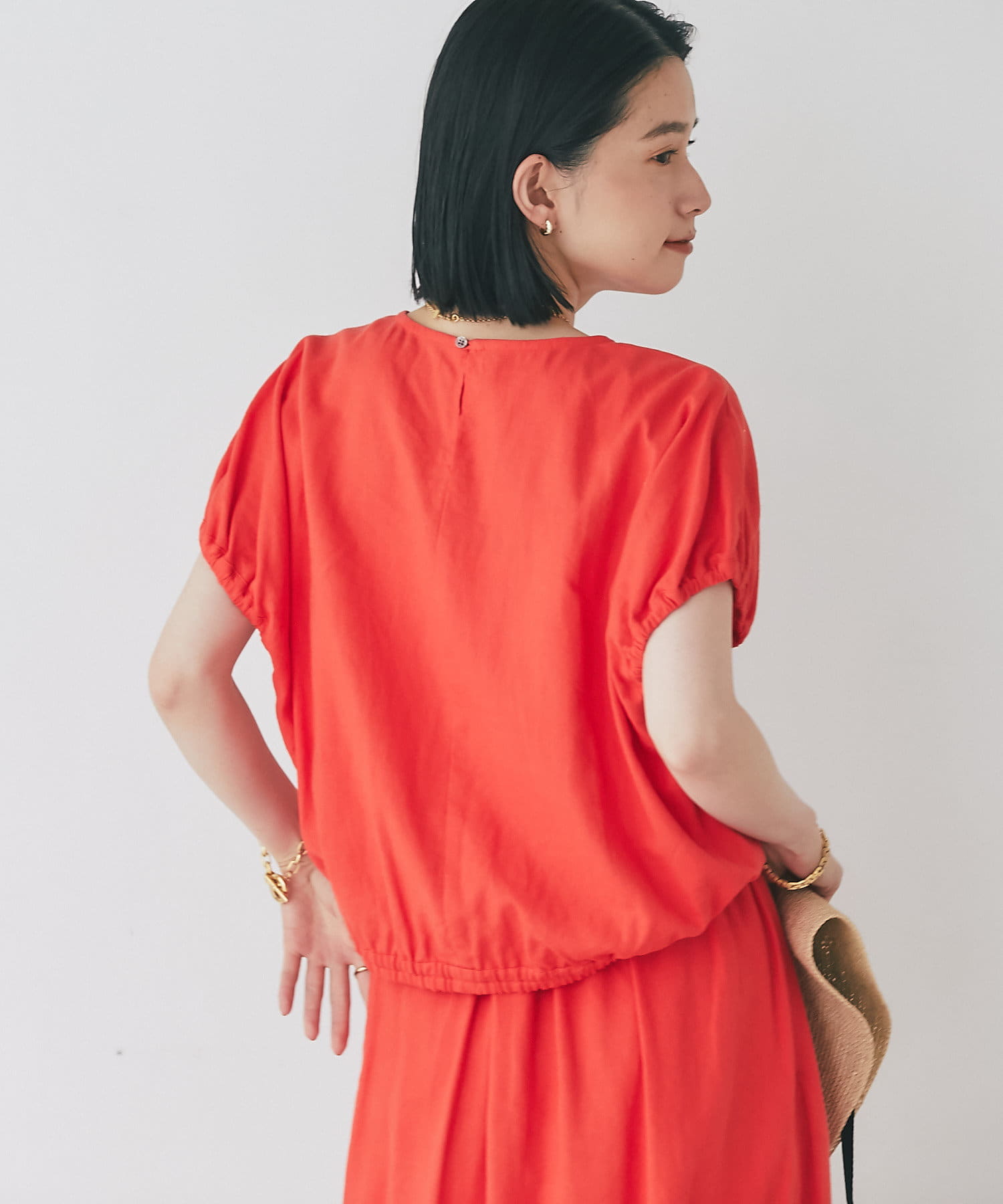 • 夏に最適の麻・レーヨン素材の涼し気なブラウス。