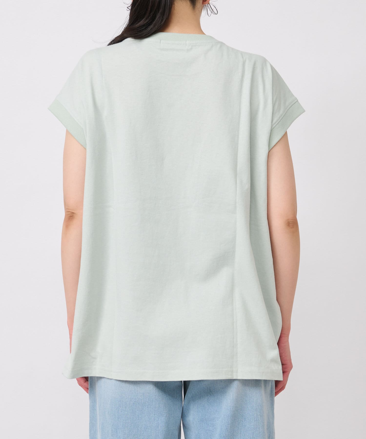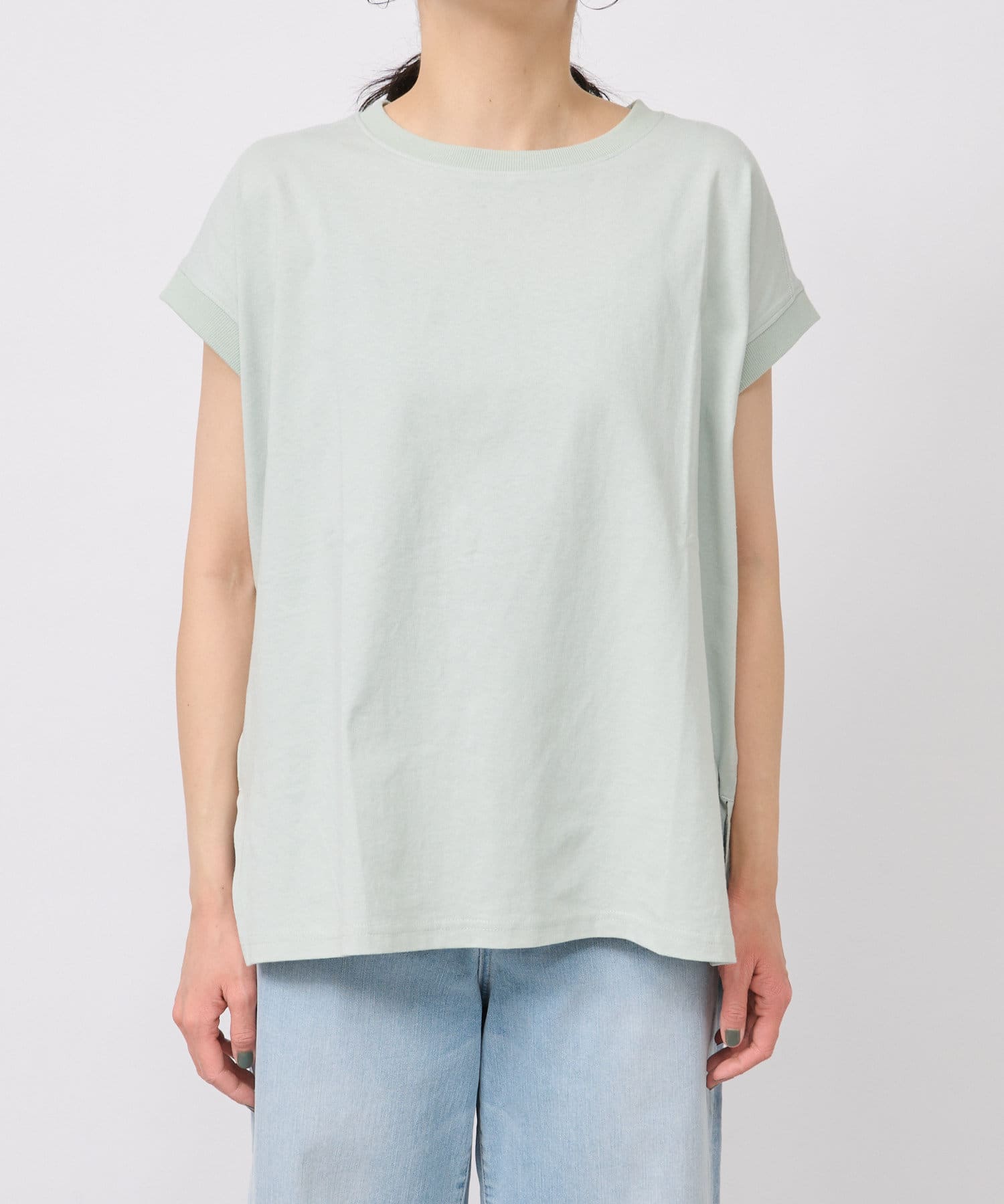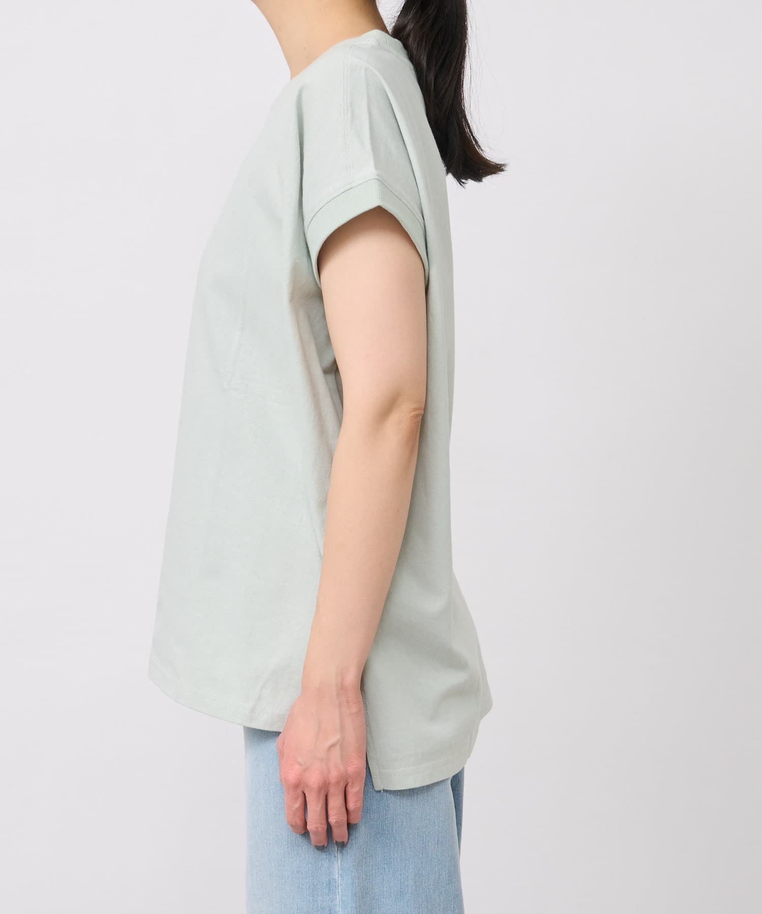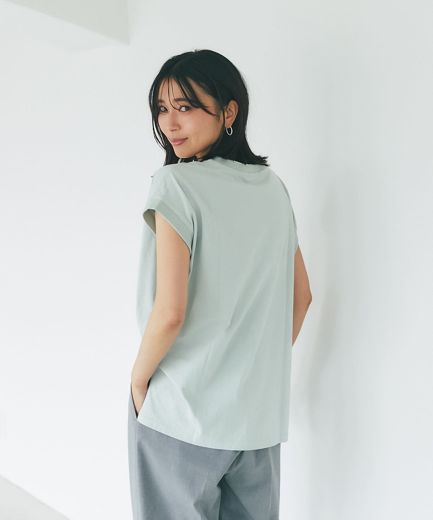フレンチスリーブで腕周りがすっきりとして見えるアイテムのため、コンパクトな印象になるこちらの一枚。