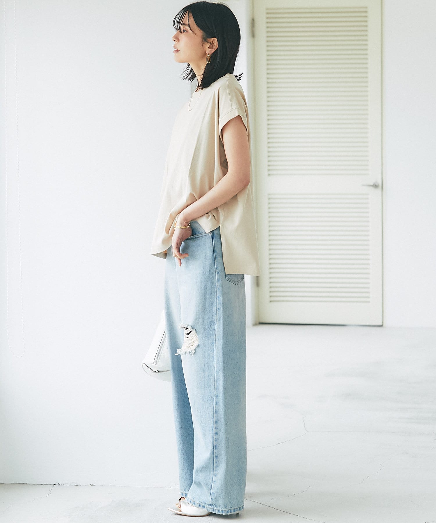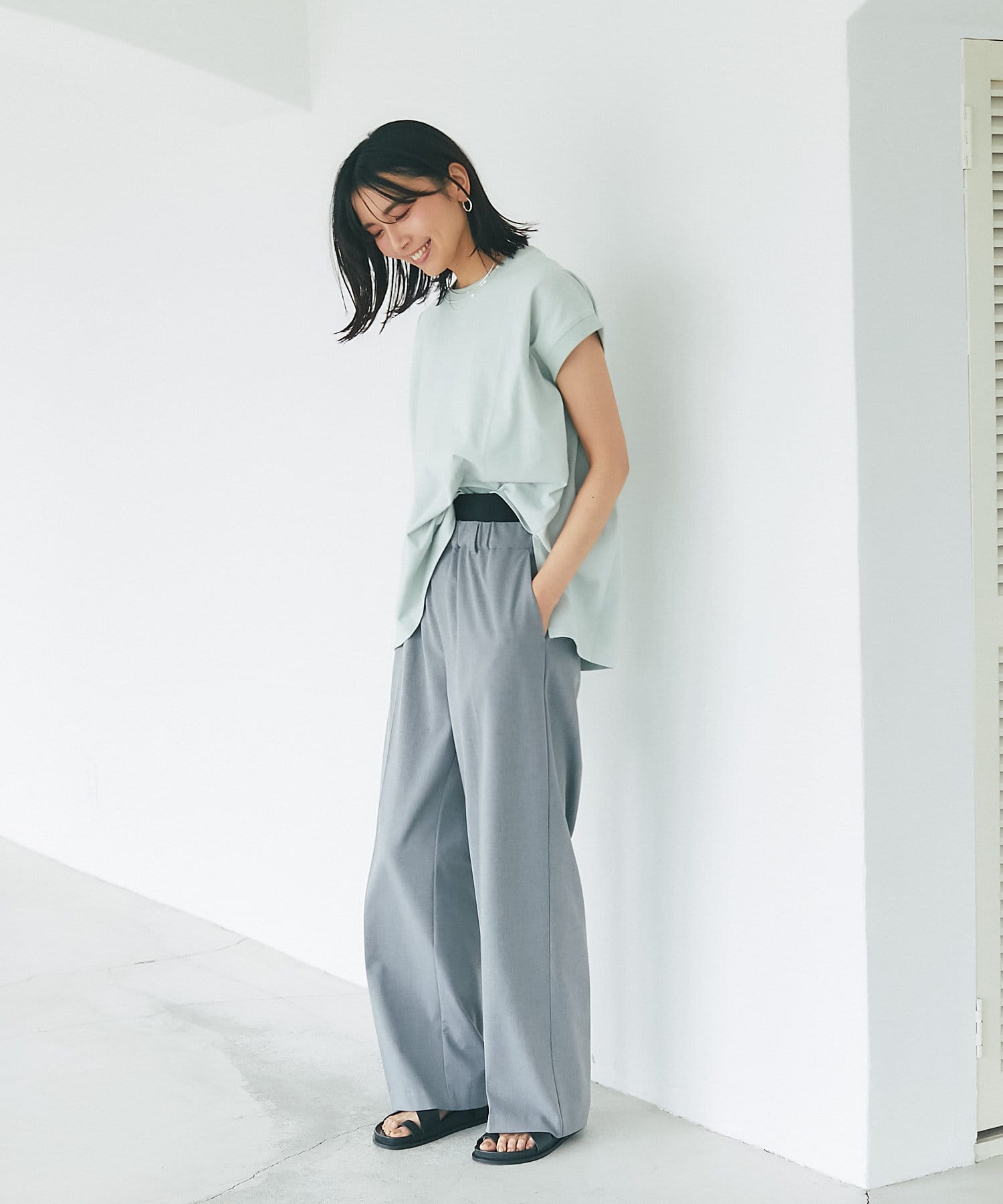さりげなく肩まわりをカバーしてくれるフレンチスリーブは、ノースリーブよりも安心感があり程よい肌見せが◎