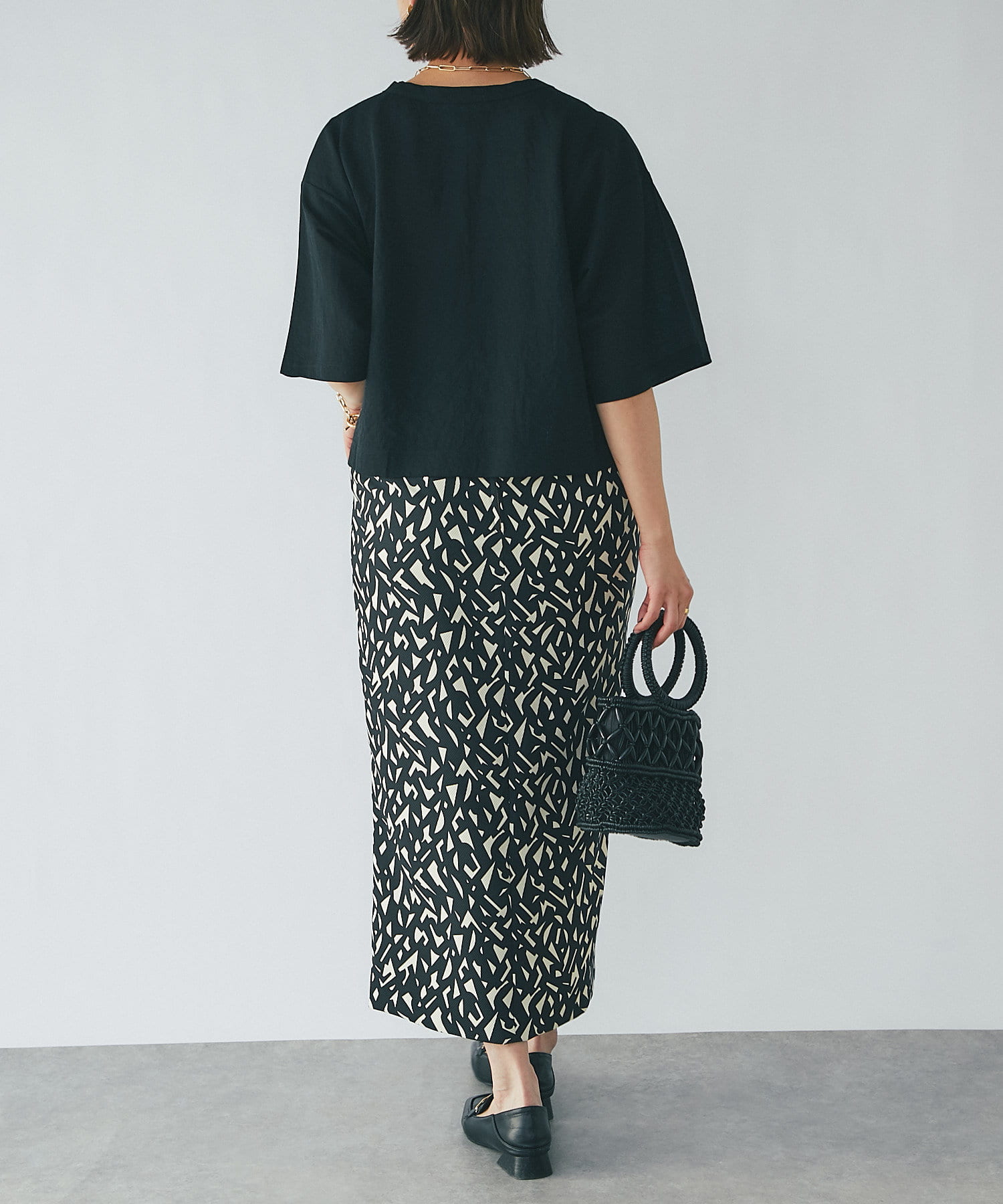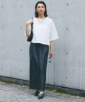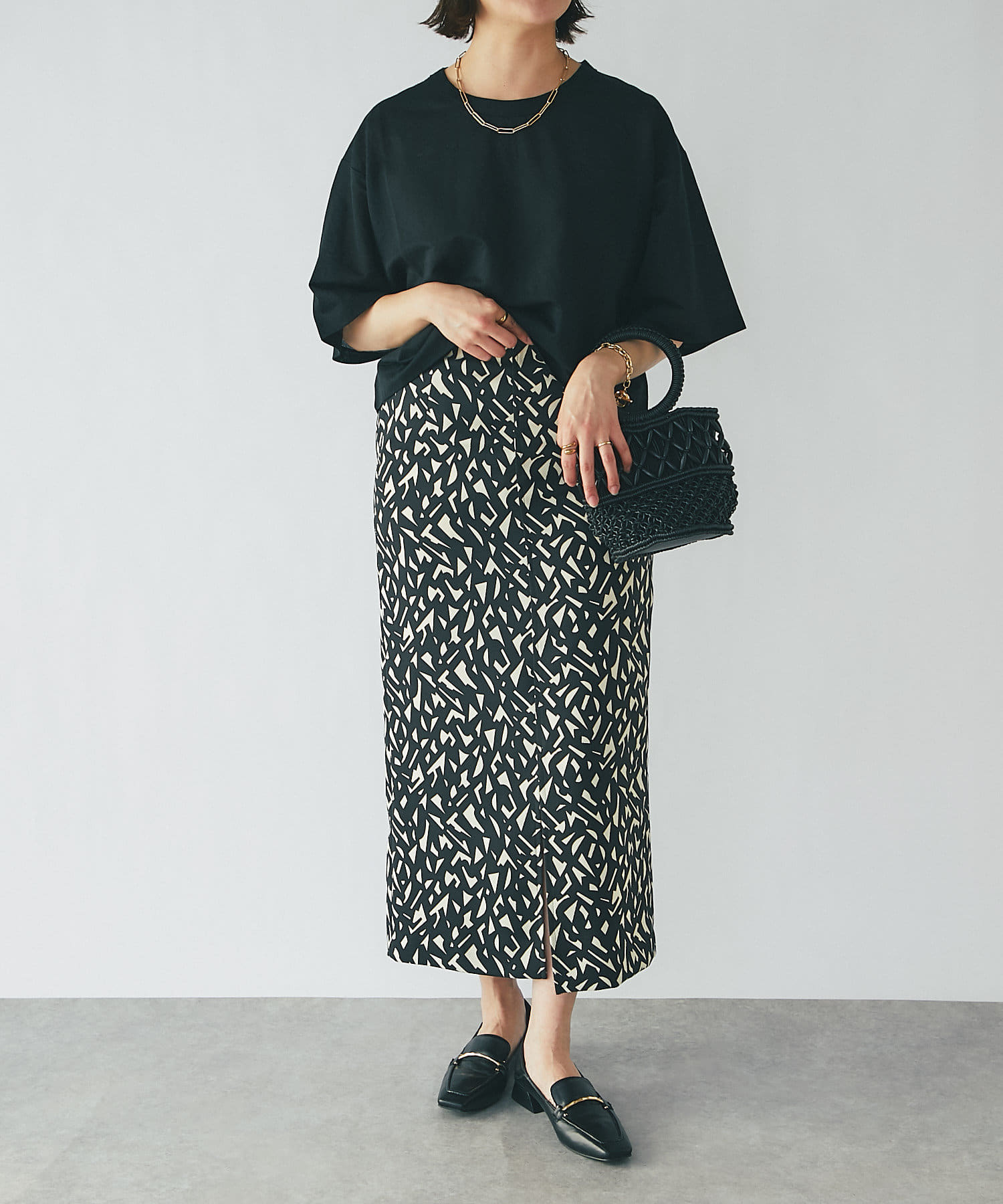ゆったりとしたオーバーシルエットで身体のラインは拾いづらく、丈感は長すぎないのでパンツにもスカートにも合わせやすい一枚。