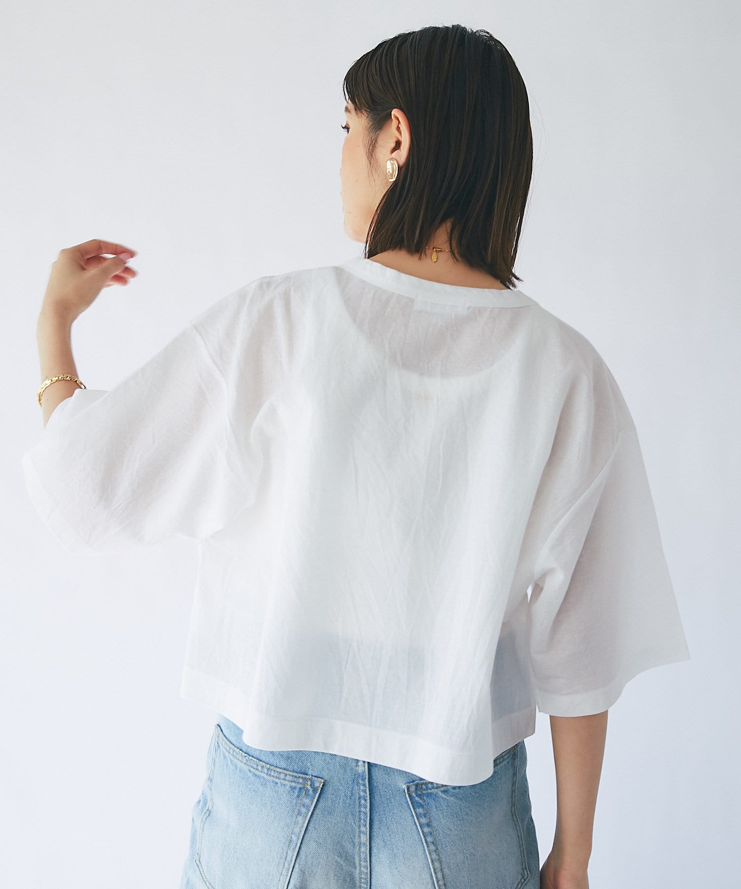 程よいシアー感が今季らしい着こなしを楽しめるTシャツ。