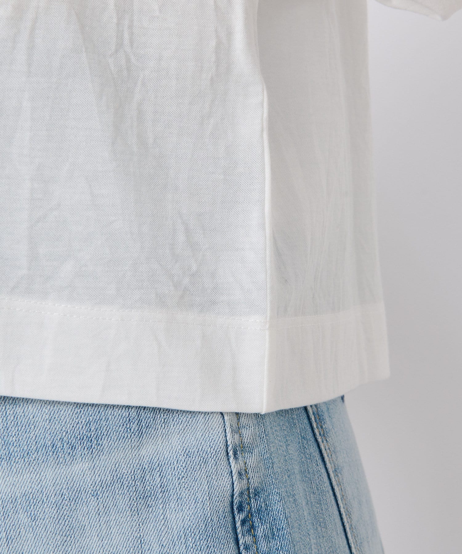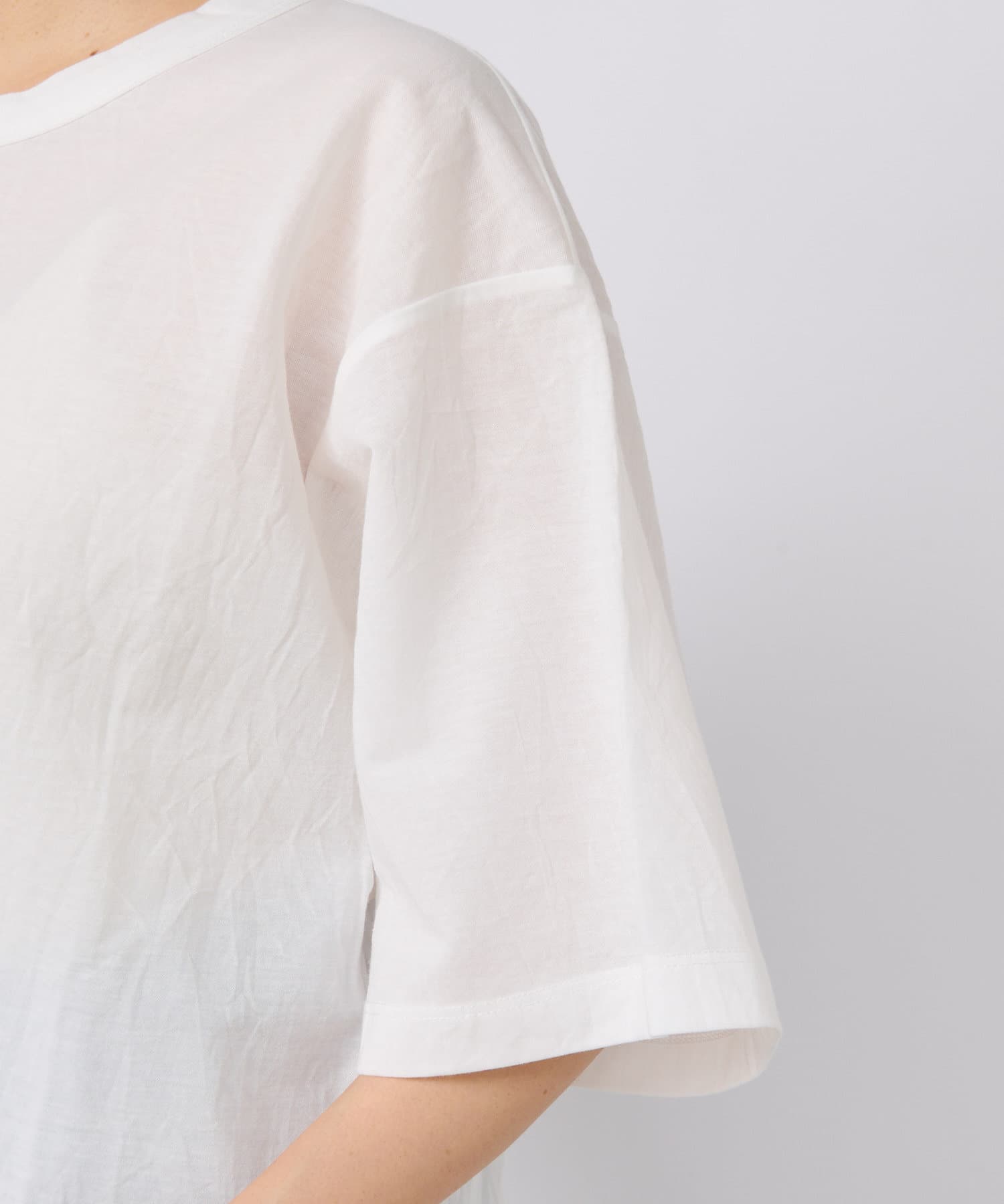 ⇒独特な洗いざらしのようなしわ感が生じるアイテムとなっております。ナチュラルな雰囲気が出て、シアー素材も色っぽくならずラフに着れるのがポイントです。