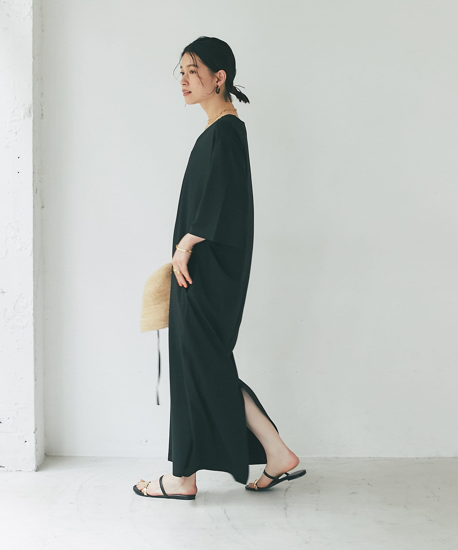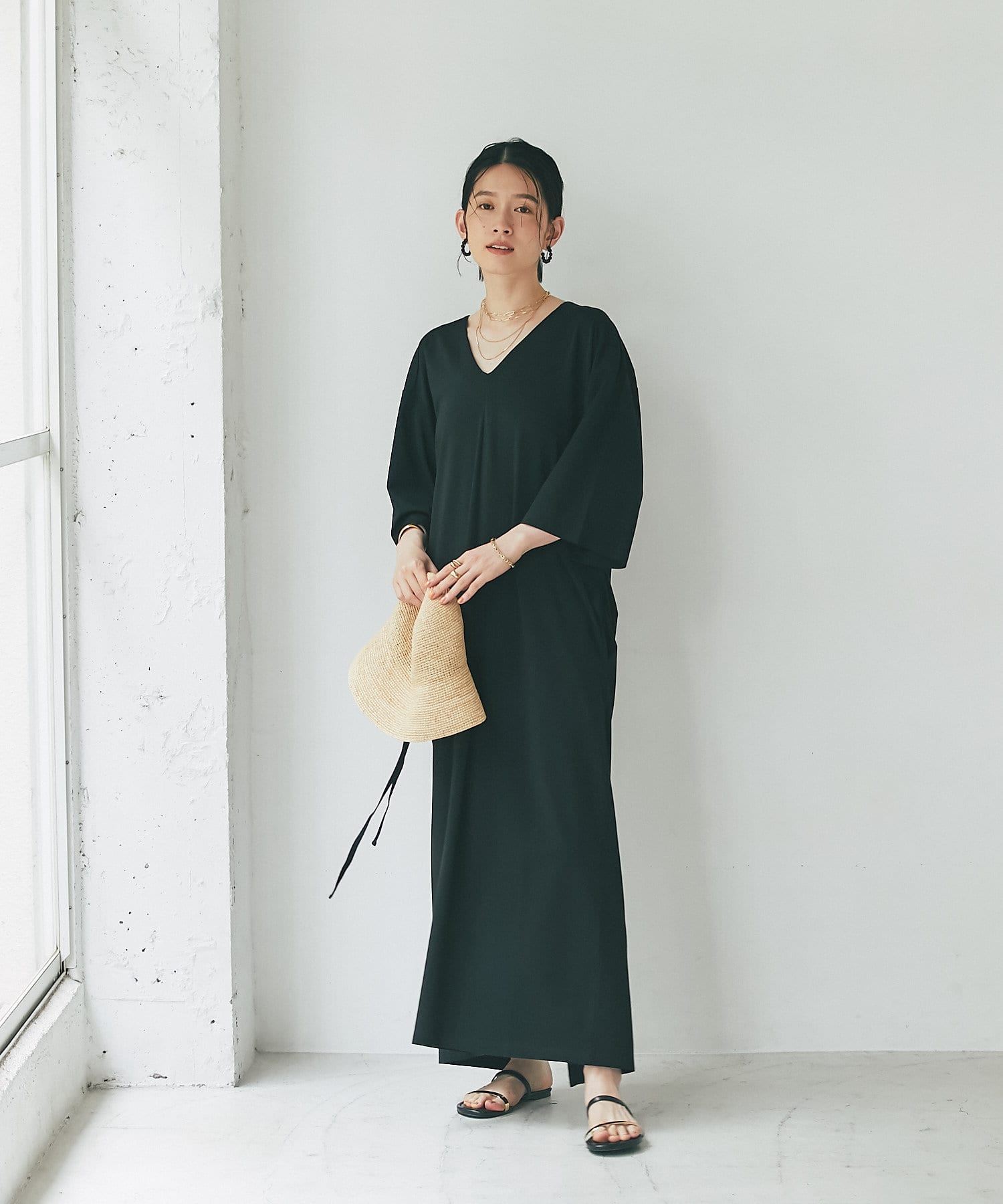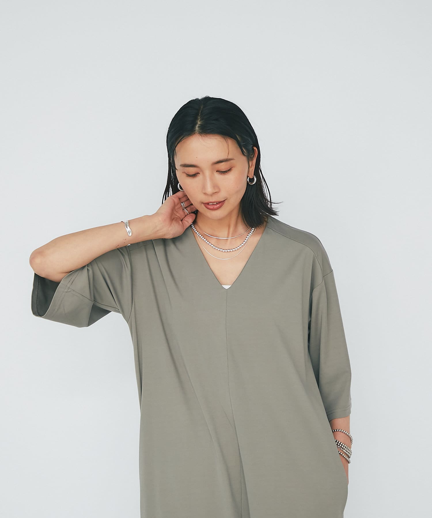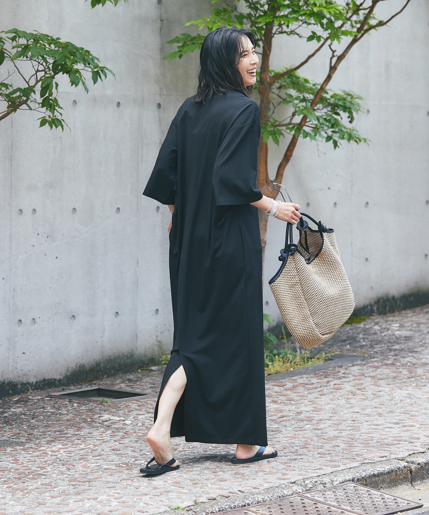 一枚でさらっと着ていただくコーディネートがおすすめ。小物の組み合わせ次第でカジュアルにもキレイめにも雰囲気を変えてお楽しみいただけます。スニーカーやシャツ・キャップと組み合わせてカジュアルにしてみたり、サンダルやかごバック・シルバーアクセサリーを合わせてみたり…。落ち感のあるカットソー素材のためラフになりすぎない、大人のためのシンプルワンピースです。