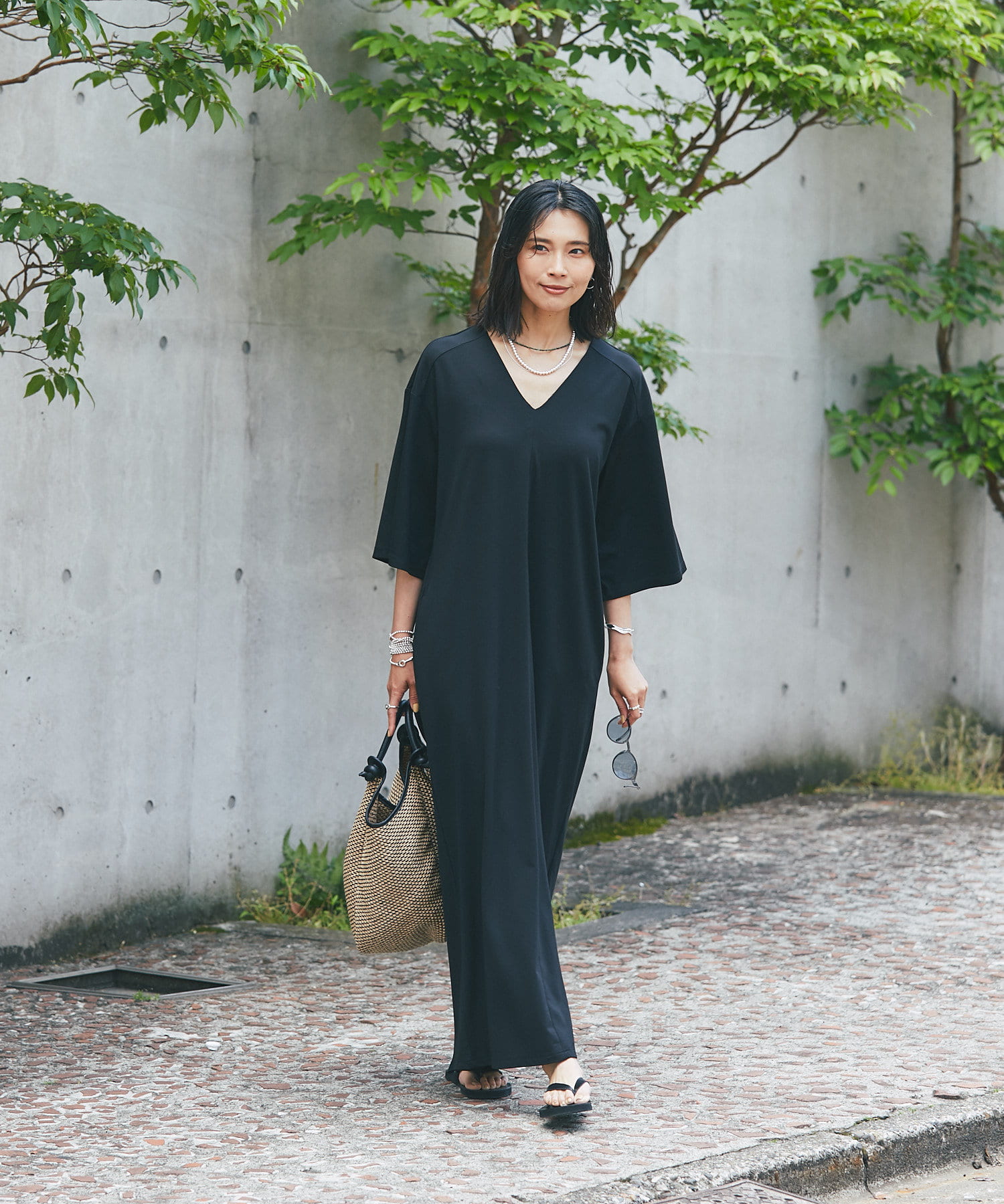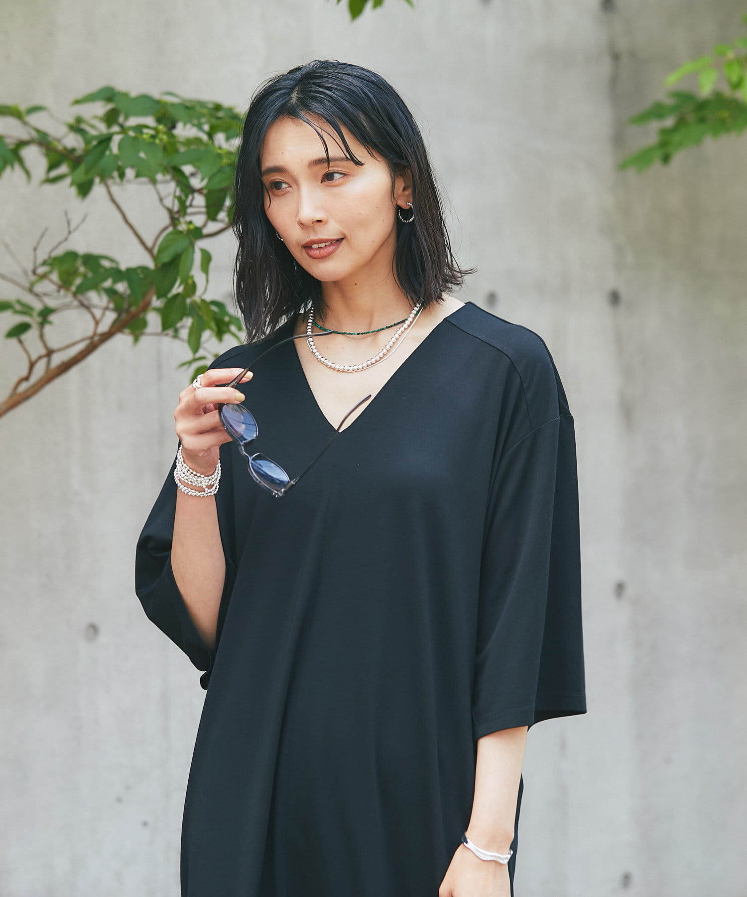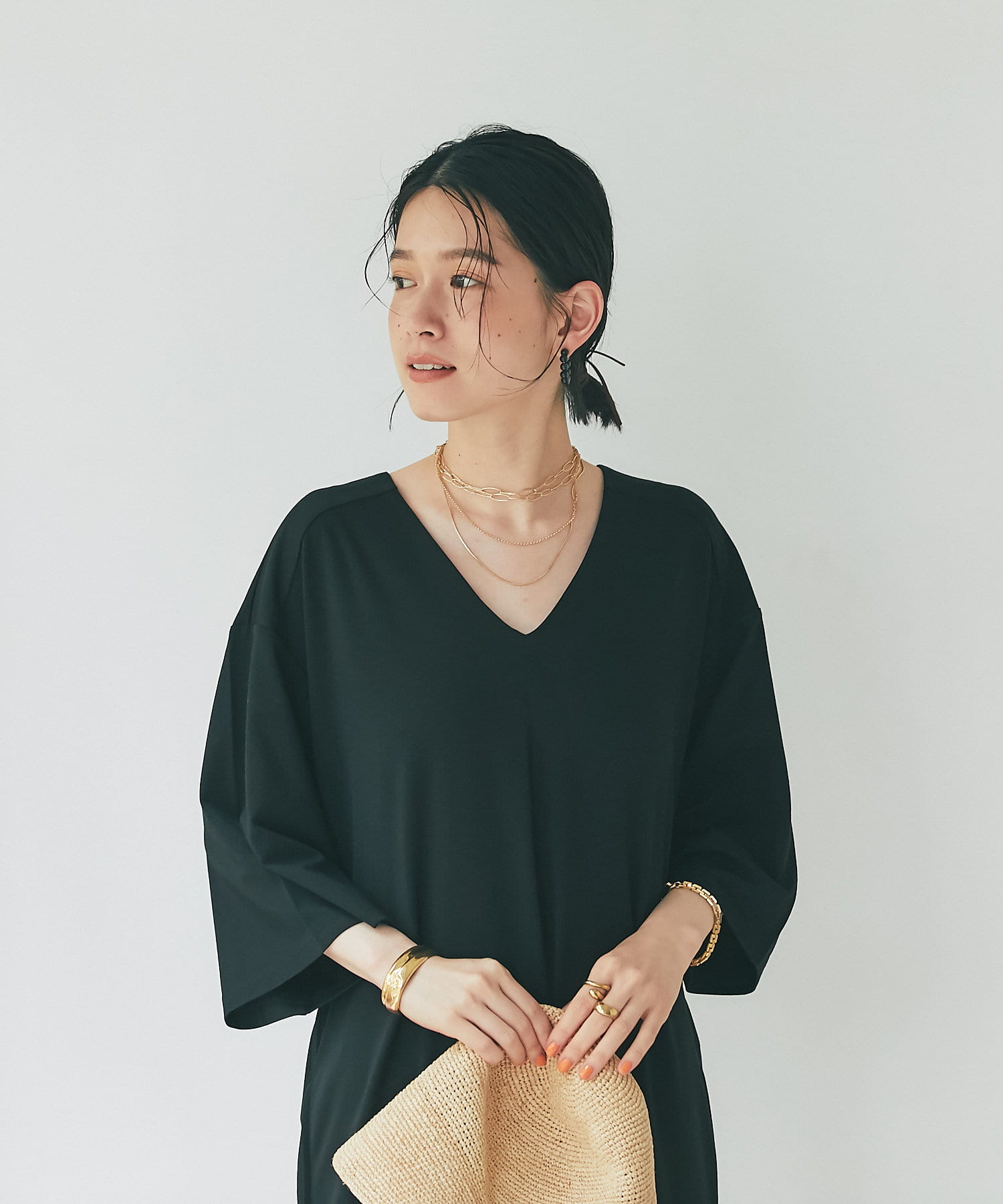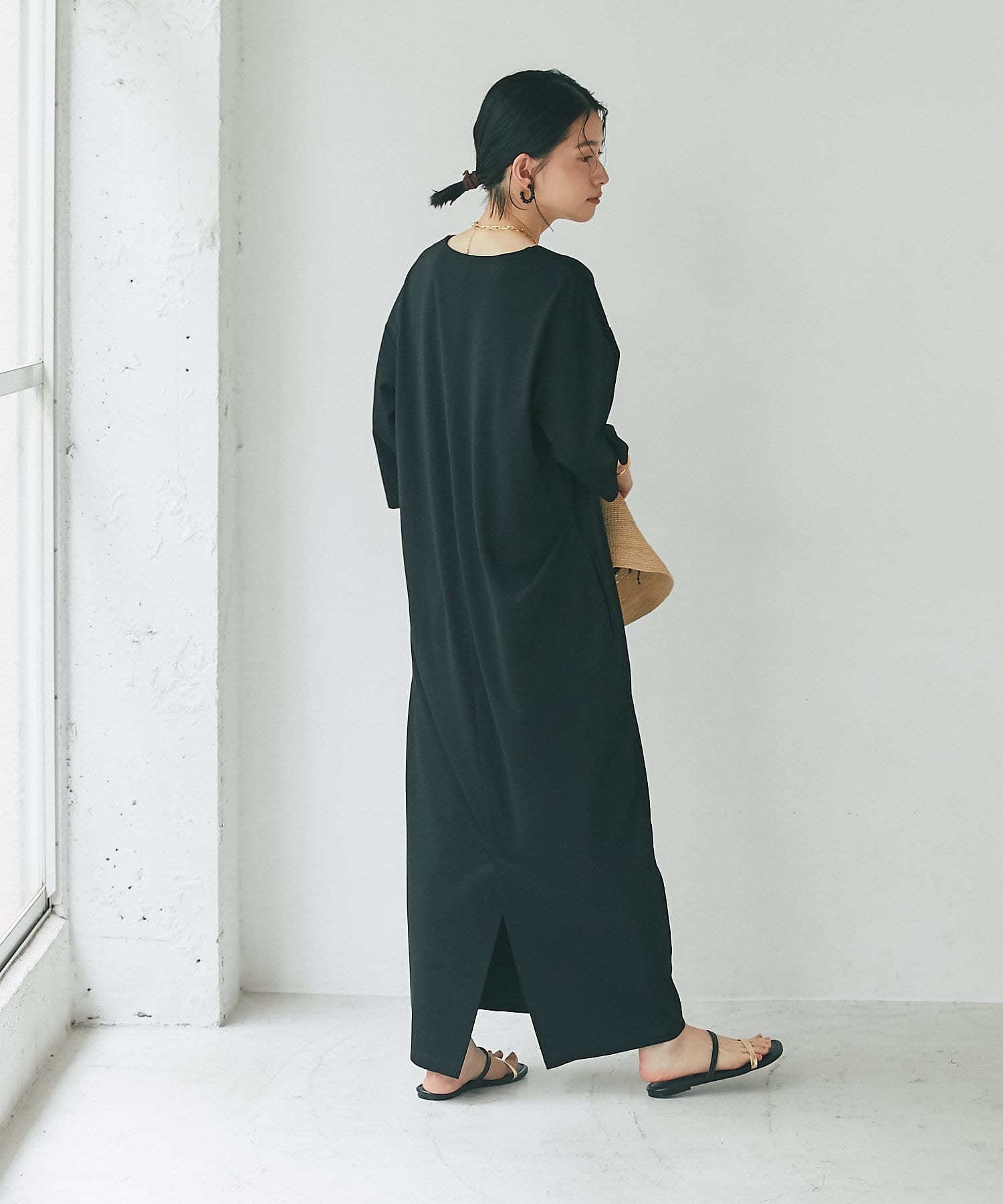 一枚でさらっと着ていただくコーディネートがおすすめ。小物の組み合わせ次第でカジュアルにもキレイめにも雰囲気を変えてお楽しみいただけます。スニーカーやシャツ・キャップと組み合わせてカジュアルにしてみたり、サンダルやかごバック・シルバーアクセサリーを合わせてみたり…。落ち感のあるカットソー素材のためラフになりすぎない、大人のためのシンプルワンピースです。