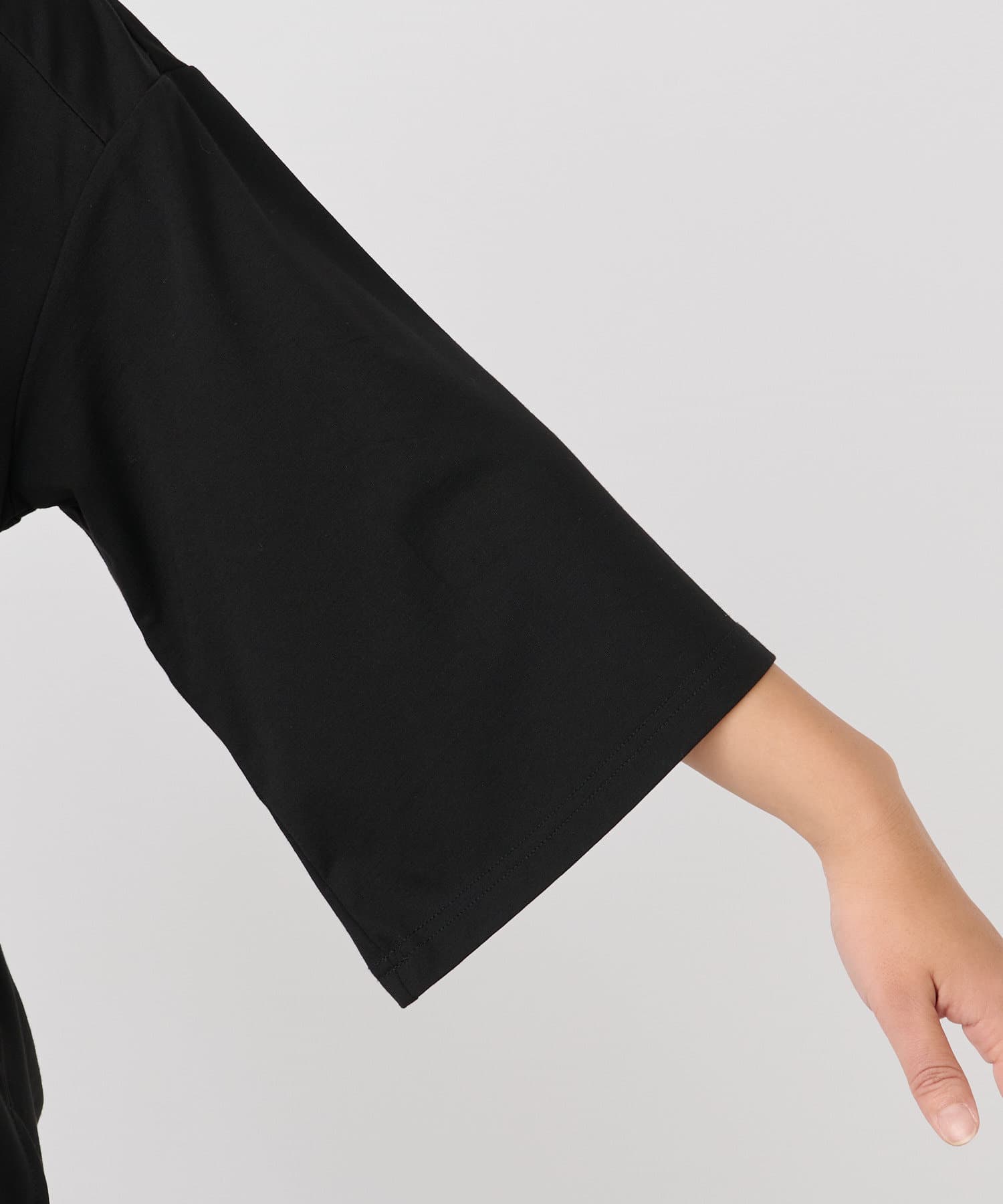 カットソー素材で気兼ねなく着れるので、普段使いもしやすいアイテムです。