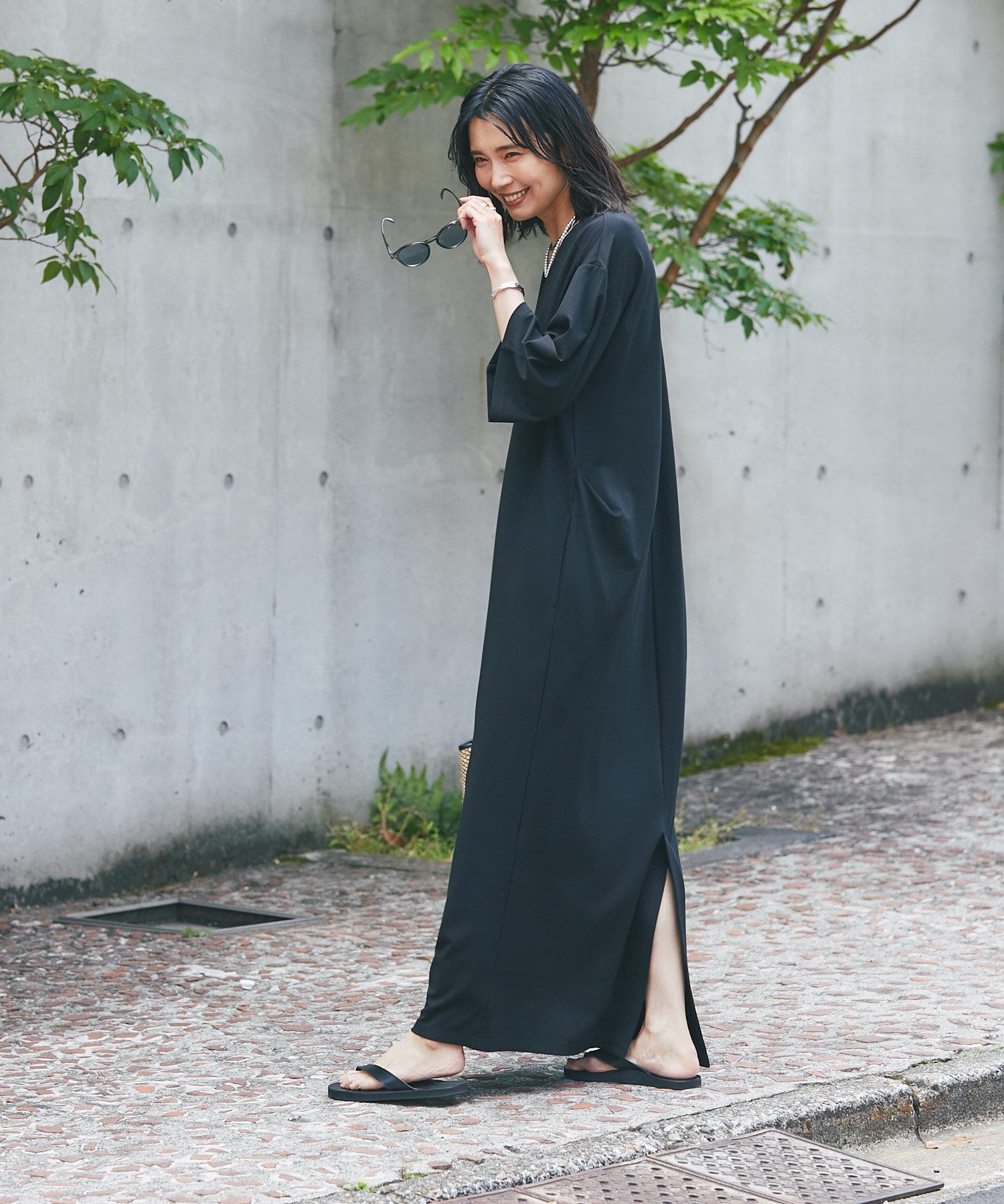 シンプルなデザインながらもやわらかな落ち感が女性らしさを演出するワンピース。