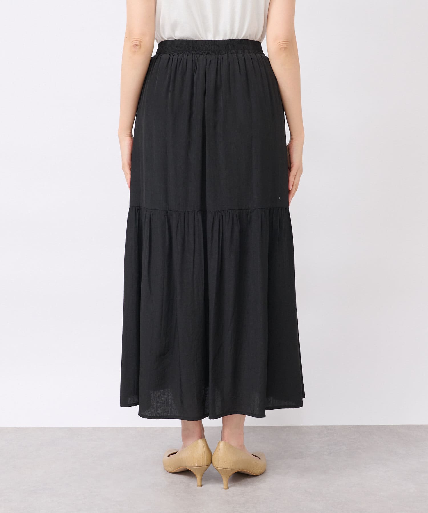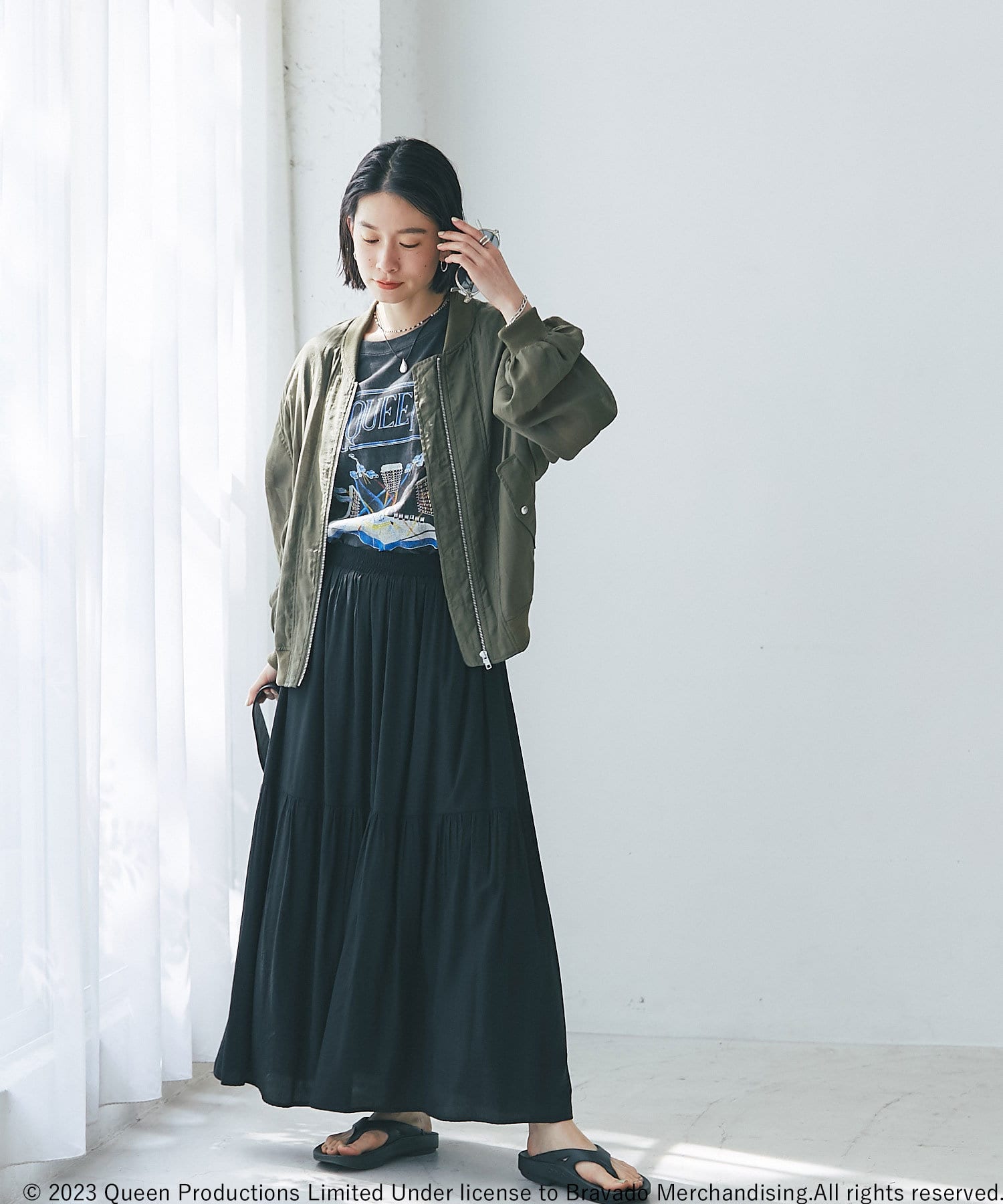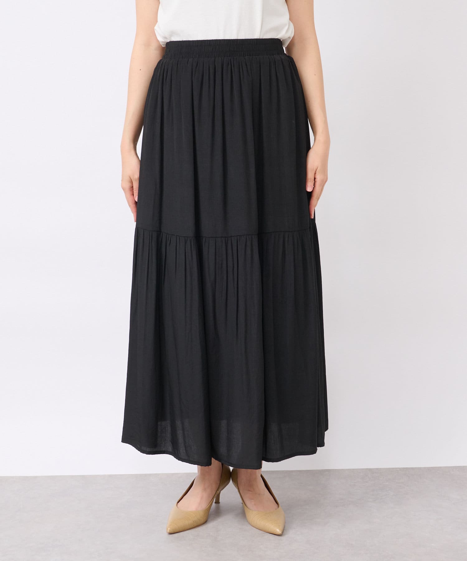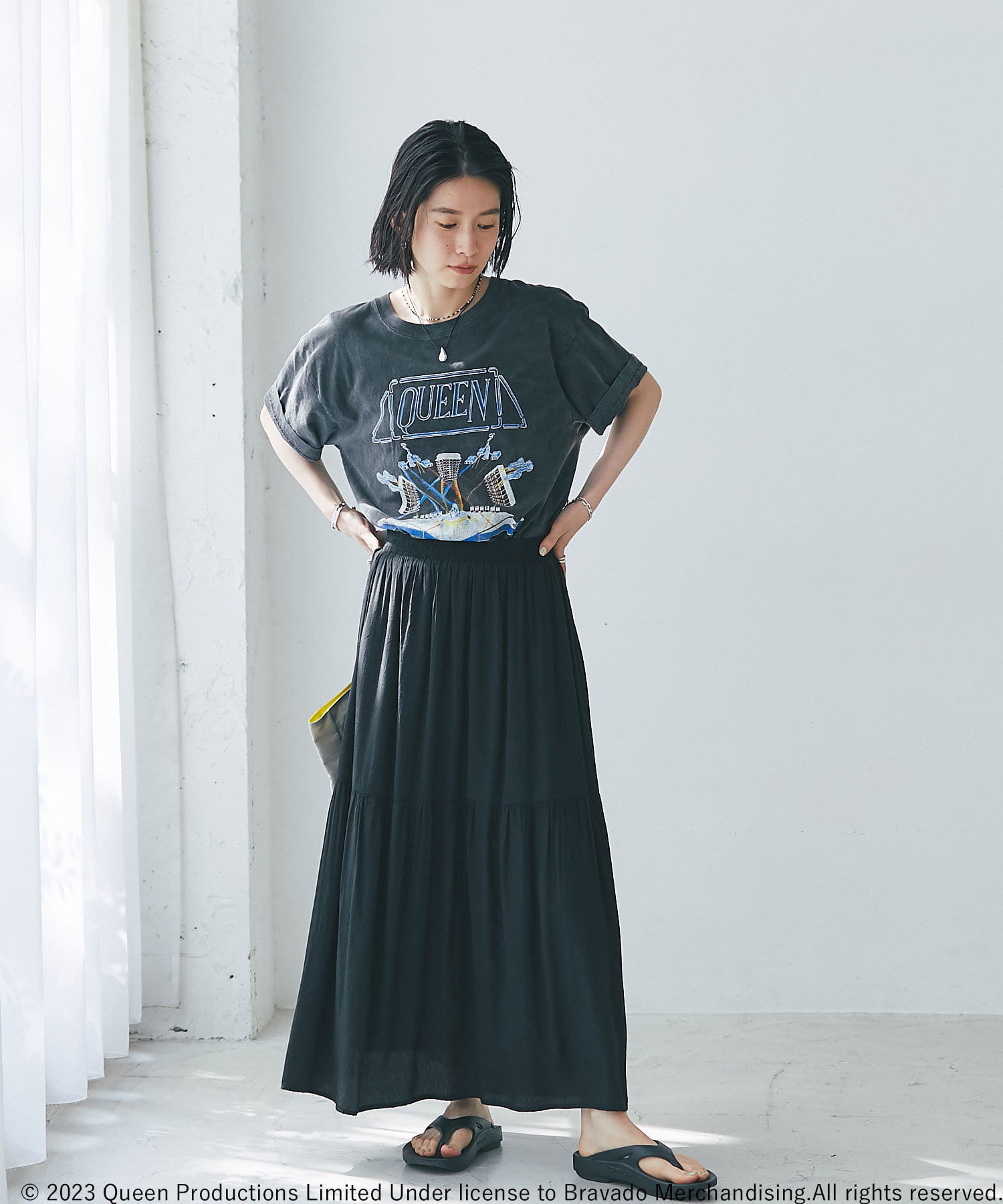 柔らかい肌当たりの素材感、ウエストゴム、身体のラインを拾いづらいシルエットと、嬉しいポイント満載のロングスカートが登場。