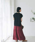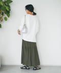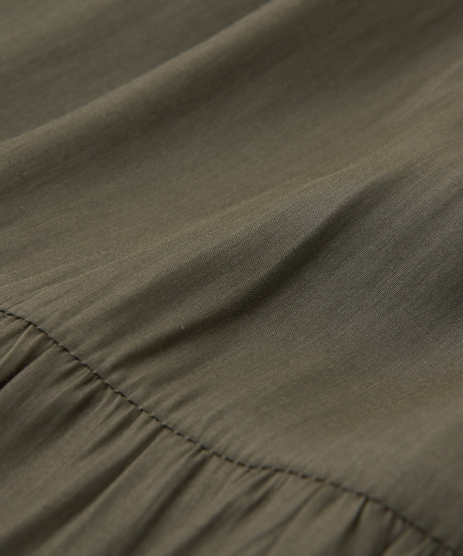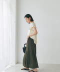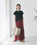 しっかりとギャザーの入ったデザインで気になる腰回りをカバーしつつも、広がりすぎないシルエットのためバランスが取りやすく、大人の方もさらっと着こなしていただけるアイテムです。