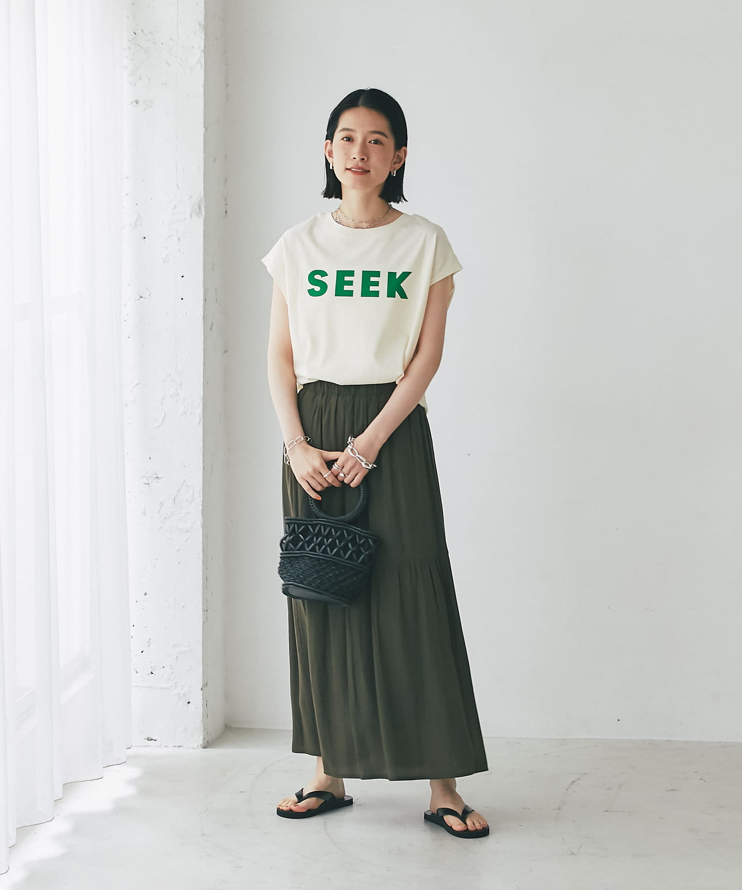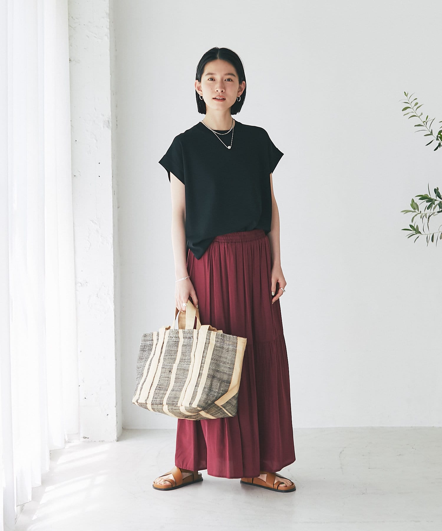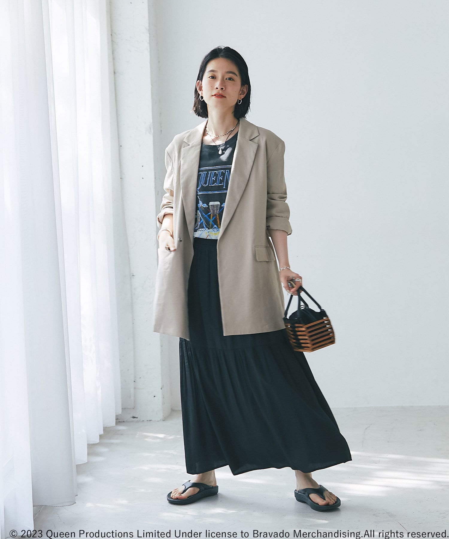 Tシャツと合わせたシンプルなスタイルでリラクシーなコーディネートにしていただくのはもちろん、トレンドのシアーアイテムを合わせて程よく肌見せし、大人の抜け感をプラスしていただくのもオススメです。