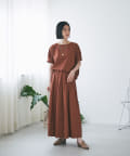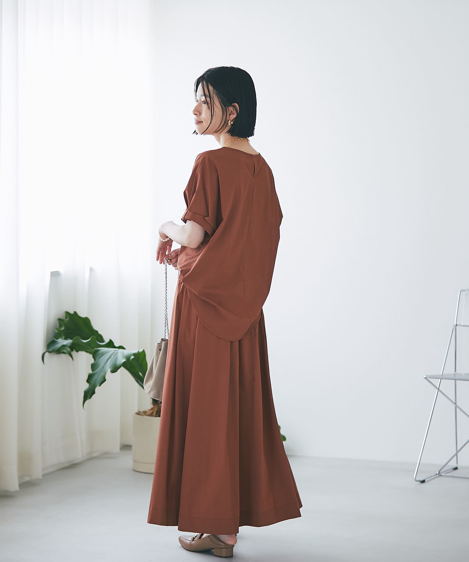 ベルトレスのウエストデザインは、気になるおなか周りも優しくカバー。